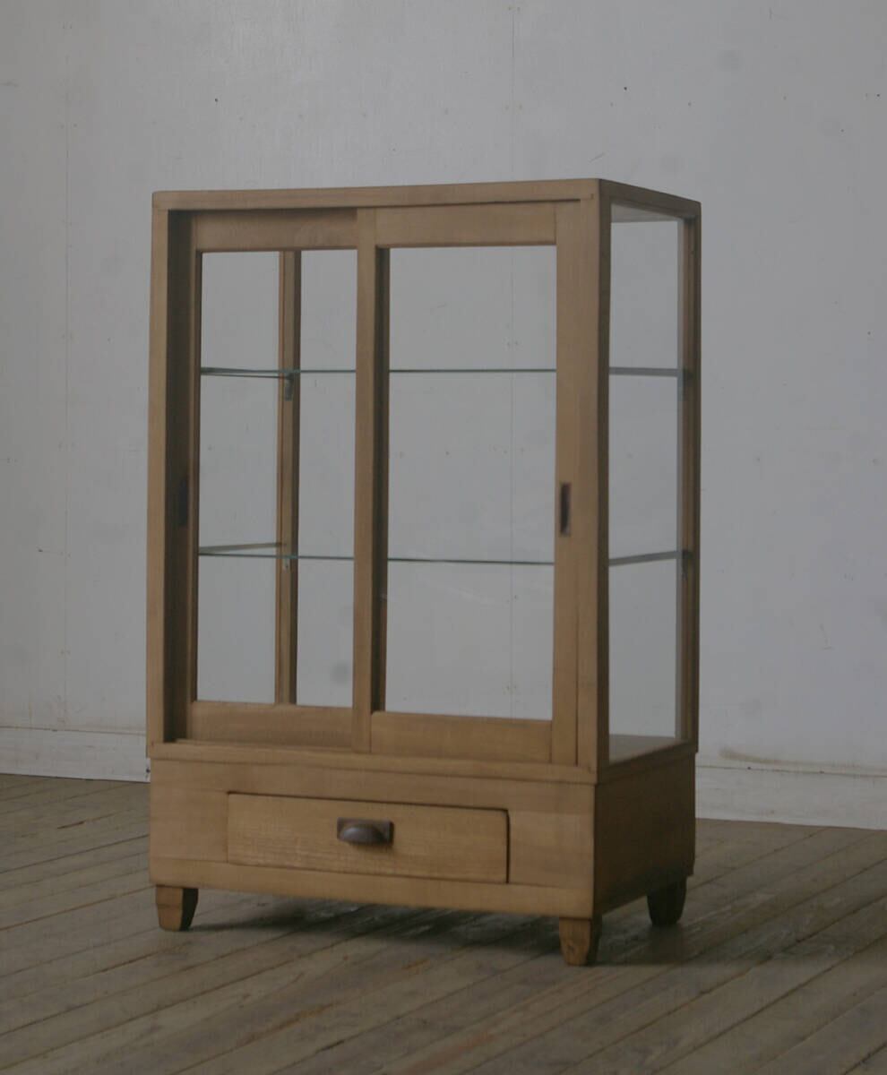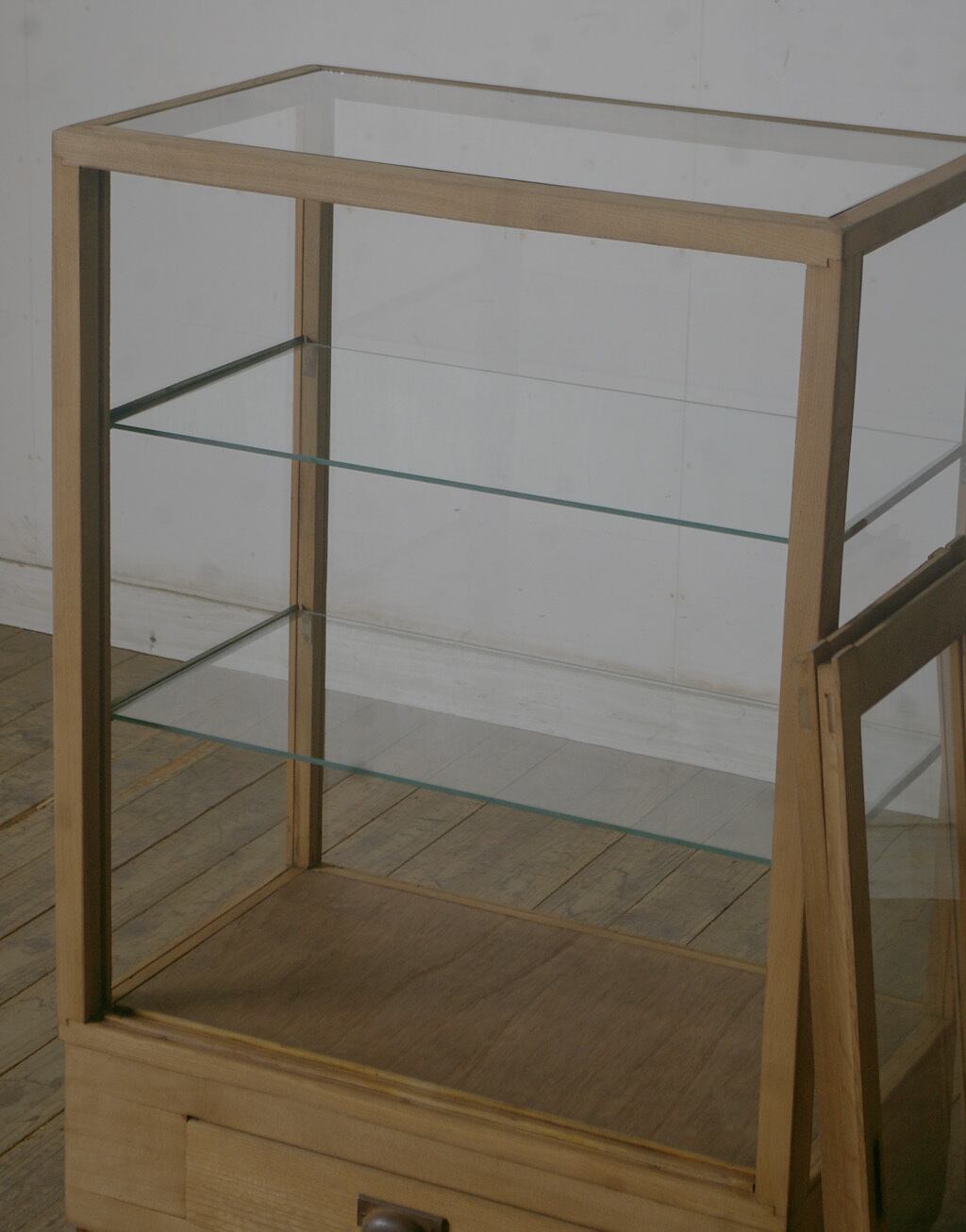 引き出し付き古い木枠5面ガラスショーケース YZ2626