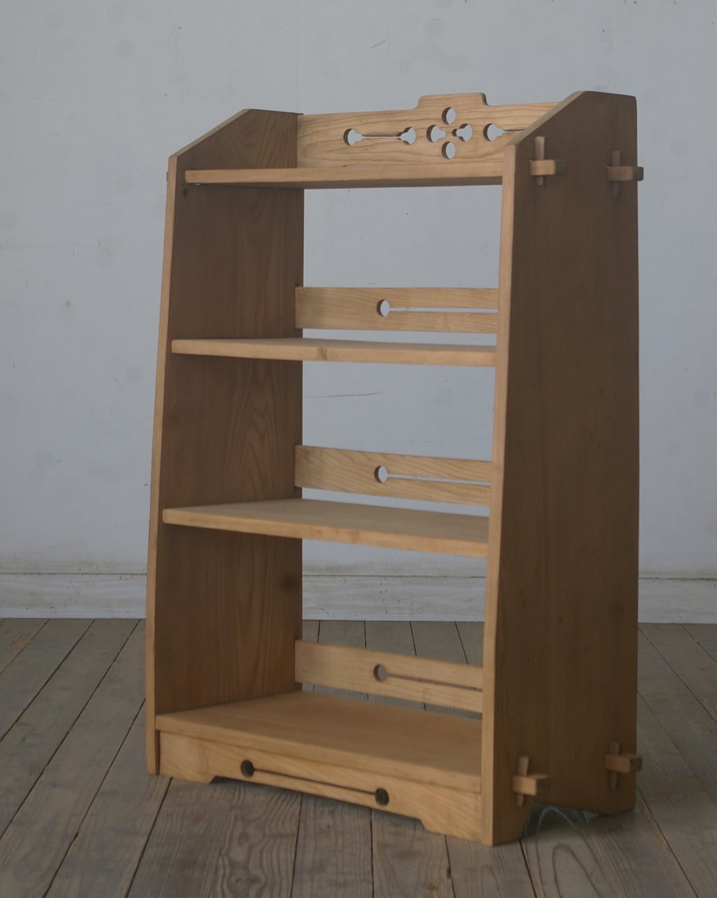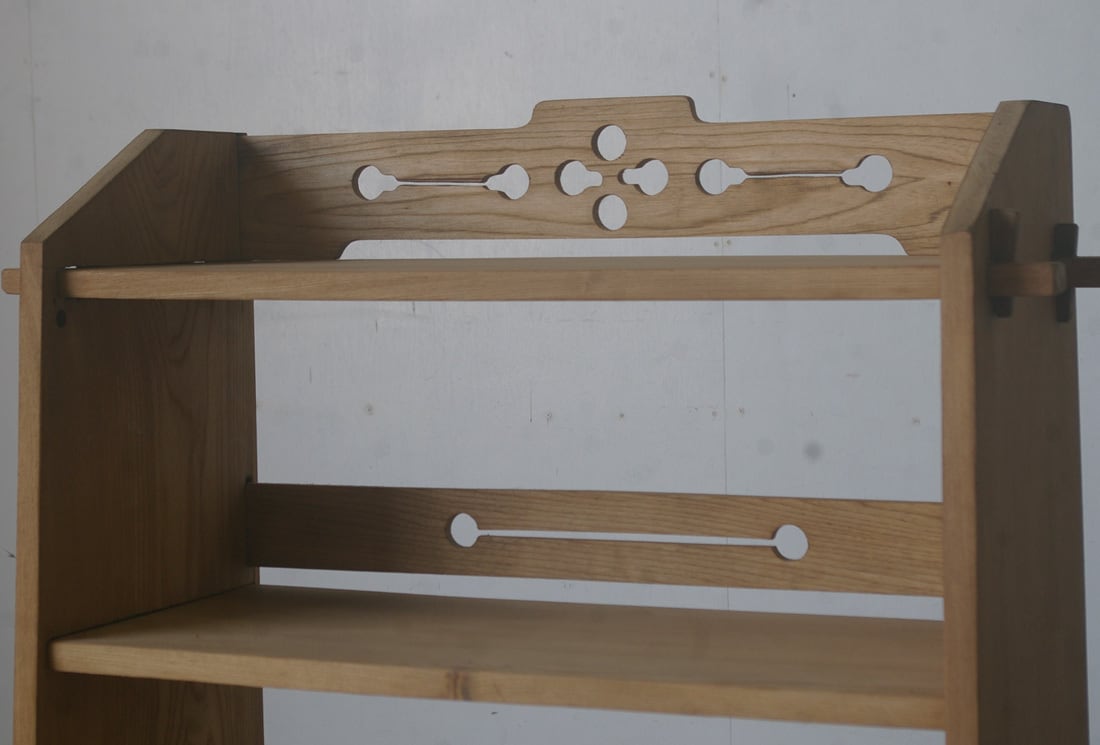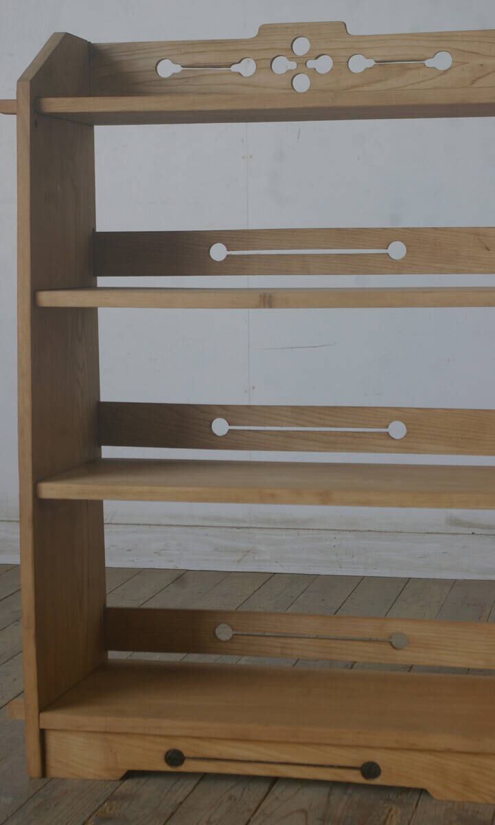 古い無垢材の綺麗な木目がとても雰囲気の良いアンティーク本棚です。