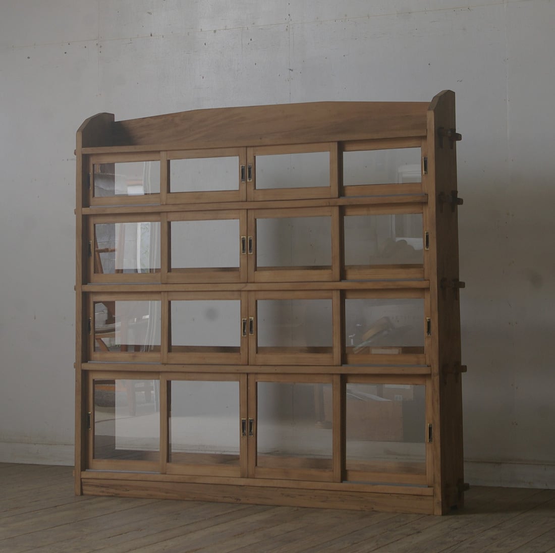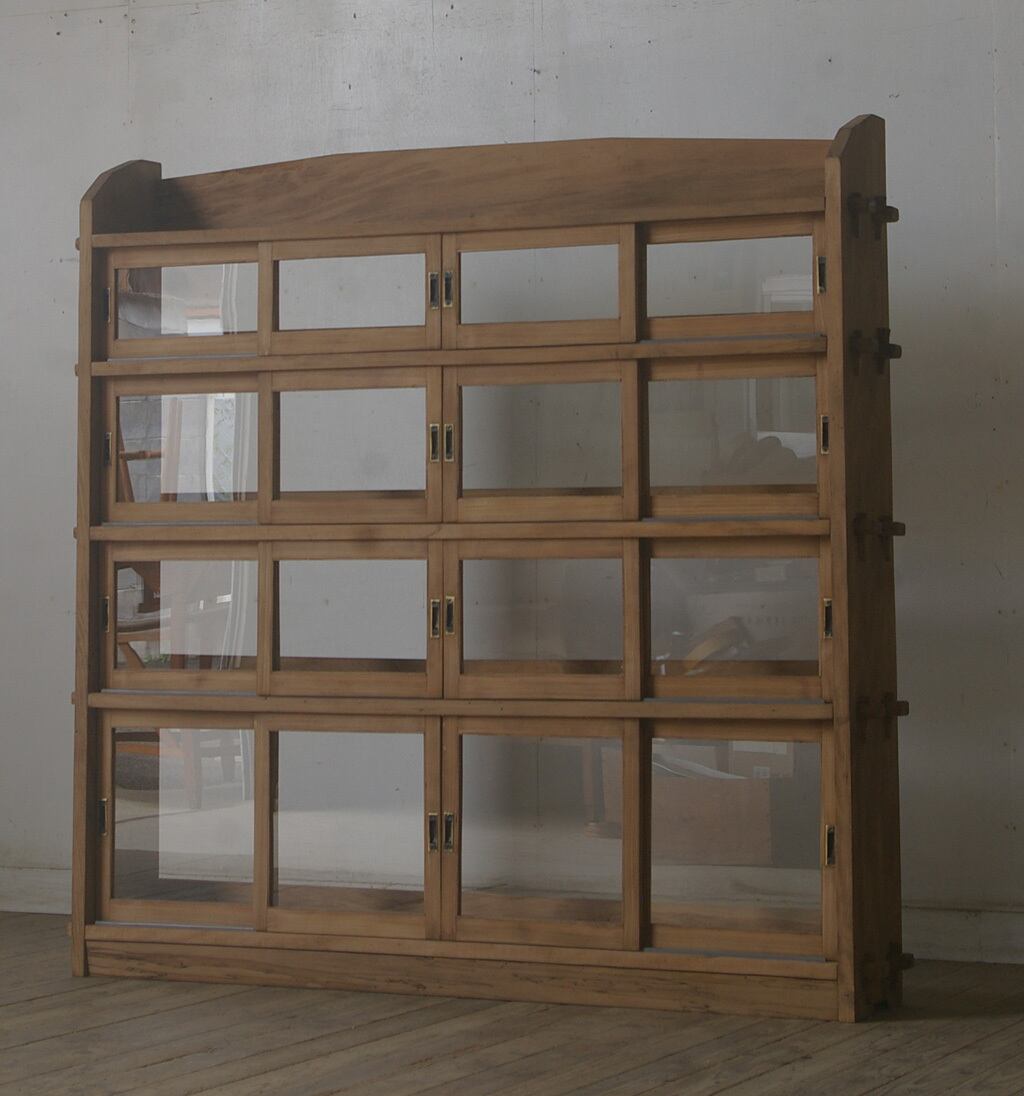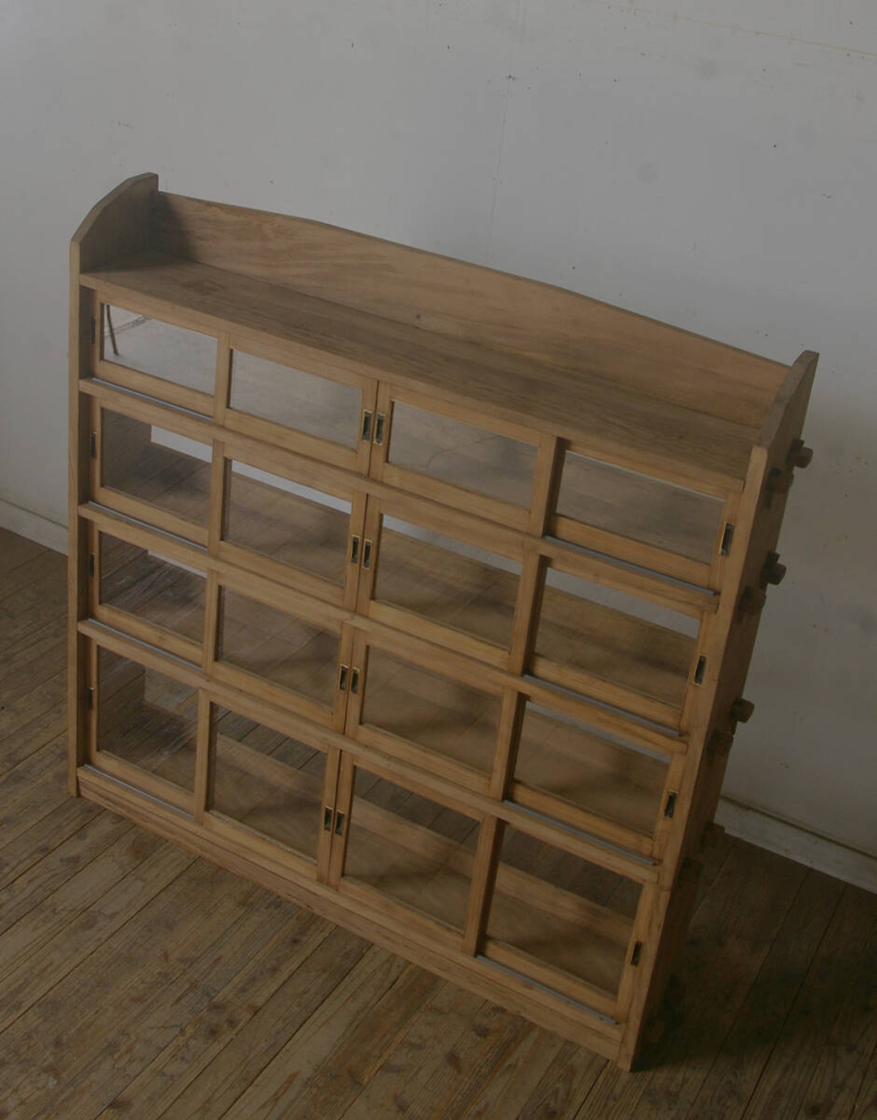 薄型ガラス戸16枚古い楔の飾り棚 YZ2660