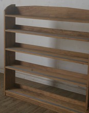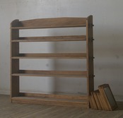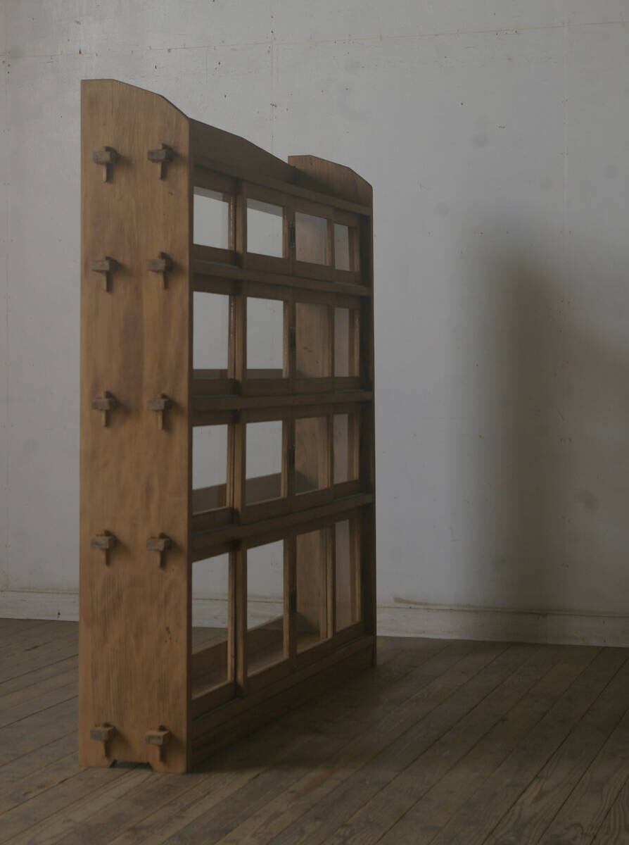 大きな楔の本棚にガラス戸がつけられた造りになります。