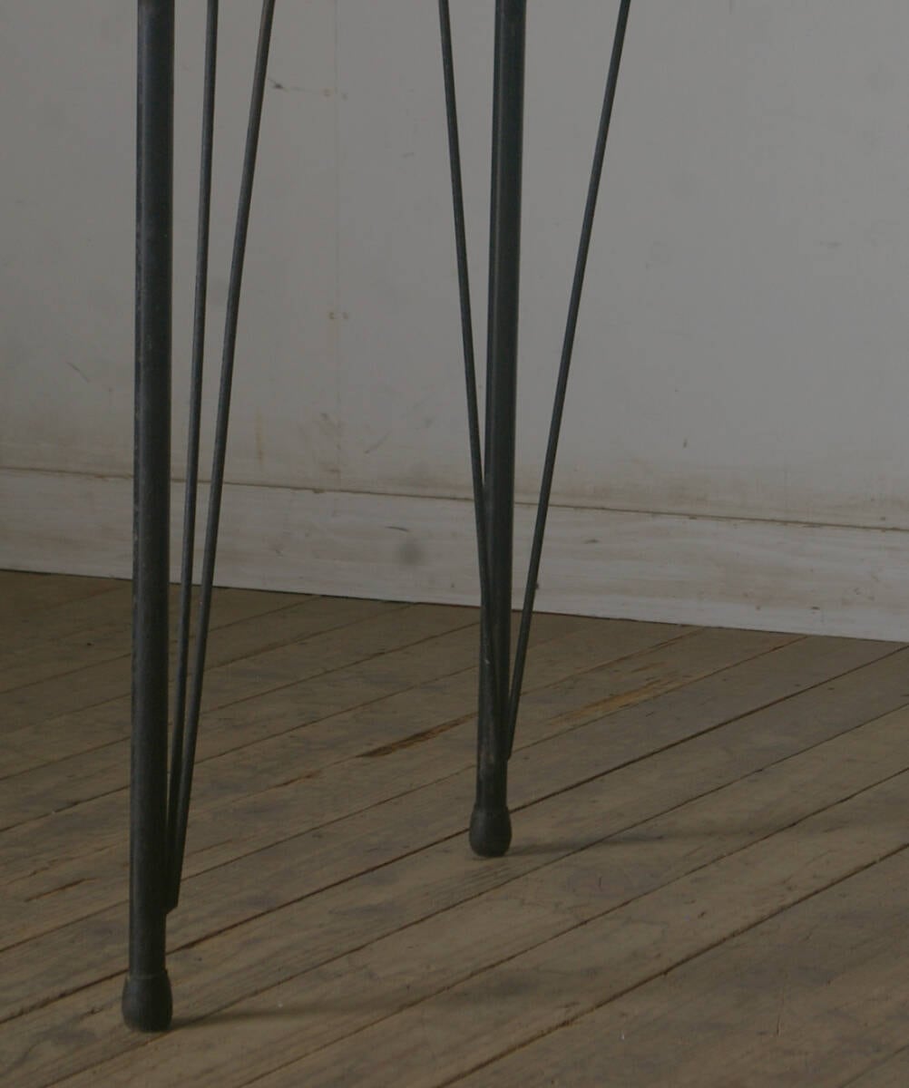 とても存在感のあるアンティーク長い鉄脚5面ガラスショーケースです。