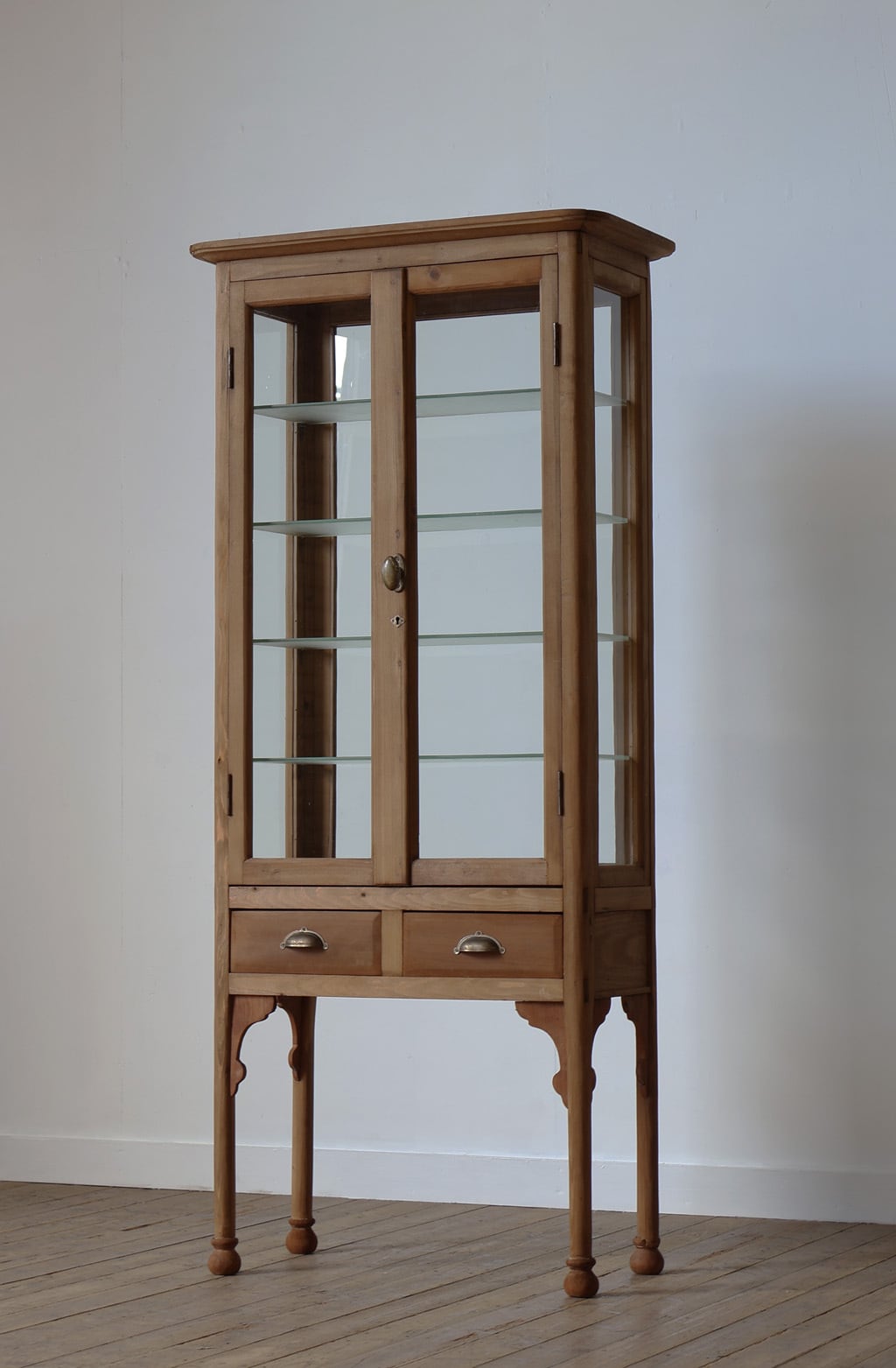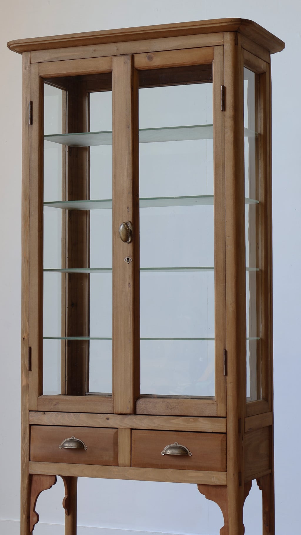 造りも良くとても存在感のあるアンティーク4面ガラスケビントです。