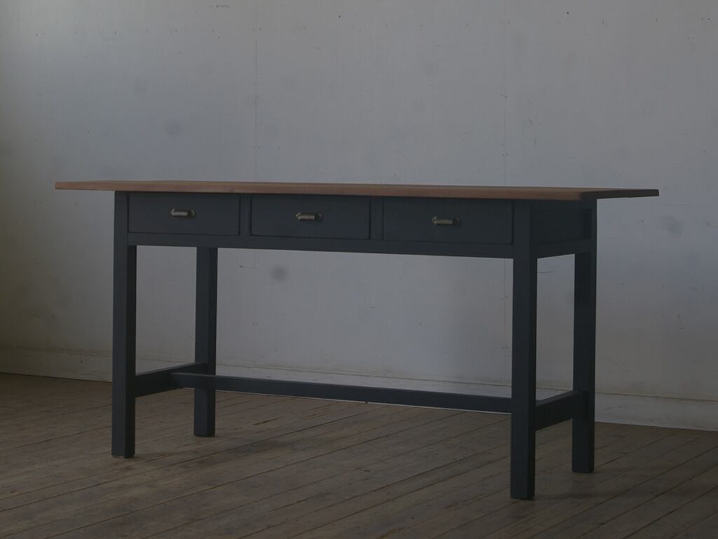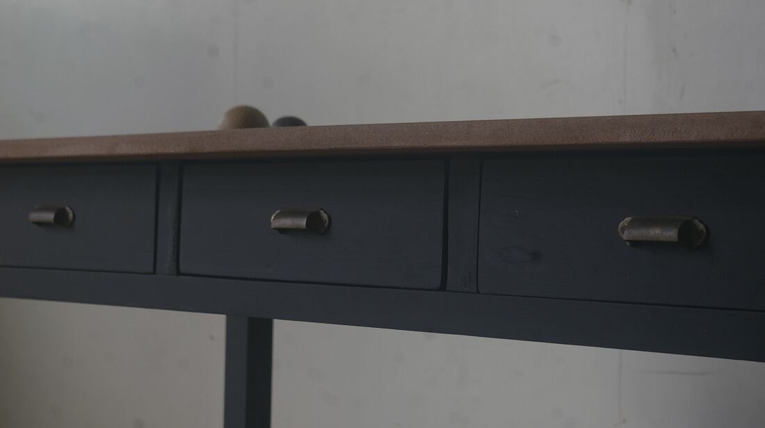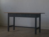とても存在感のあるアンティーク引き出し3杯横長テーブルです。