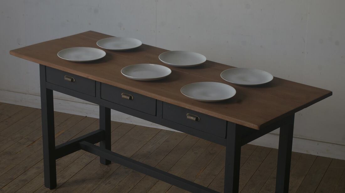 収納があるので機能的で店舗でのカウンターや什器、ご自宅やアトリエでのダイニングテーブルや作業台テーブル、展示台テーブルなどに大変お勧めです。