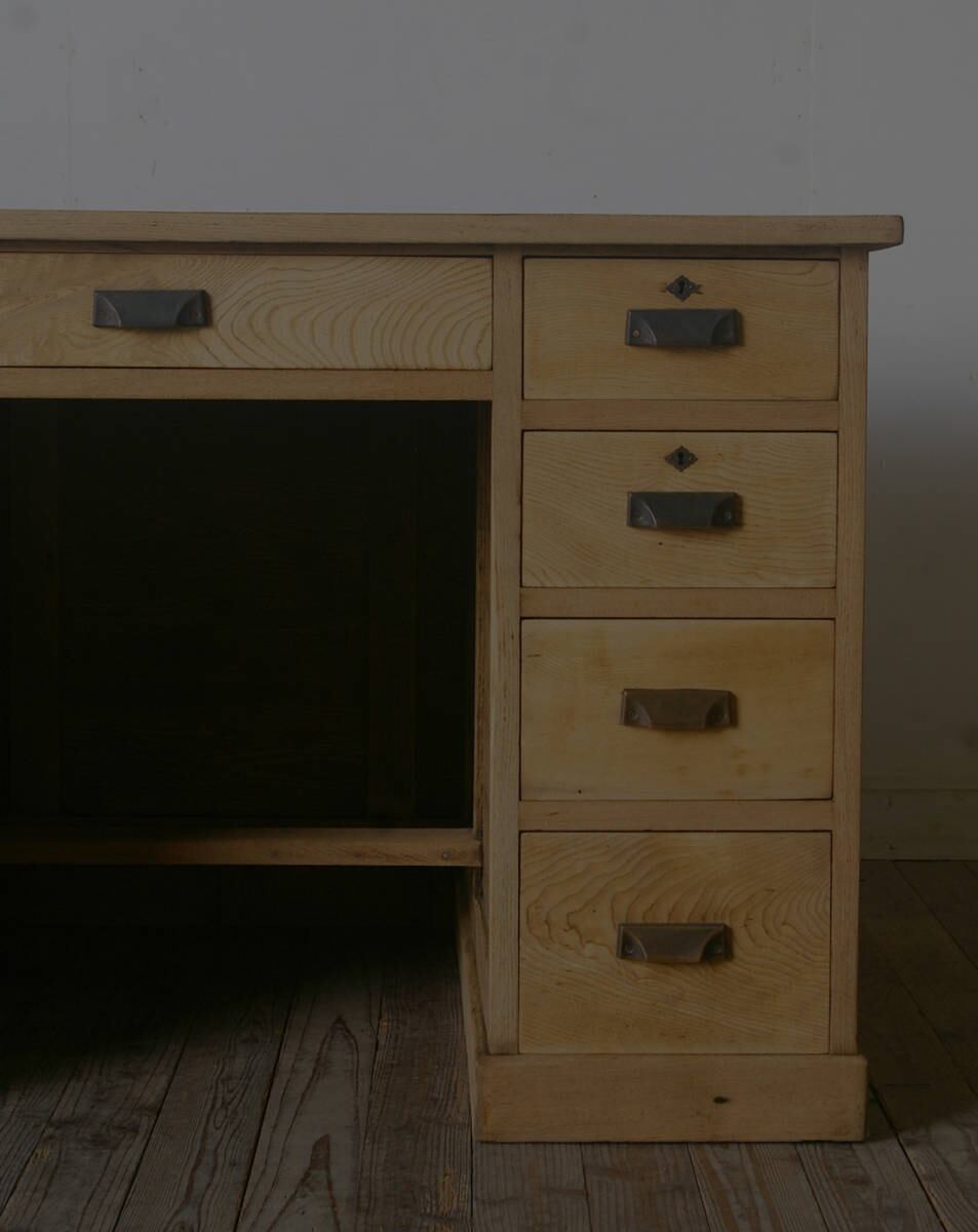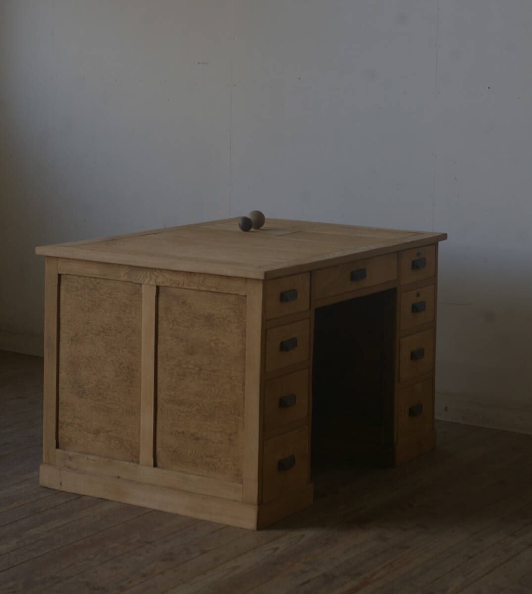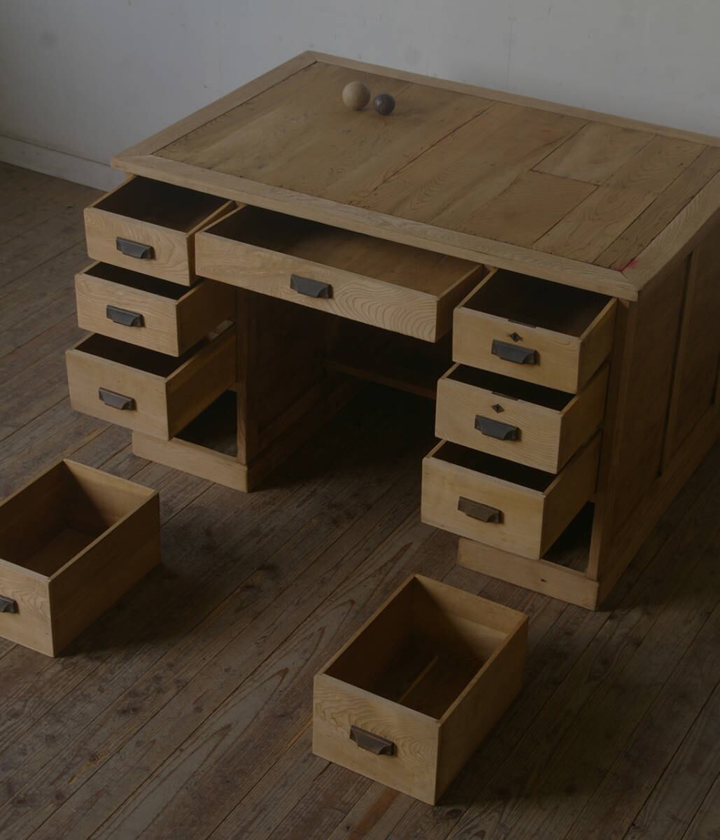 引き出し9杯古い楢材カウンターテーブル YZ1940