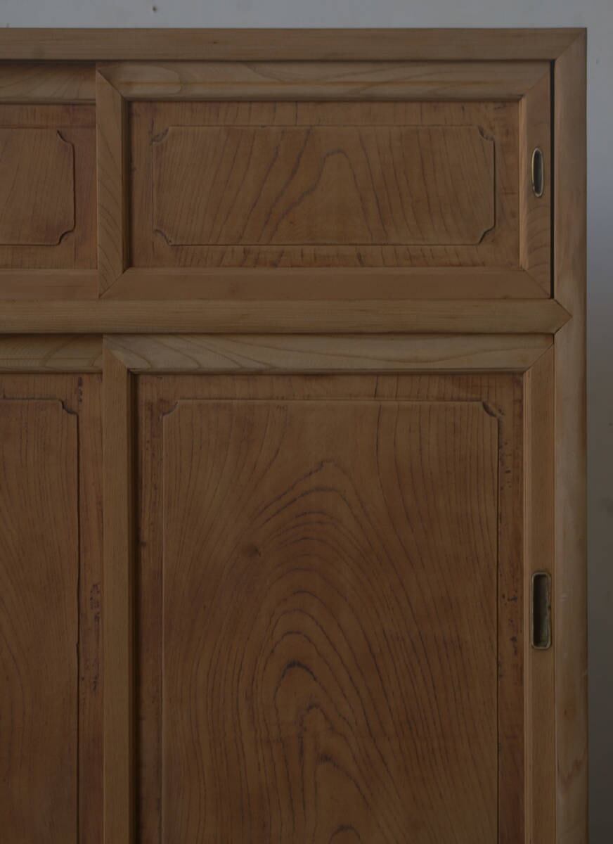 立派な造りで状態も良く存在感があり、味のある古い無垢材の綺麗な木目がとても雰囲気の良いアンティーク戸棚です。