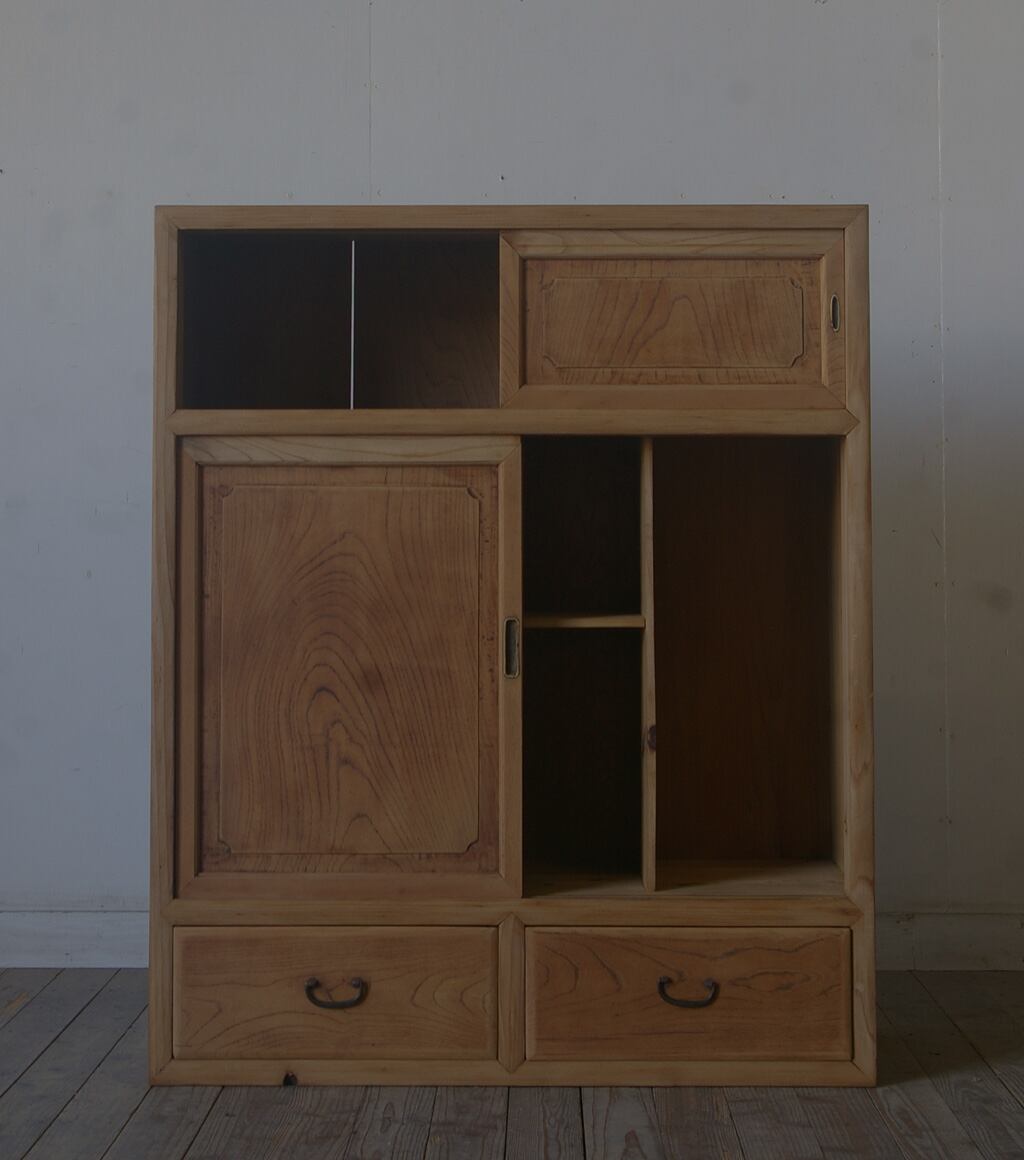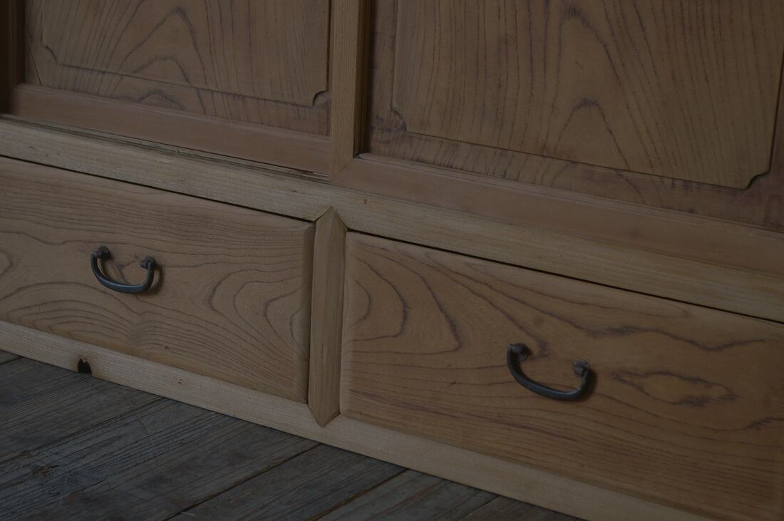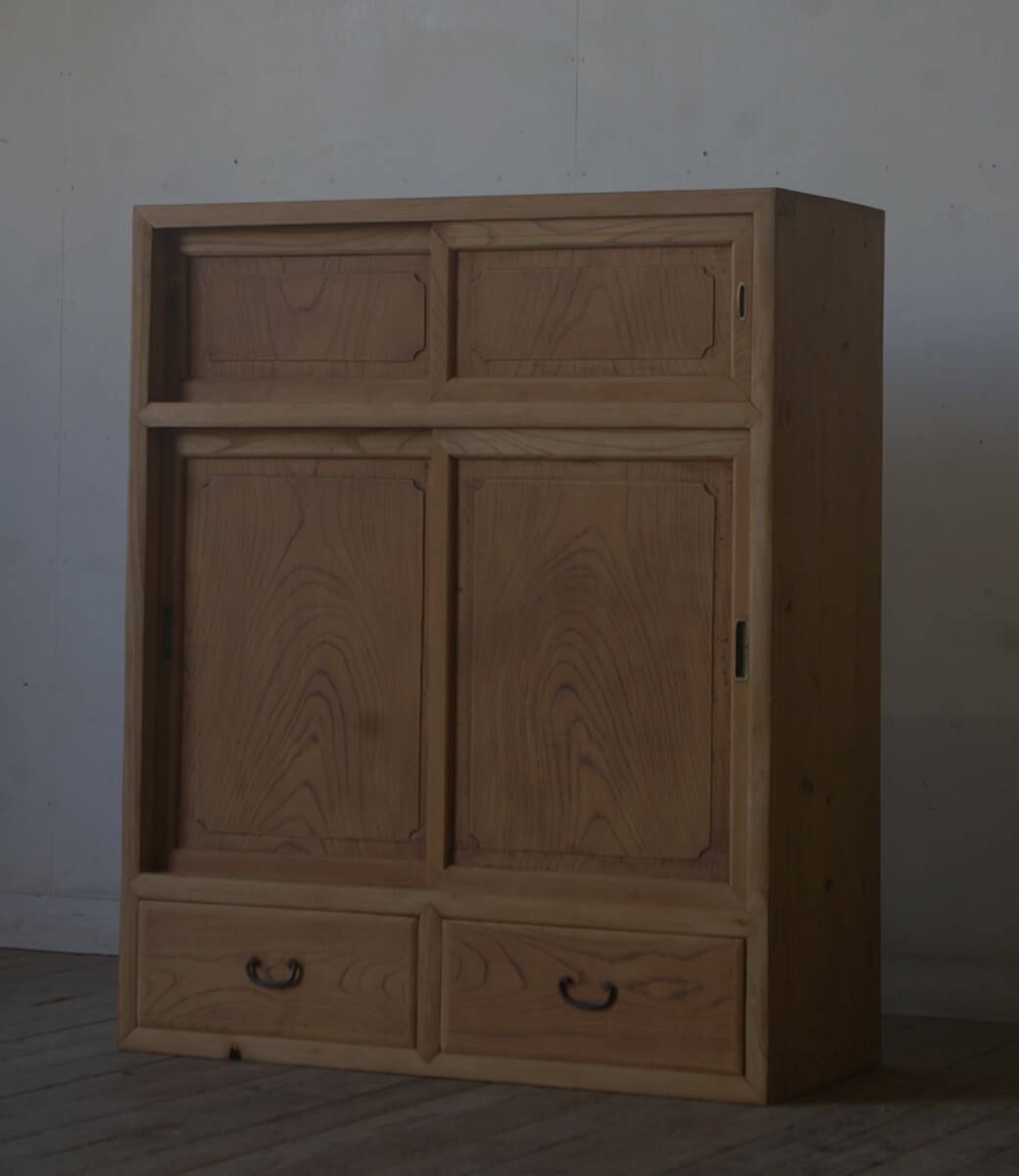 造りの良い古い戸棚◆4枚戸◆引き出し2杯 YZ1942