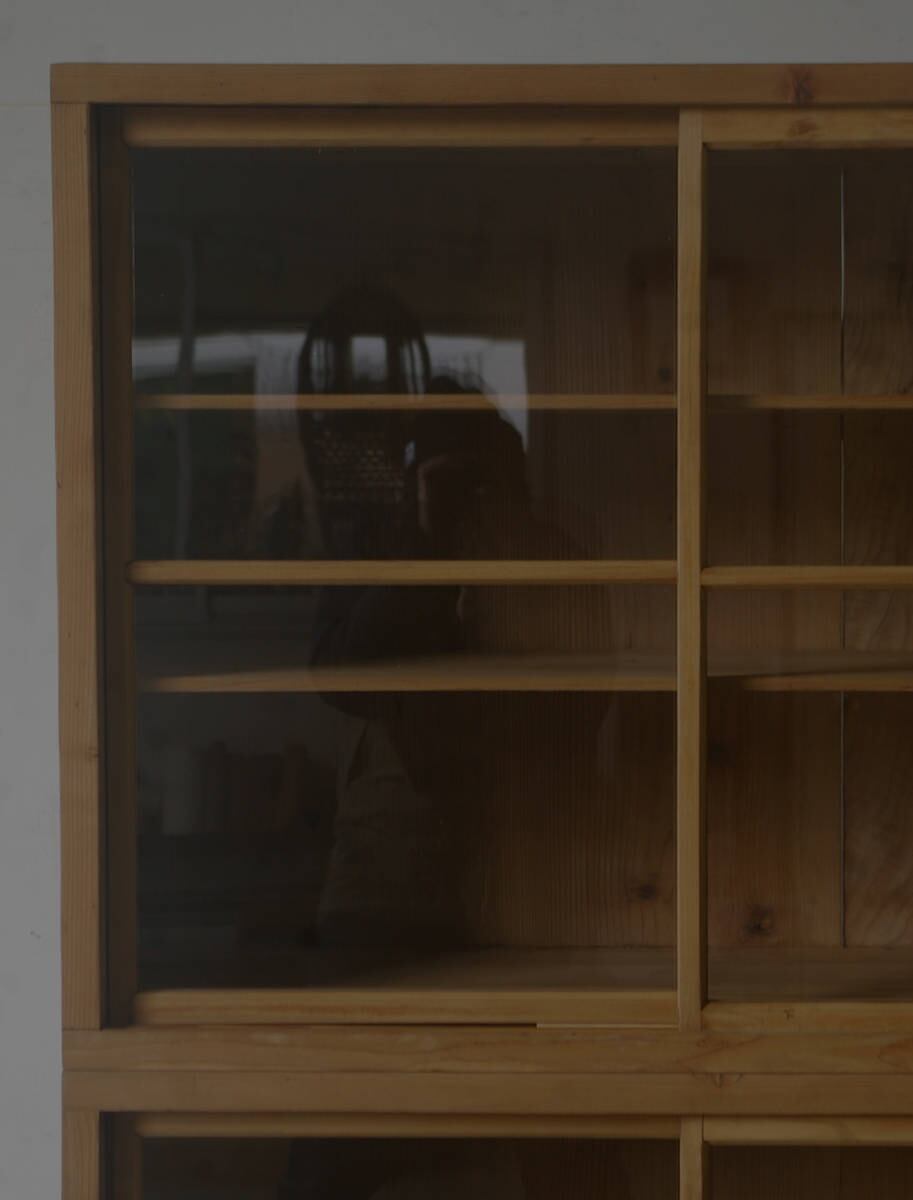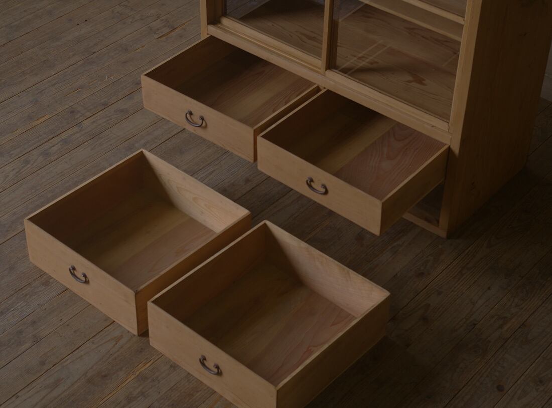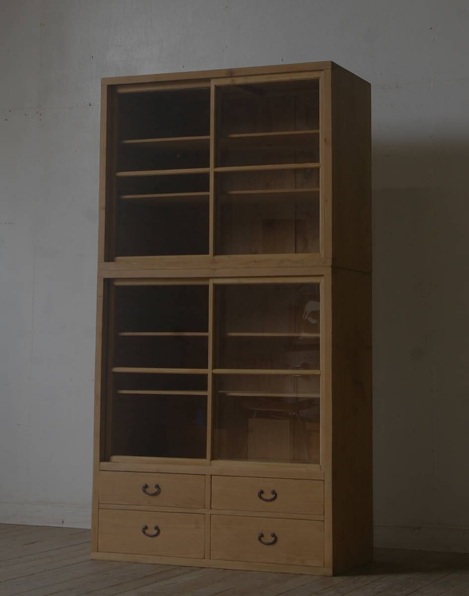 引き出し4杯◆古い重ねガラス戸棚 YZ1953