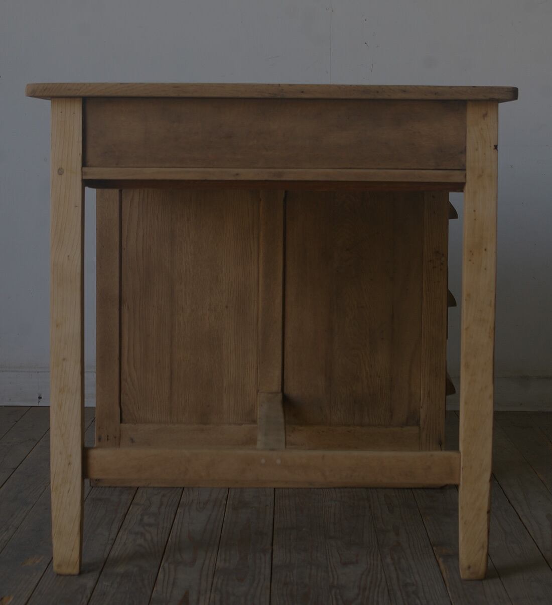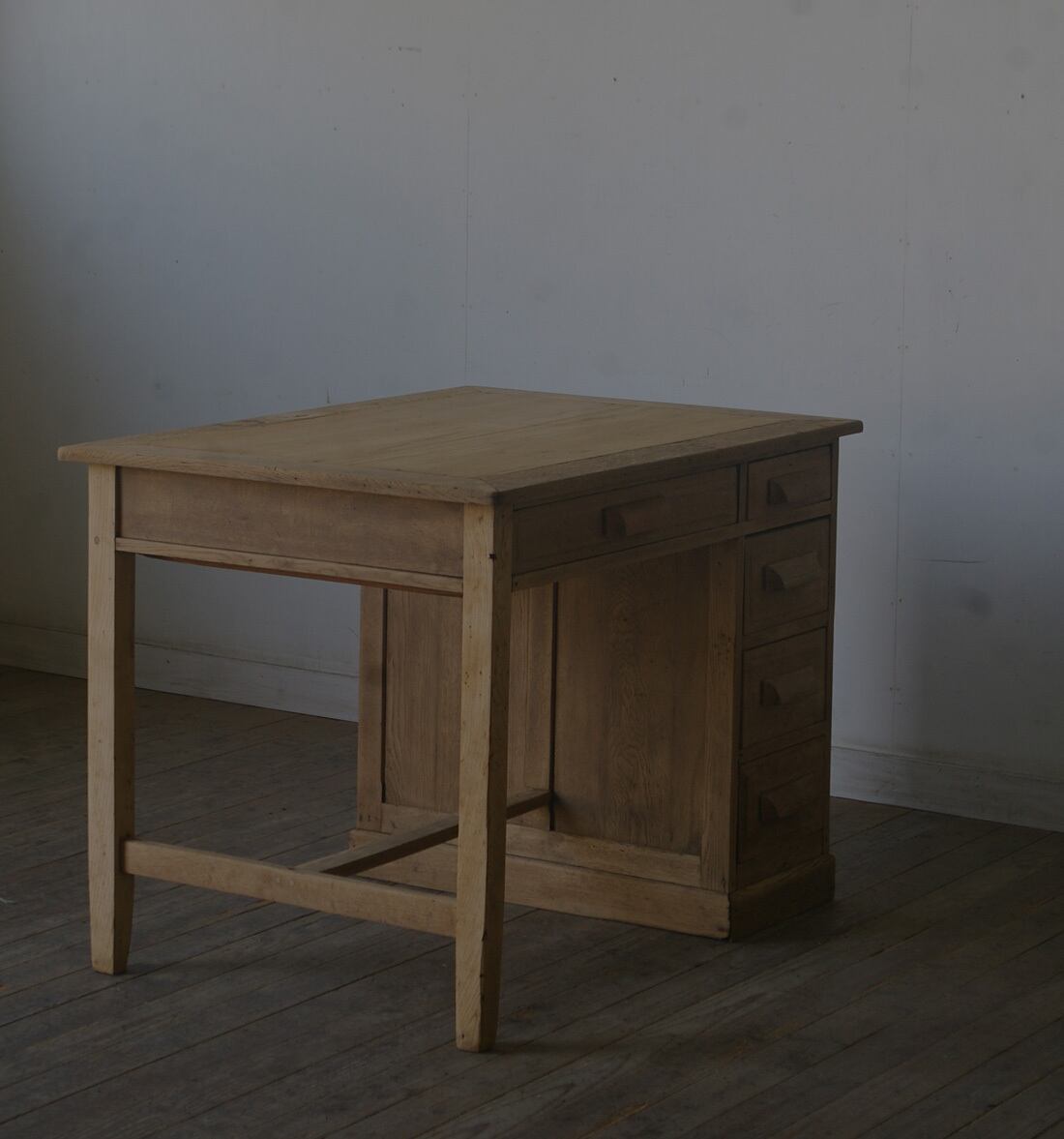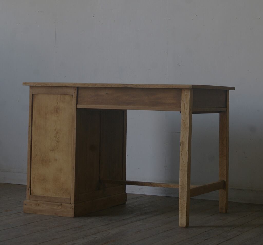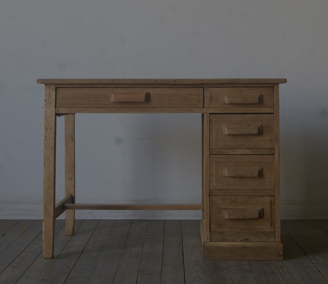 木製取っ手◆古い楢材片袖机◆引き出し5杯 YZ1968