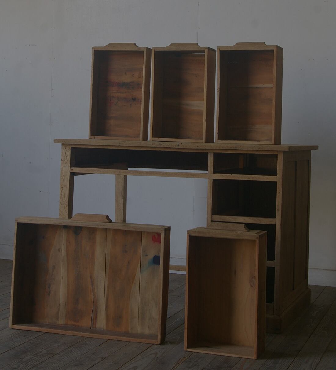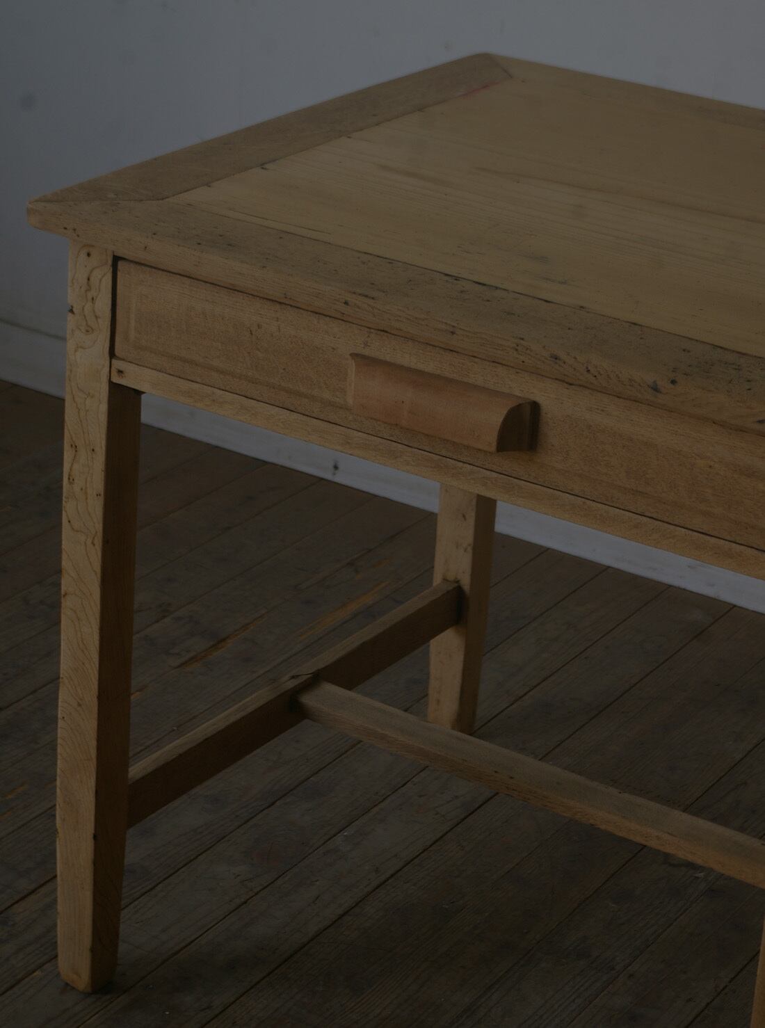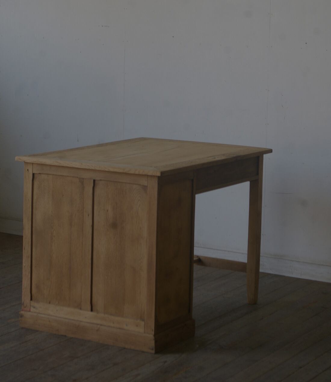 木製取っ手◆古い楢材片袖机◆引き出し5杯 YZ1968