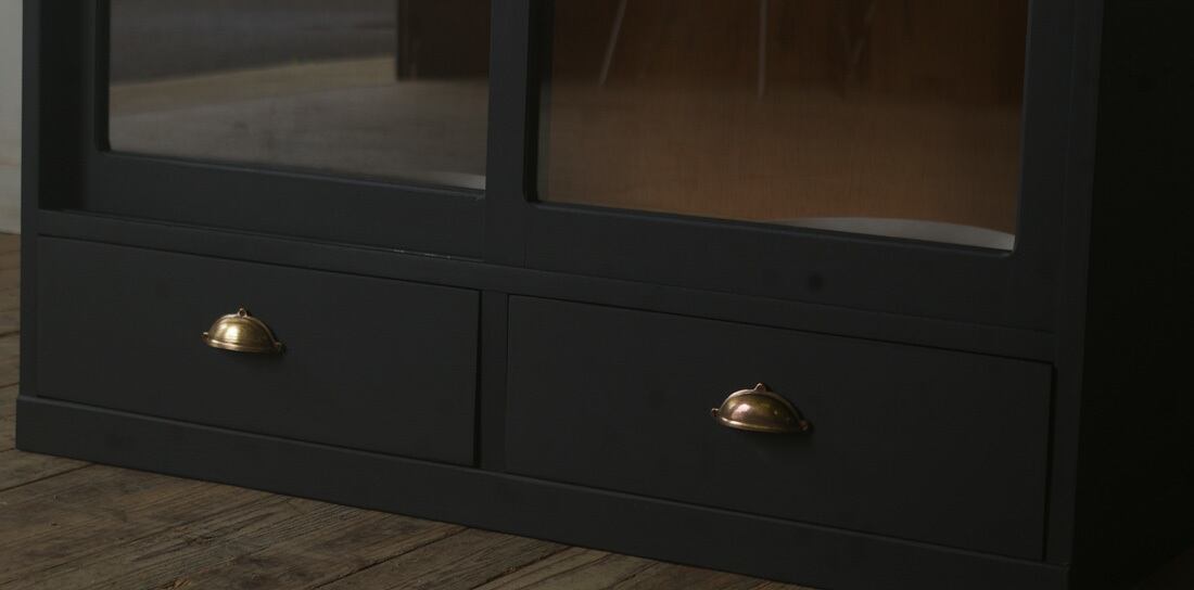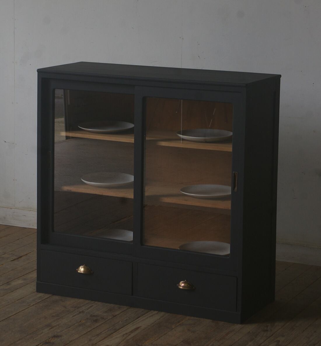 引き出し2杯◆古いガラス戸棚 YZ2029