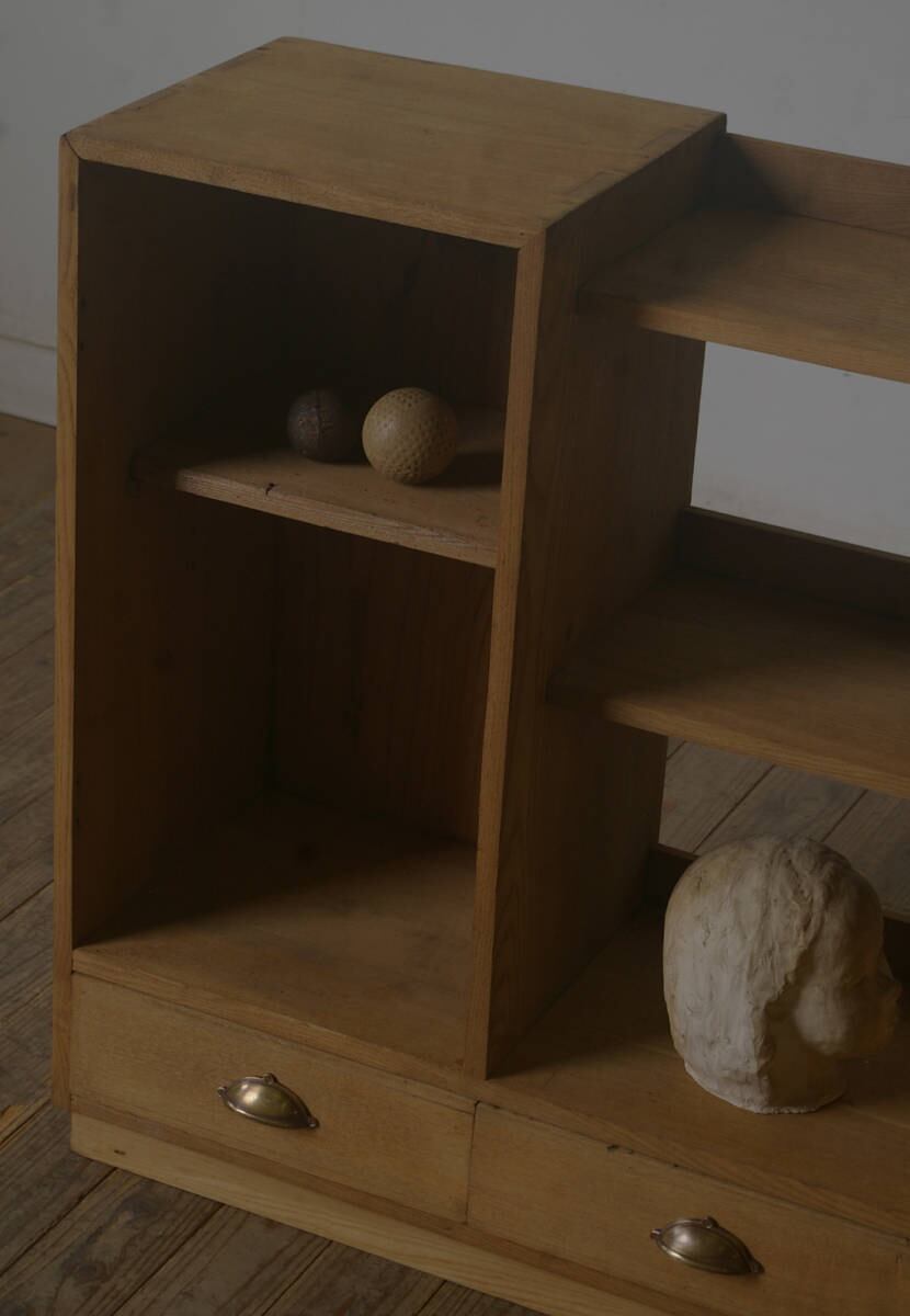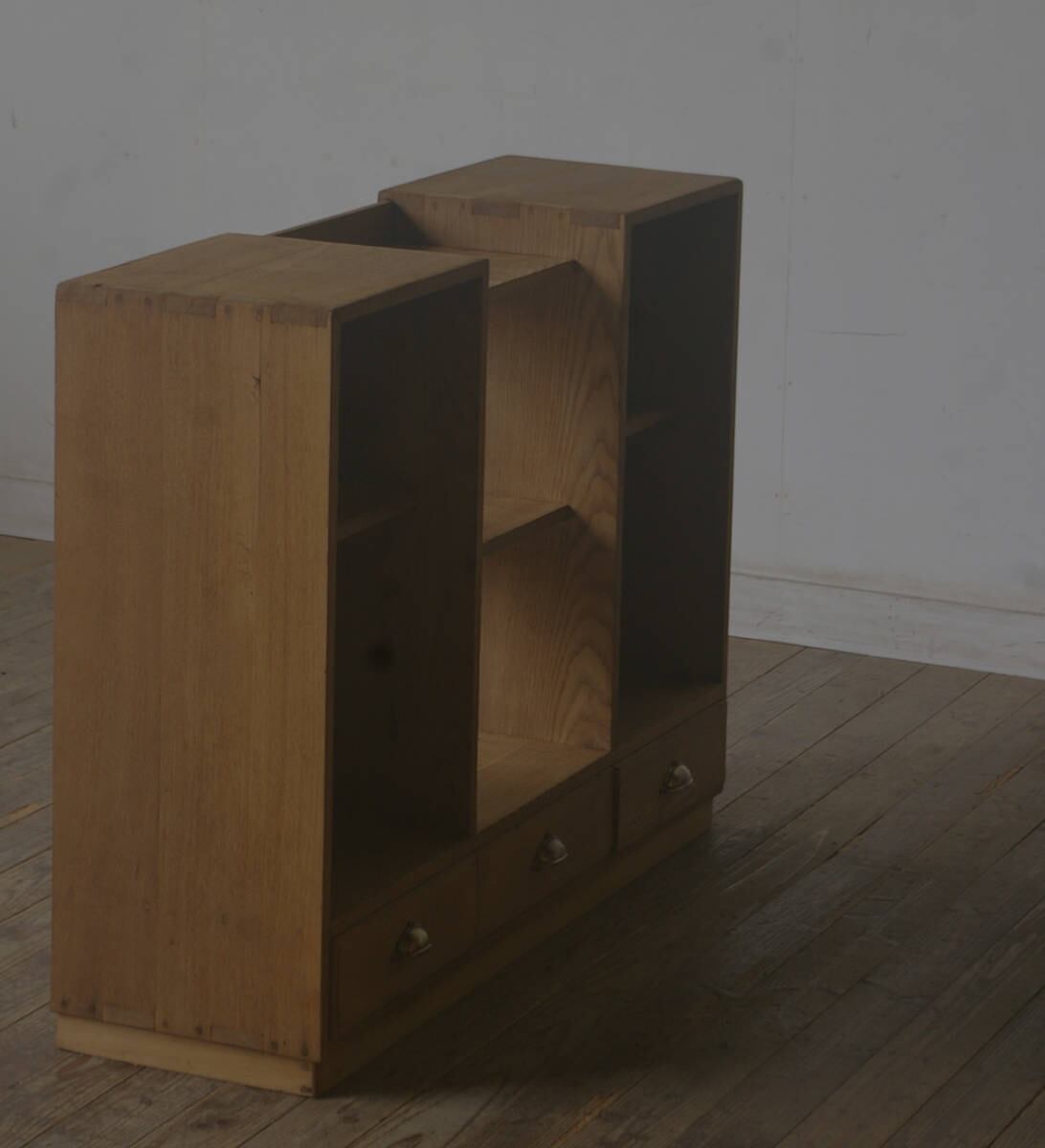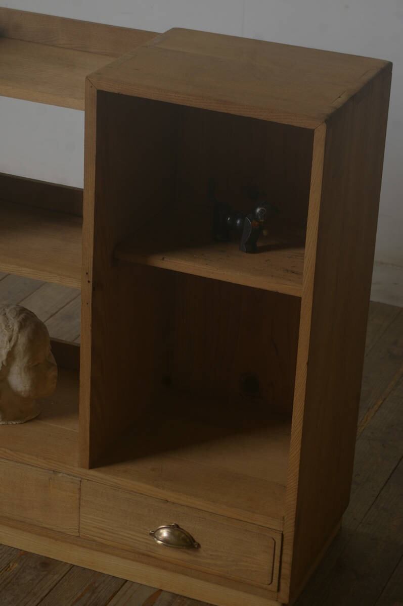 引き出し3杯◆古い楢材の陳列棚 YZ2037