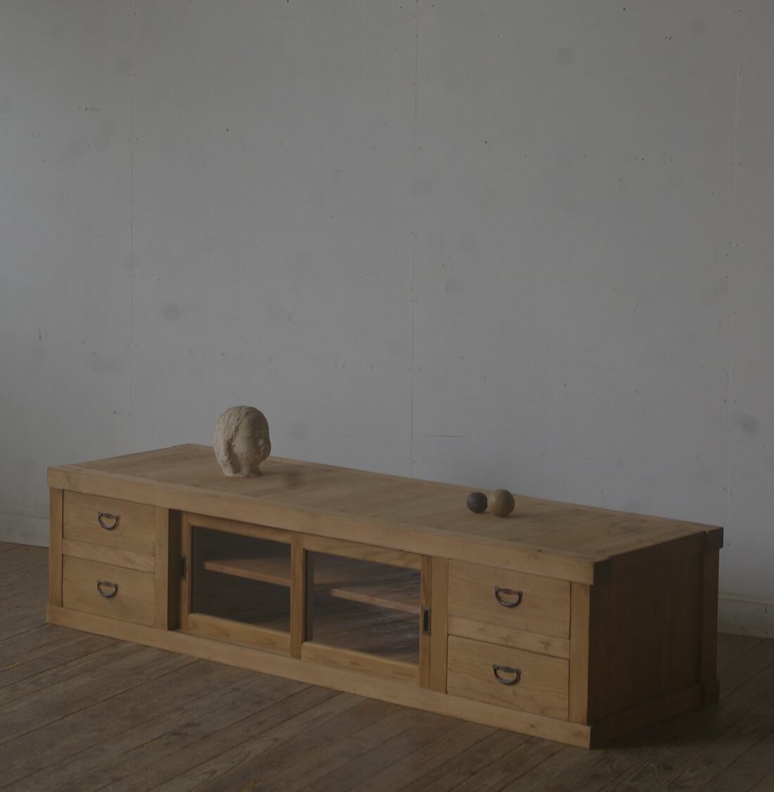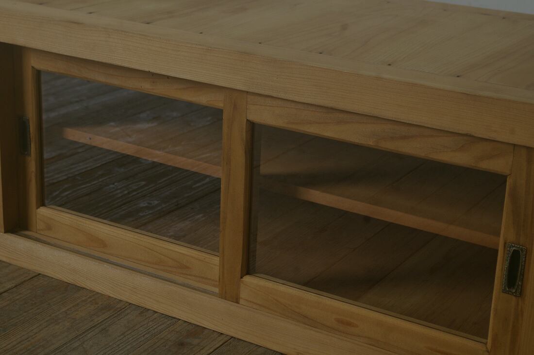 両面開き◆引き出し8杯 背の低い横長ガラス戸棚 ローチェスト YZ2038