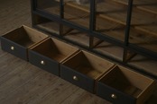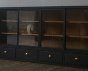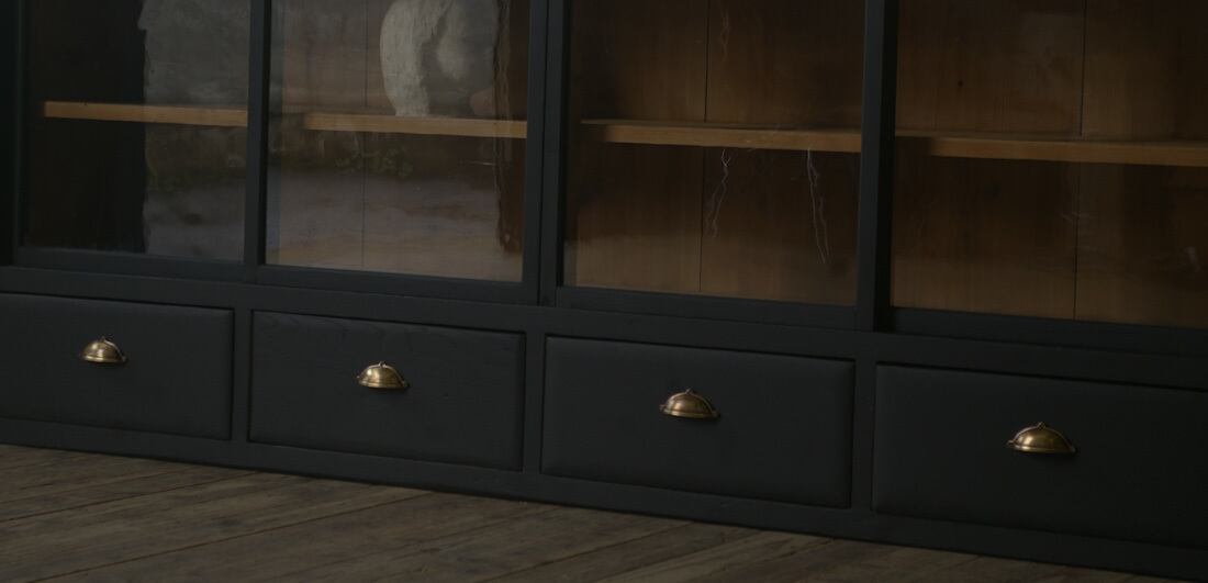 立派な造りで収納力もあり、とても存在感のあるアンティークガラス戸棚です。