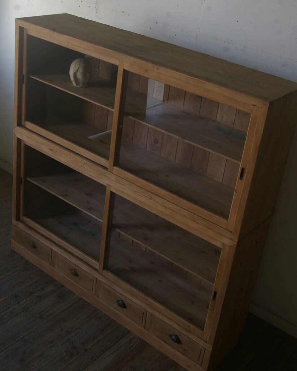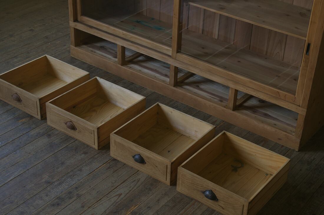 引き出し4杯◆古い重ね大きなガラス戸棚 YZ2045