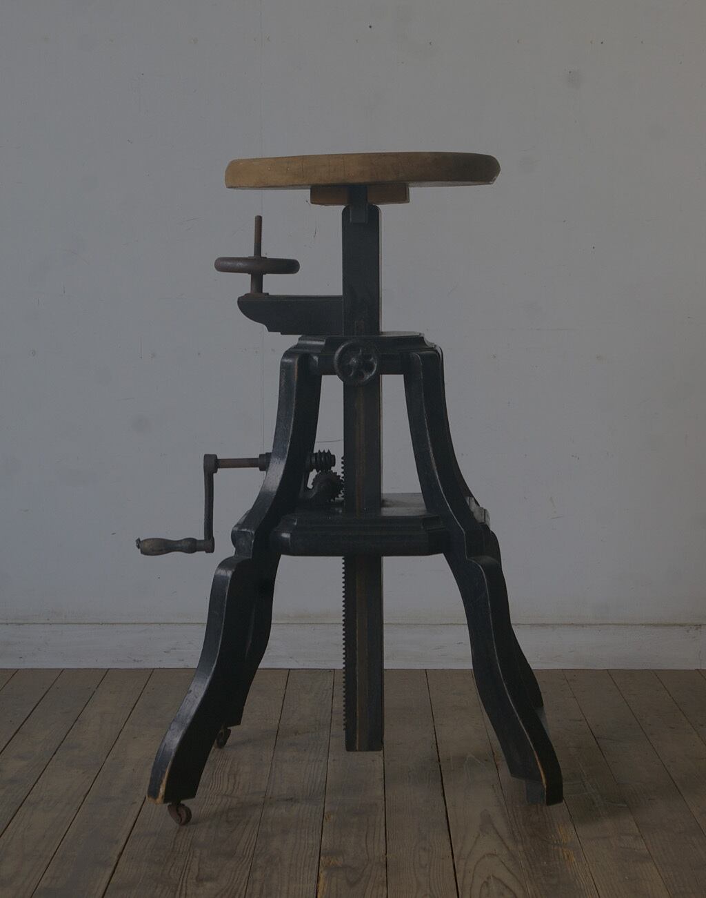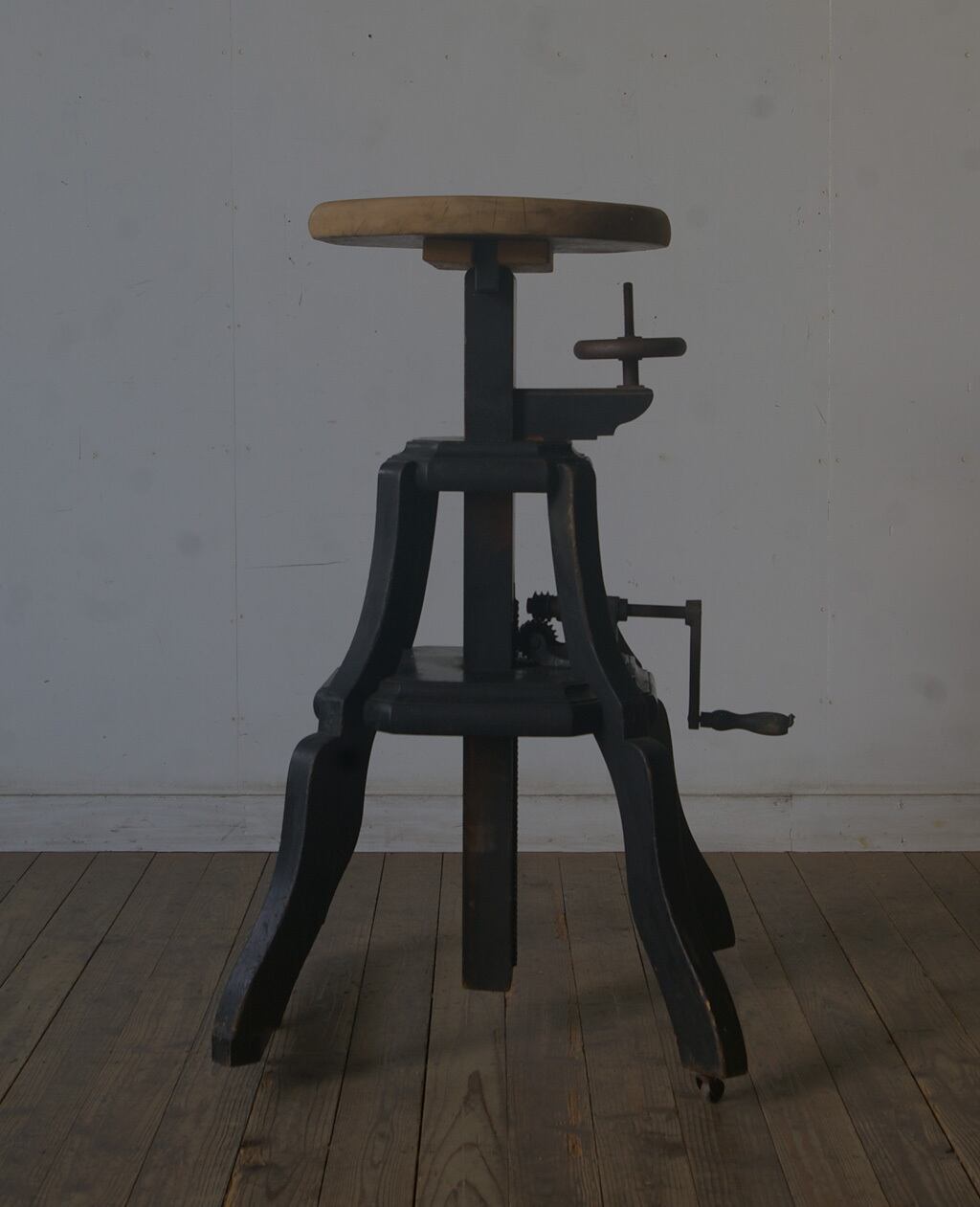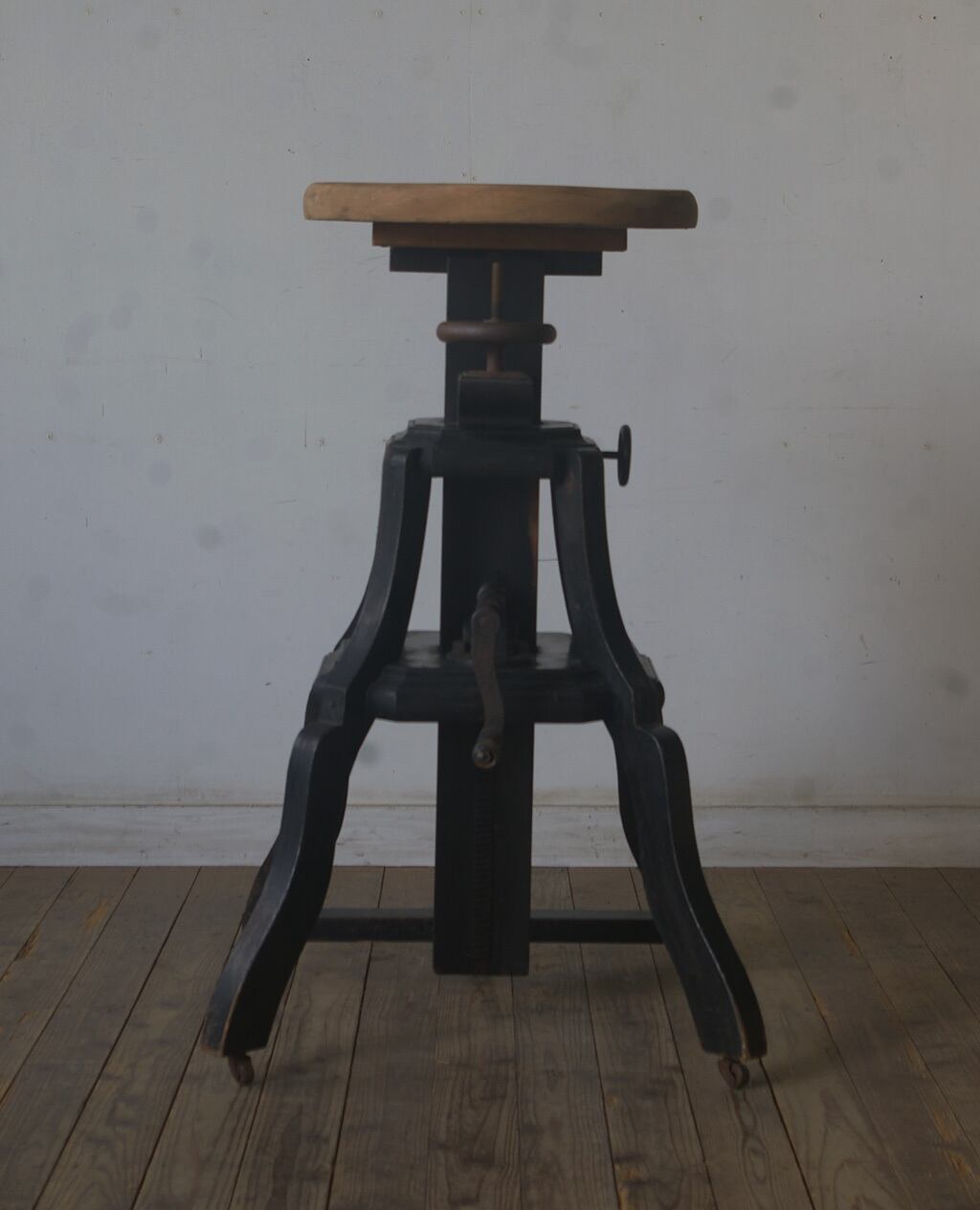 ハンドルの回転により台の高さが調節できる仕組みにはなっておりますが、経年経過による錆などの影響でハンドルの回転がかなり重い状態ではありますので、基本的にはこのままの高さでご使用頂く事をオススメ致します。