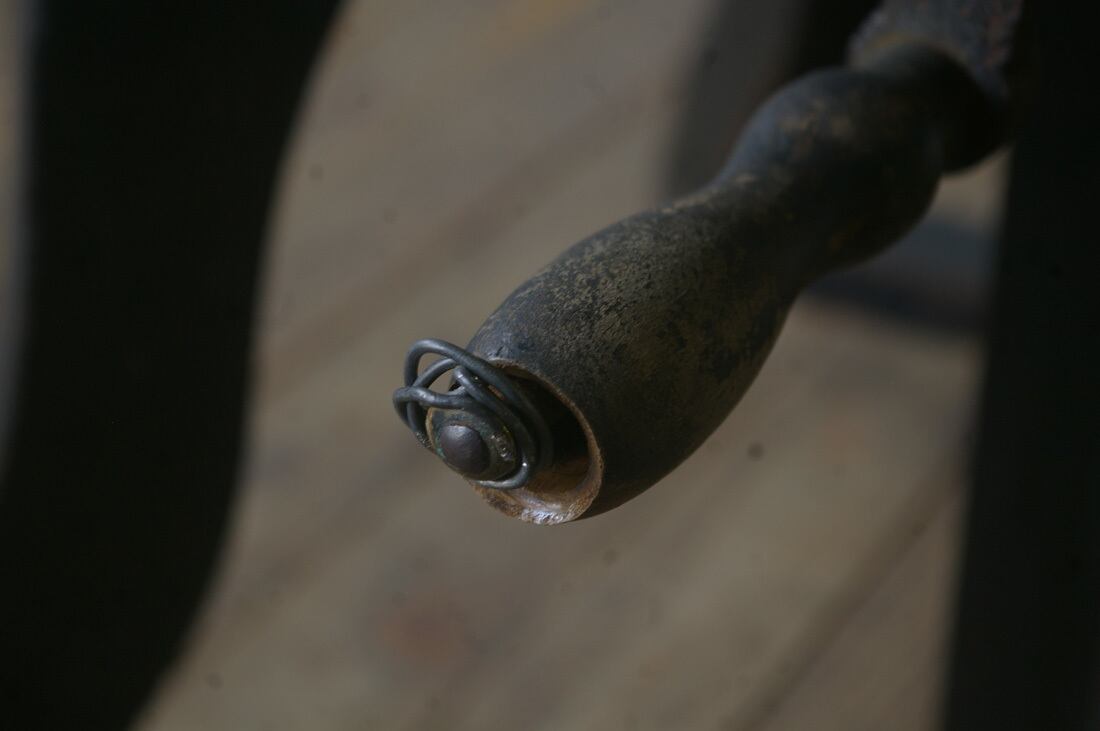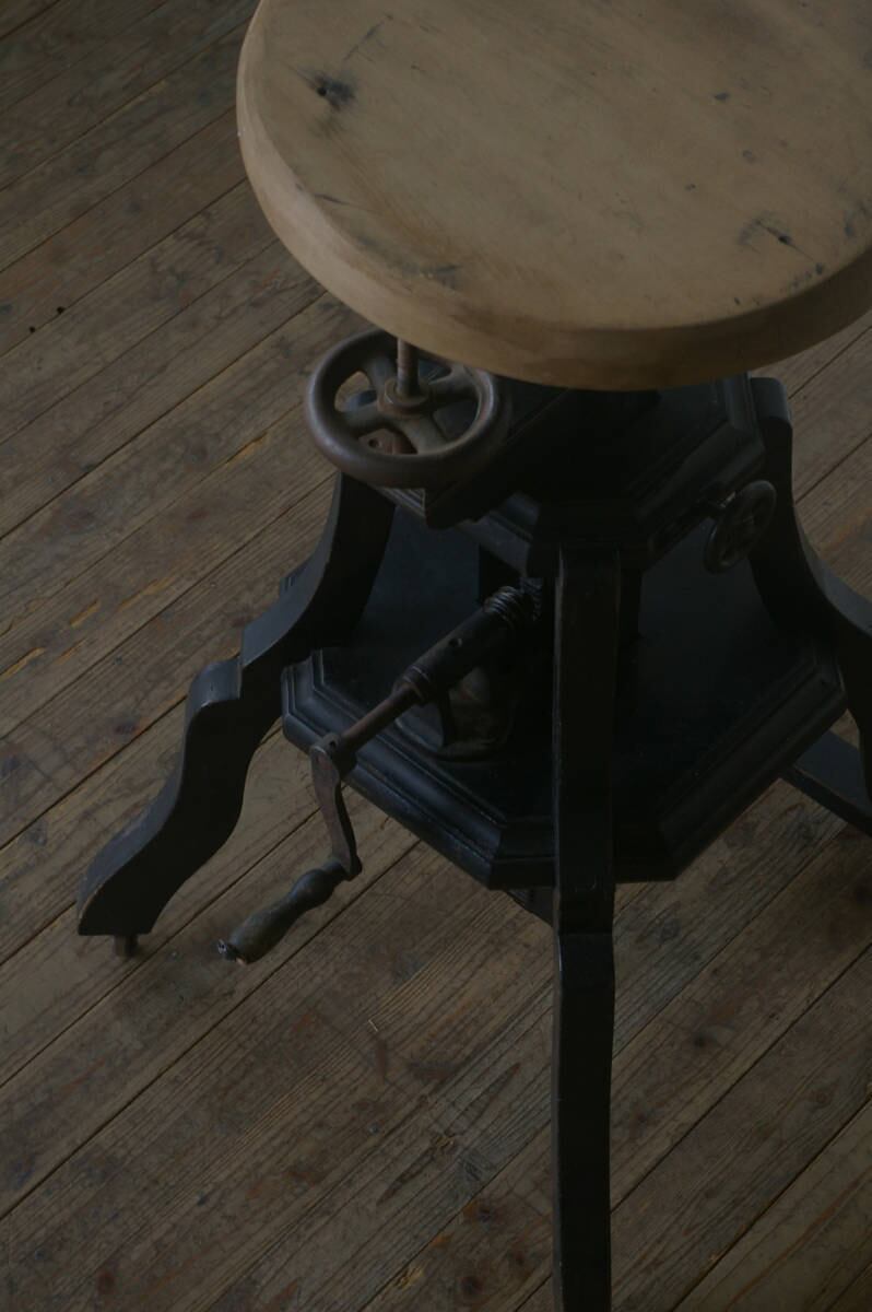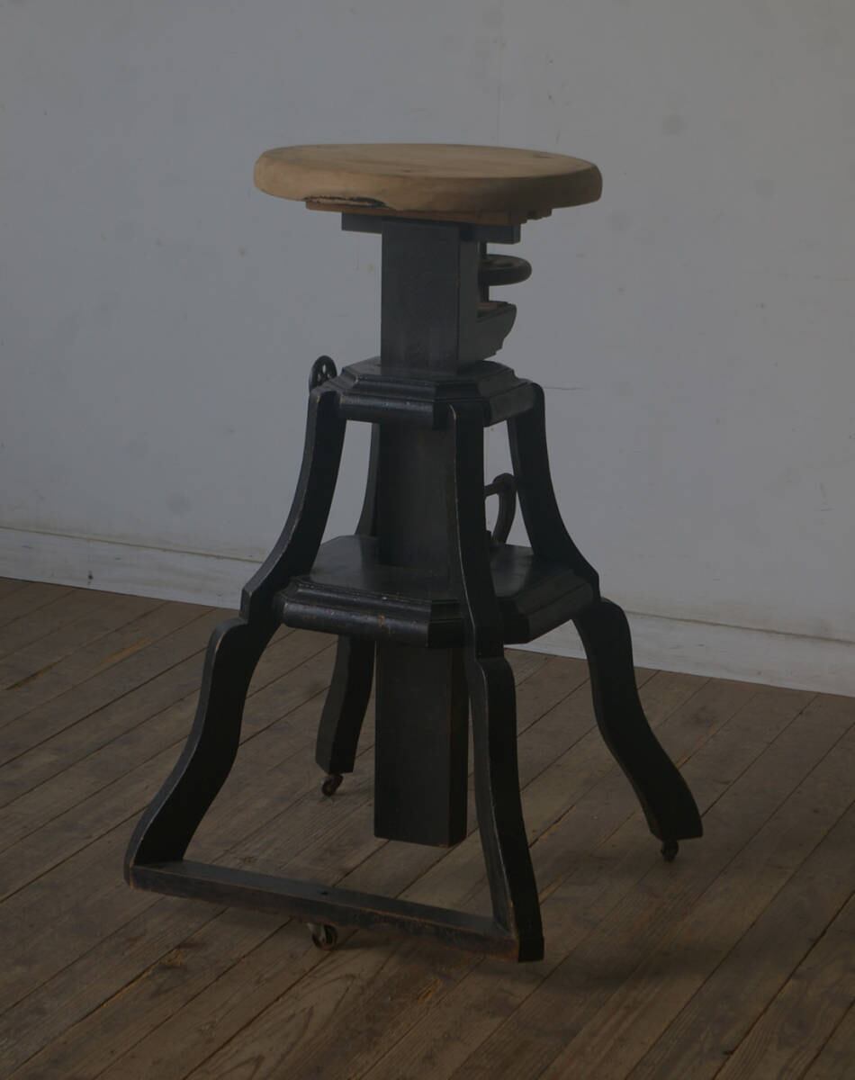 ハンドルの回転により台の高さが調節できる仕組みにはなっておりますが、経年経過による錆などの影響でハンドルの回転がかなり重い状態ではありますので、基本的にはこのままの高さでご使用頂く事をオススメ致します。