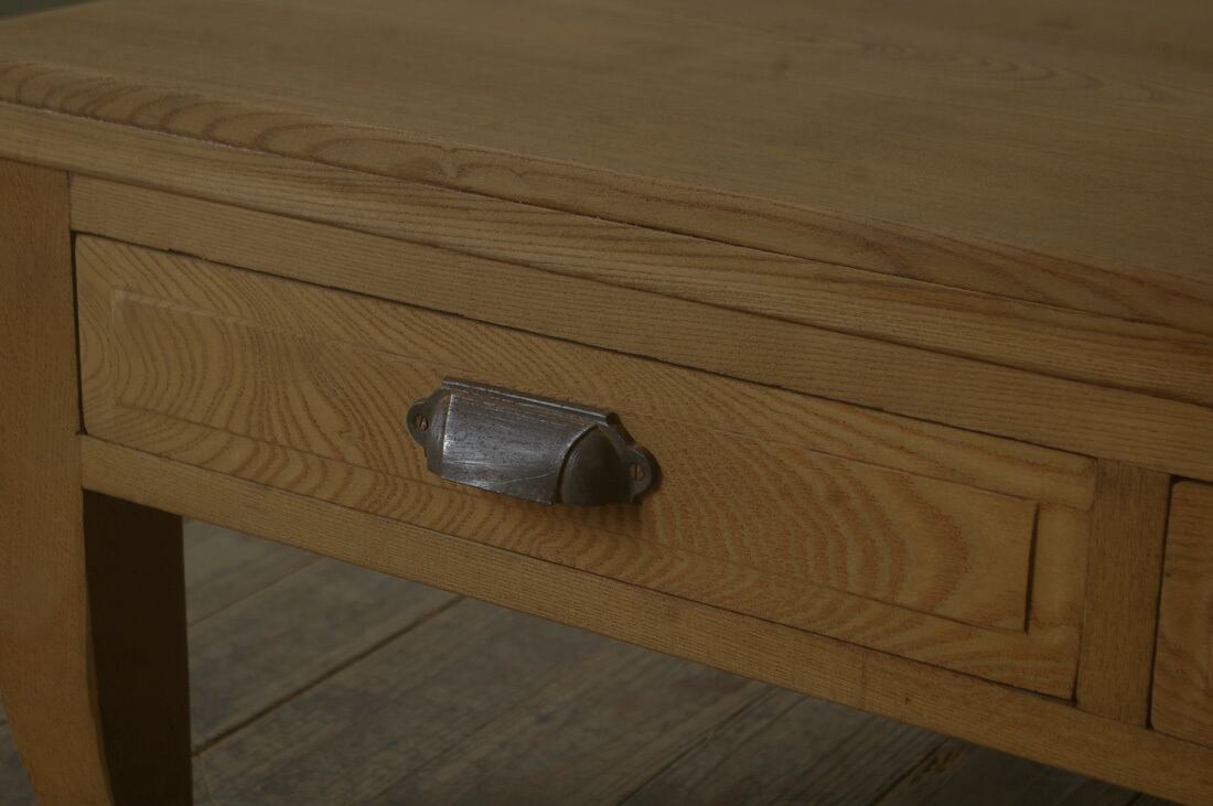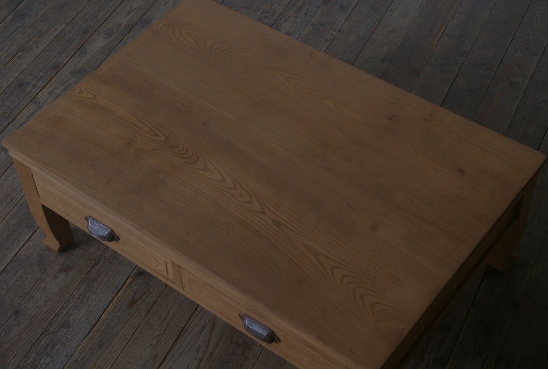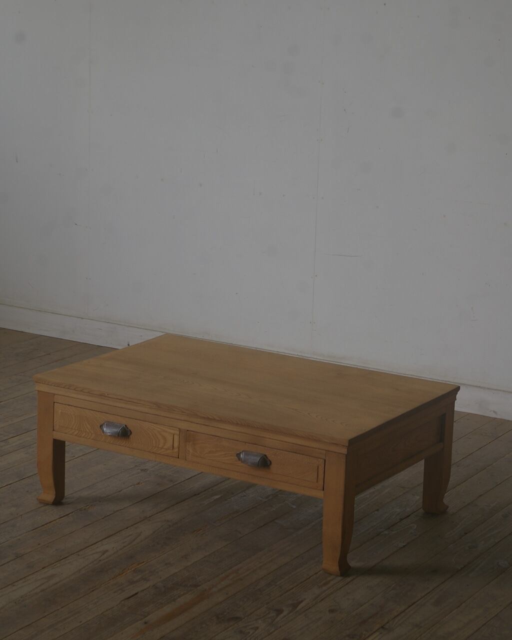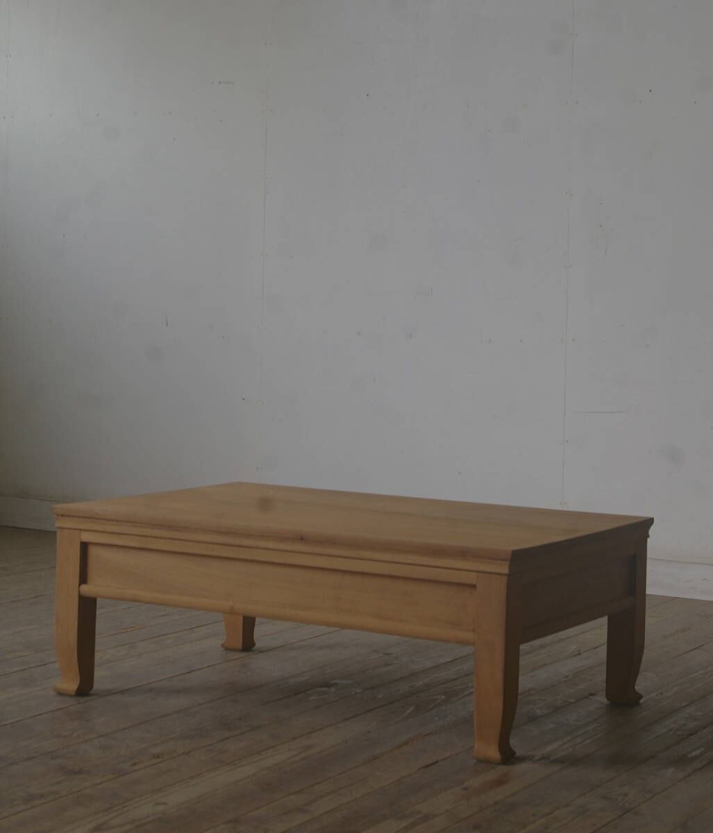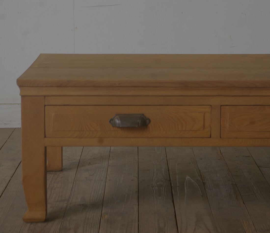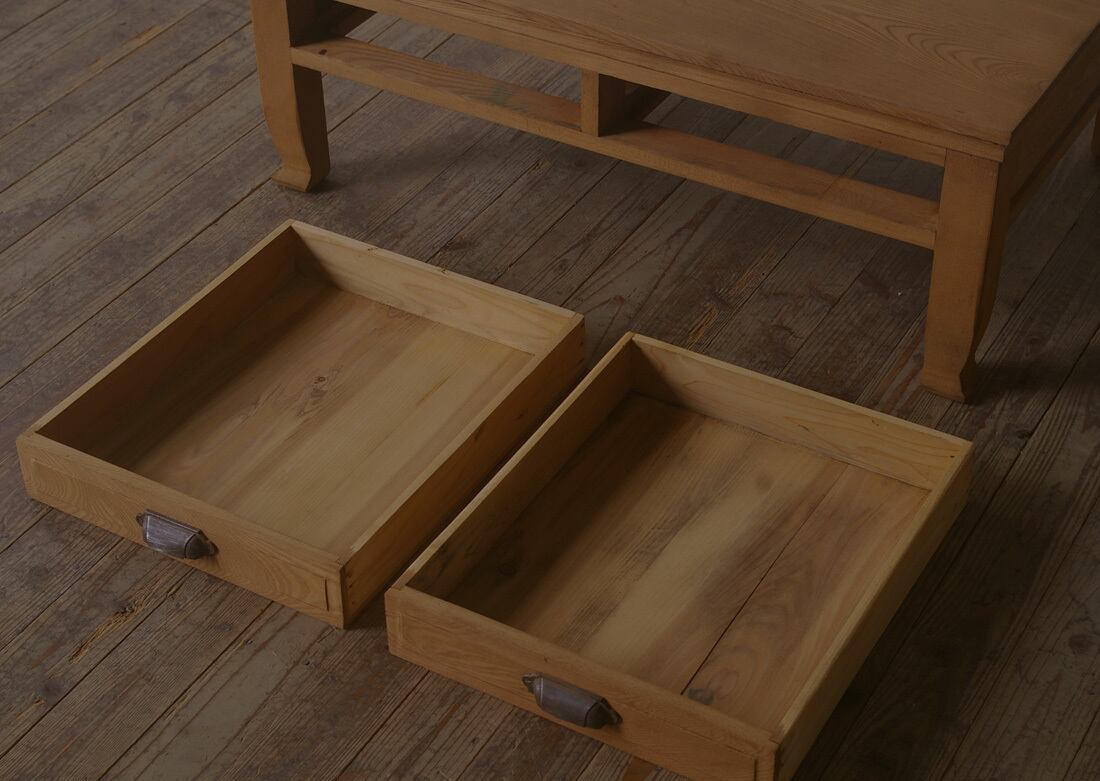 欅材◆古手◆造りの良いローテーブル◆引き出し2杯 YZ2058