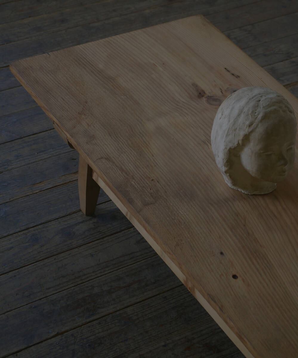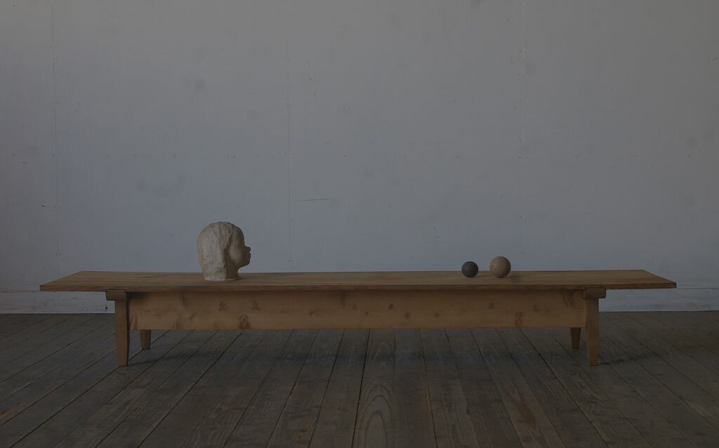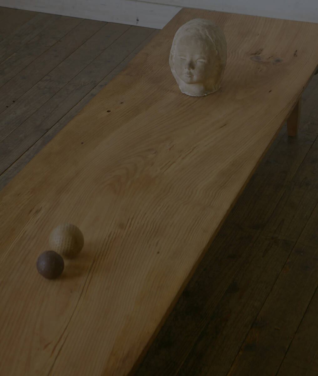 古い無垢材の綺麗な木目がとても雰囲気の良いアンティーク横長ローテーブルです。