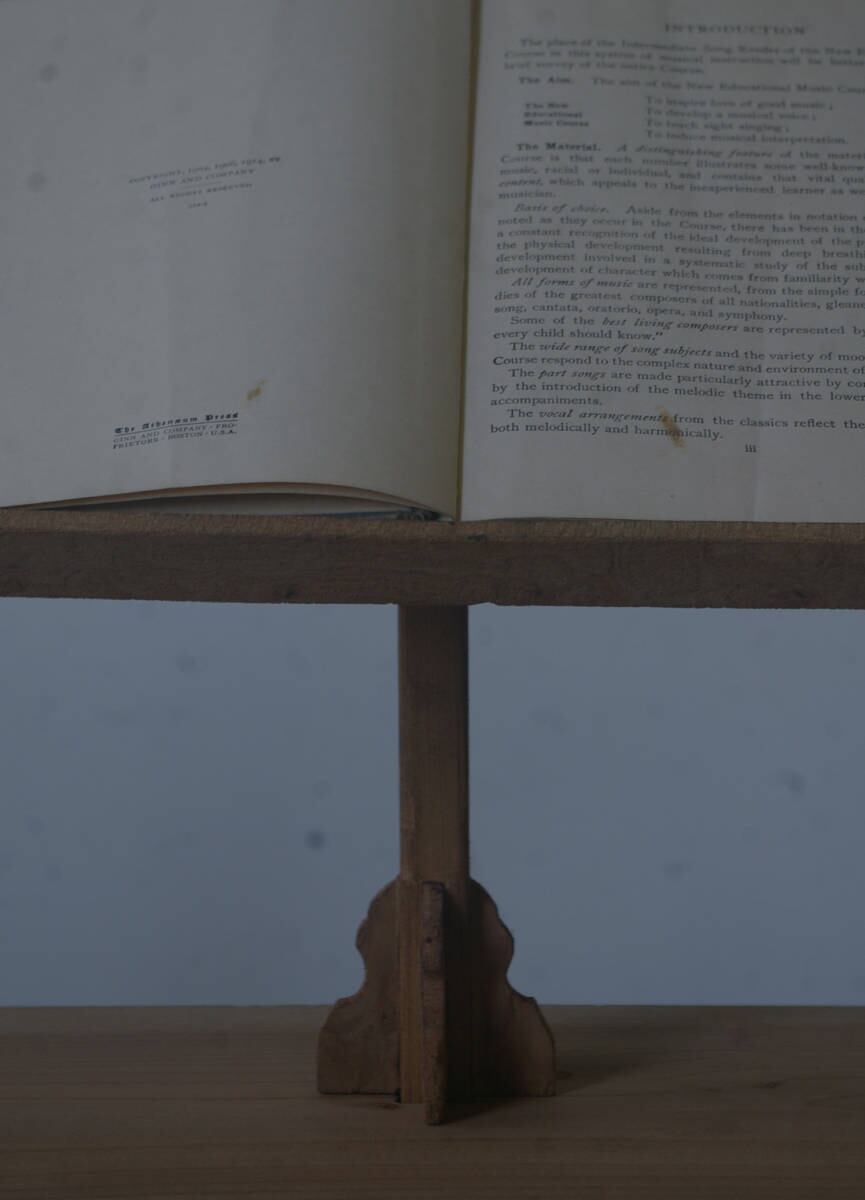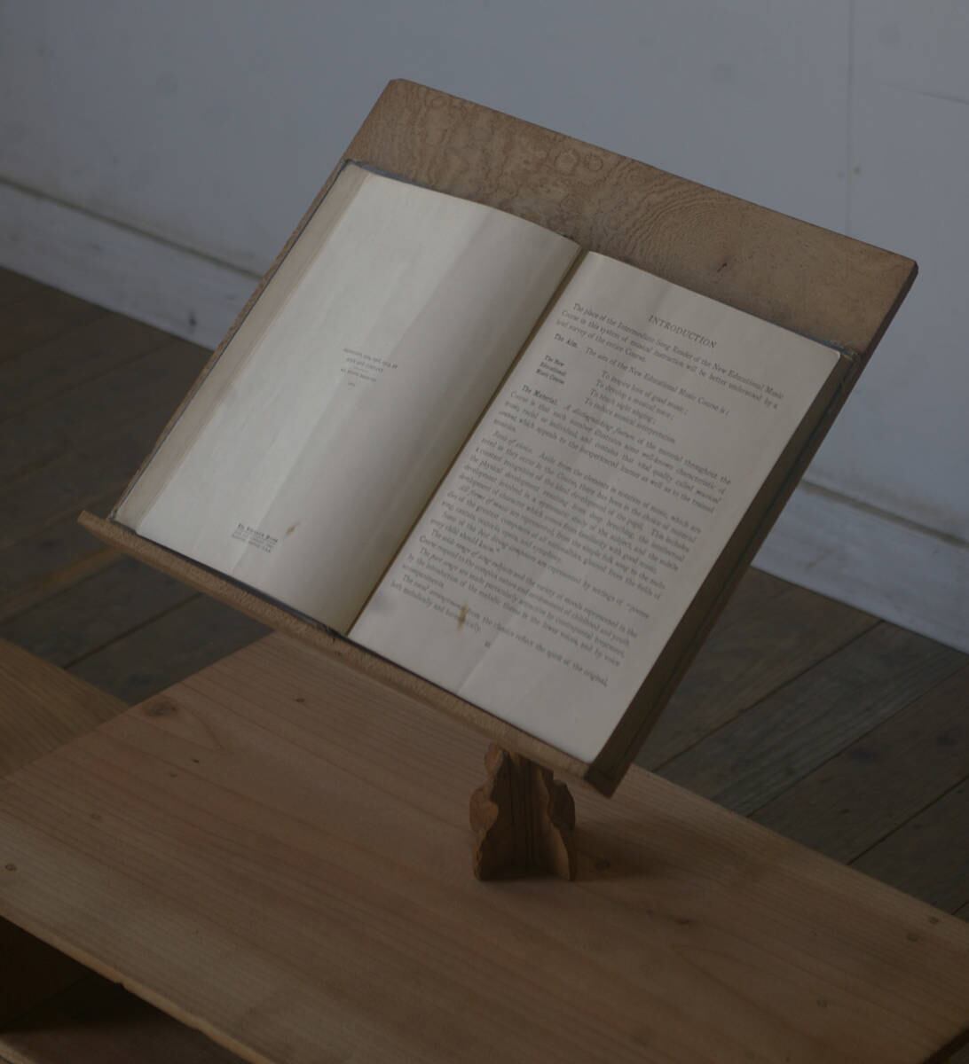 古い無垢材の綺麗な木目がとても雰囲気の良いアンティーク分解式書見台です。