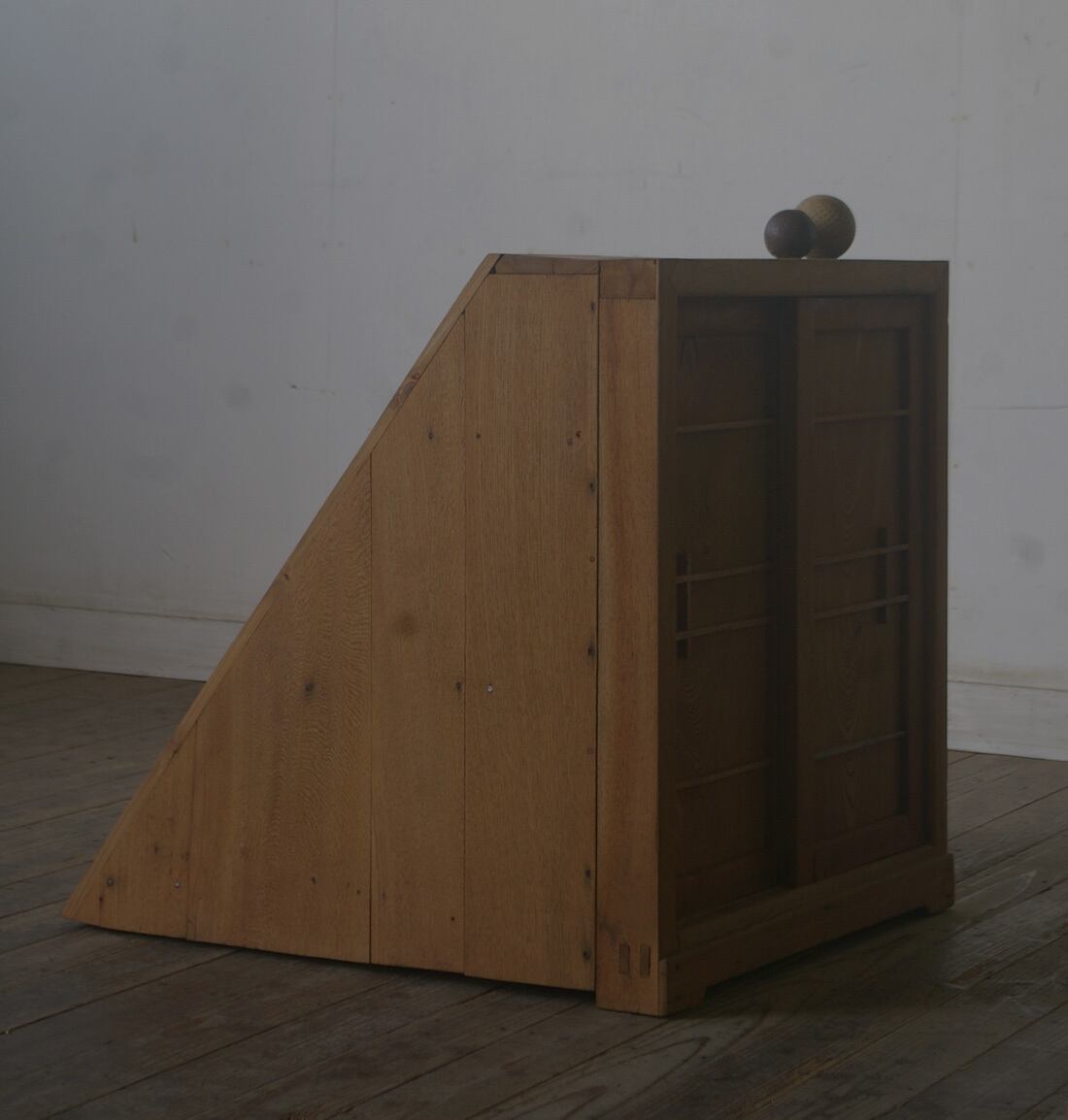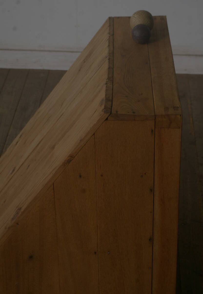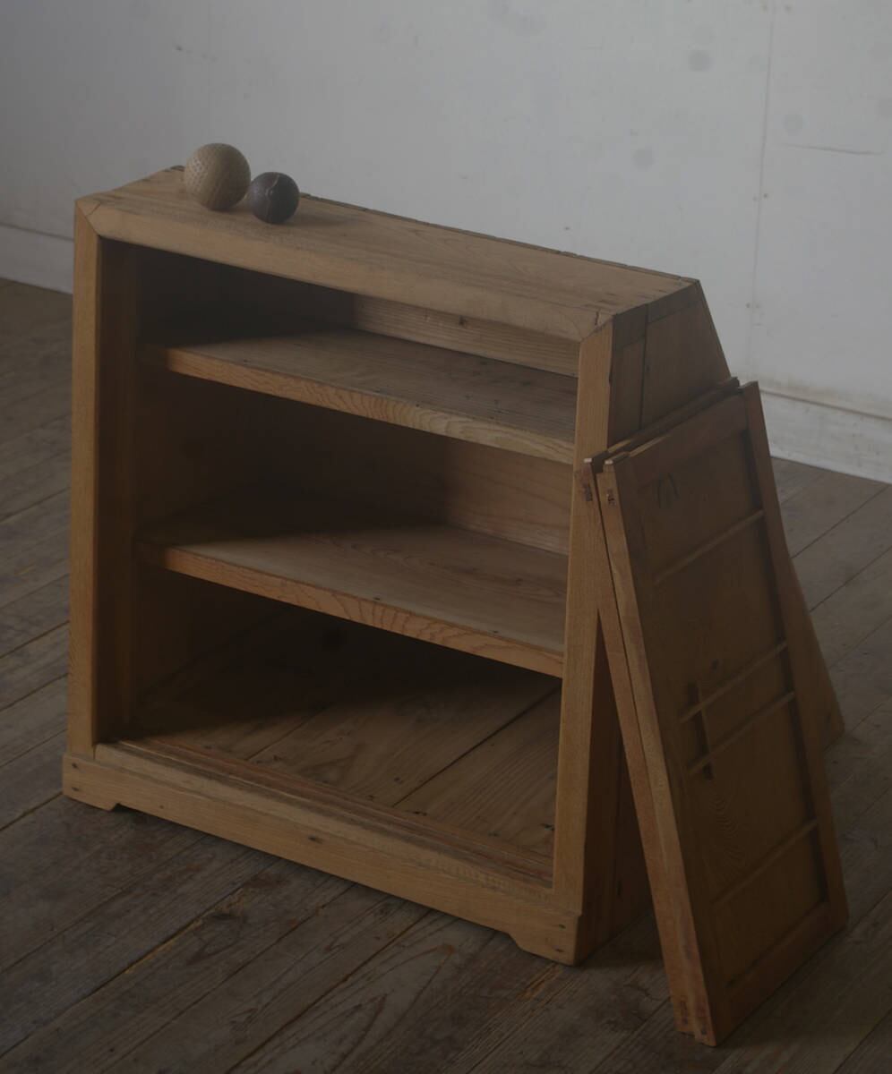立派な造りで珍しく、古い無垢材の綺麗な木目がとても雰囲気の良いアンティーク階段下の戸棚です。