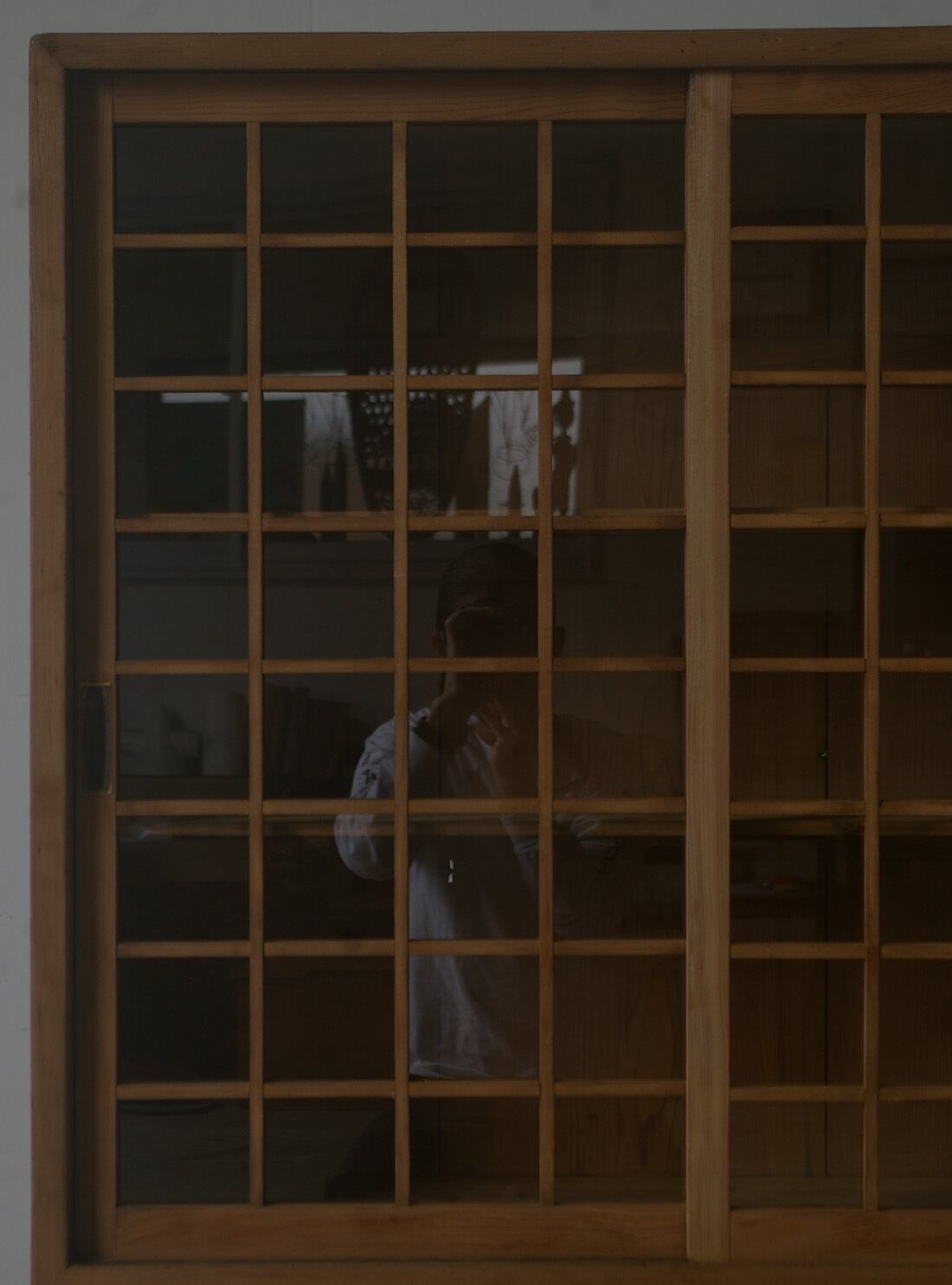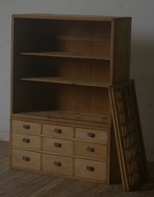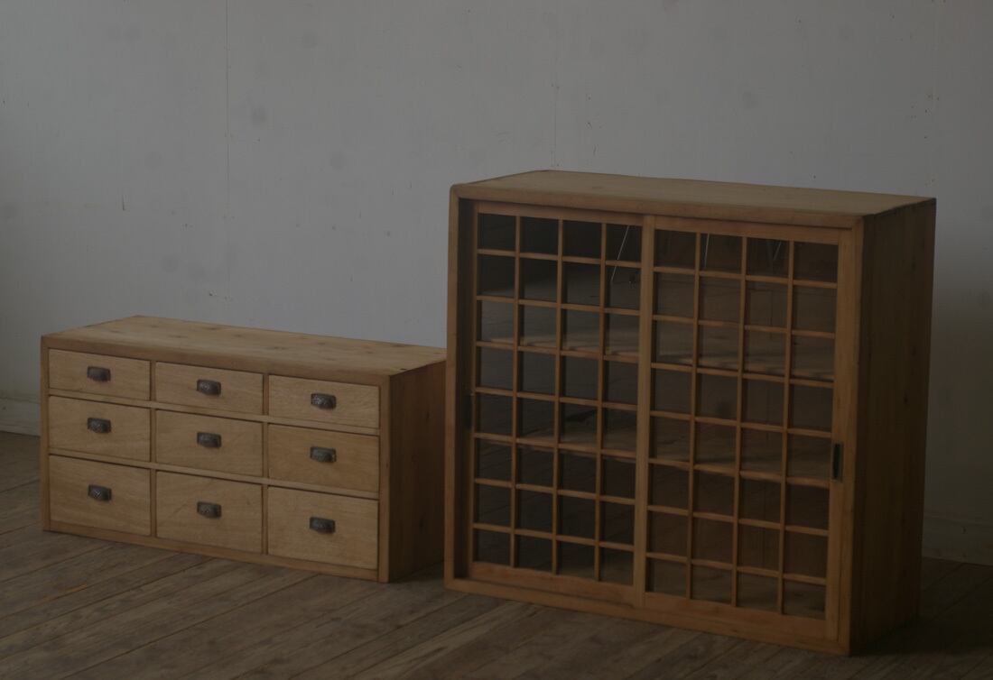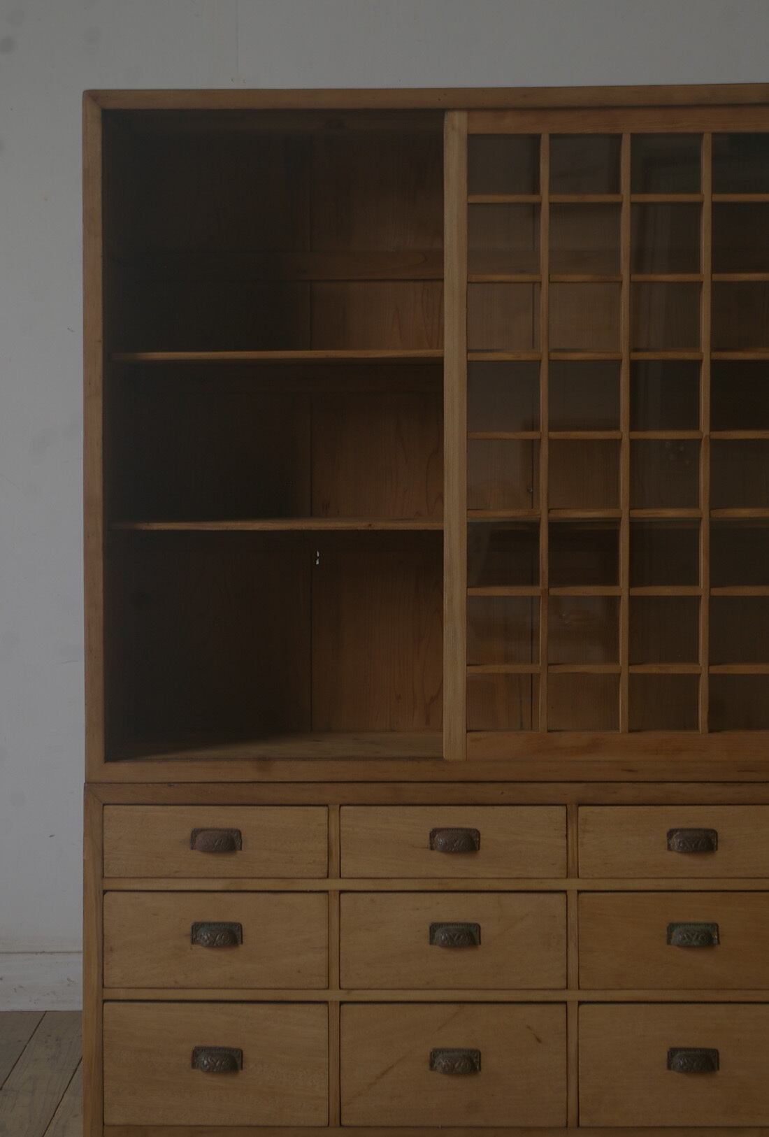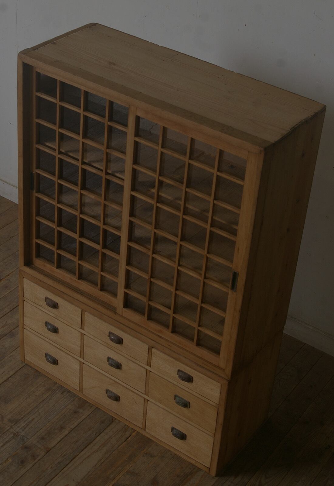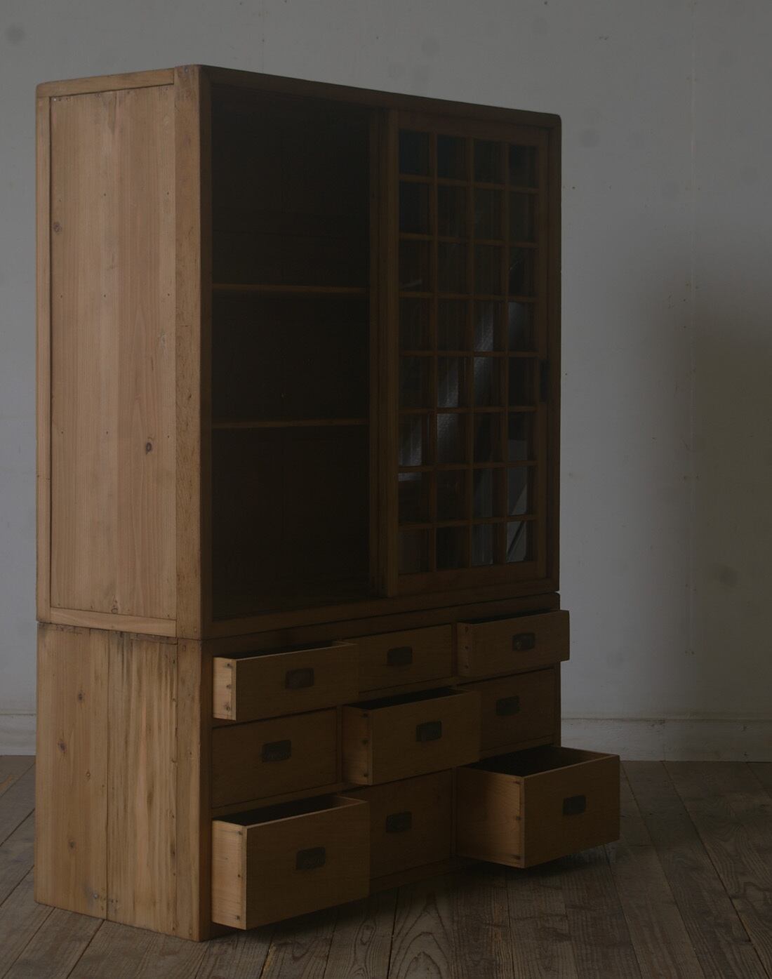 引き出し9杯◆重ね◆古い格子ガラス戸棚 YZ2067