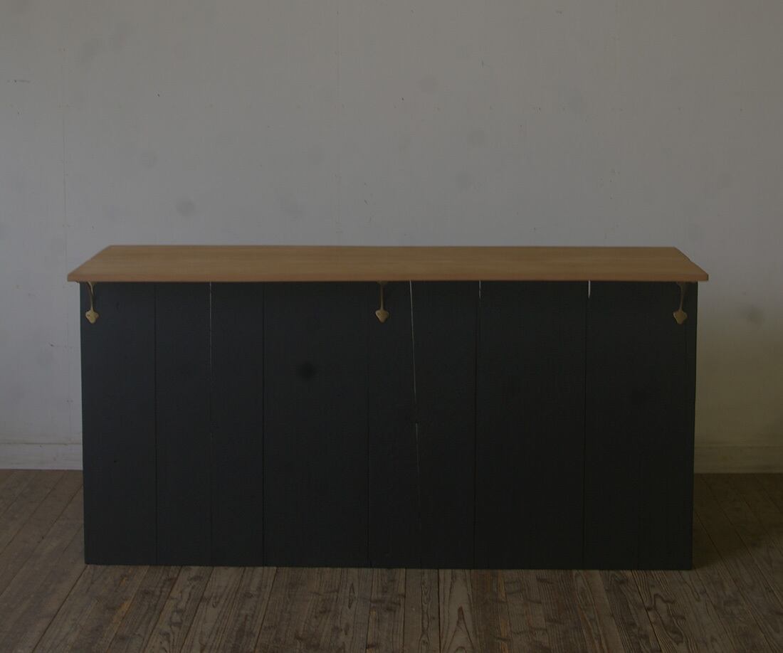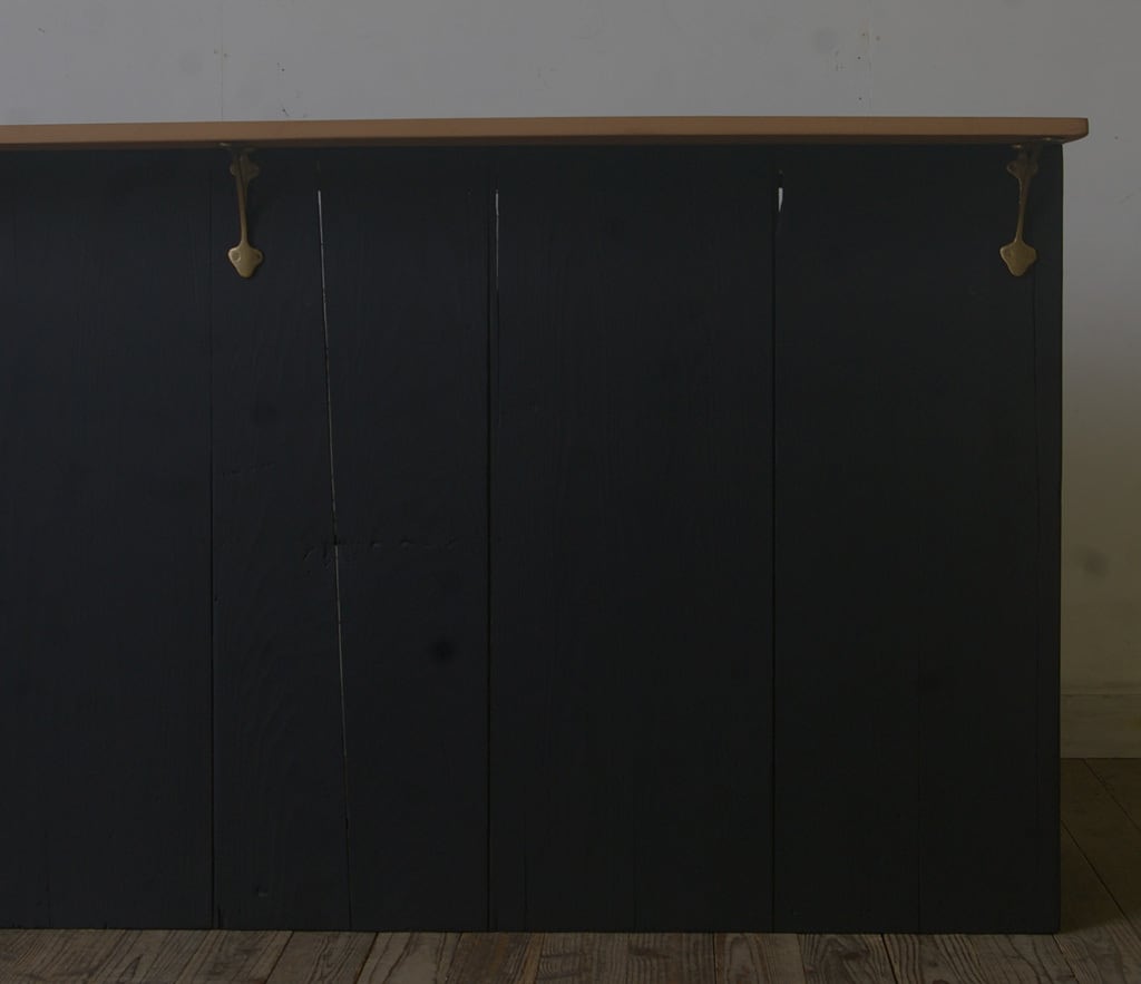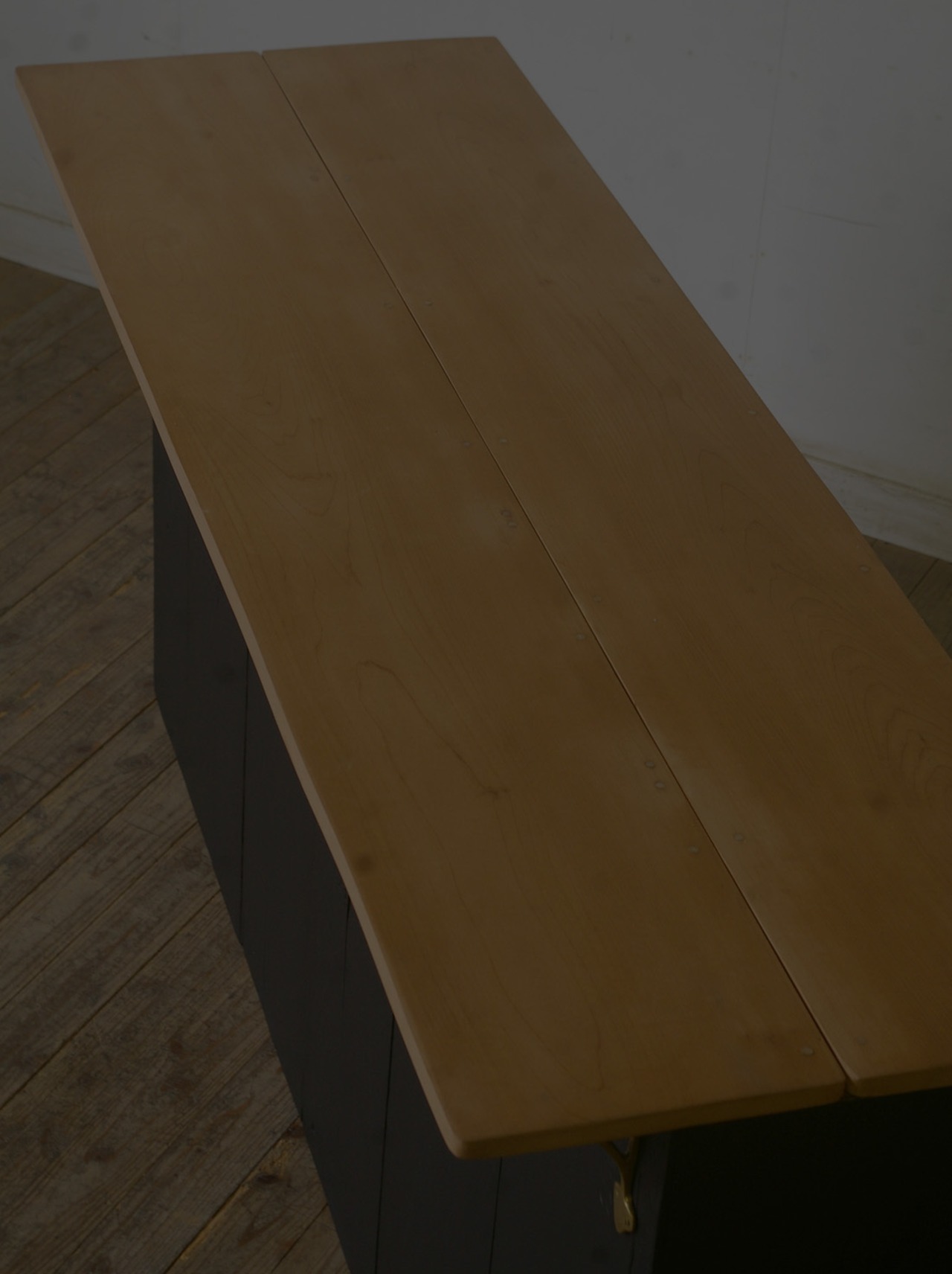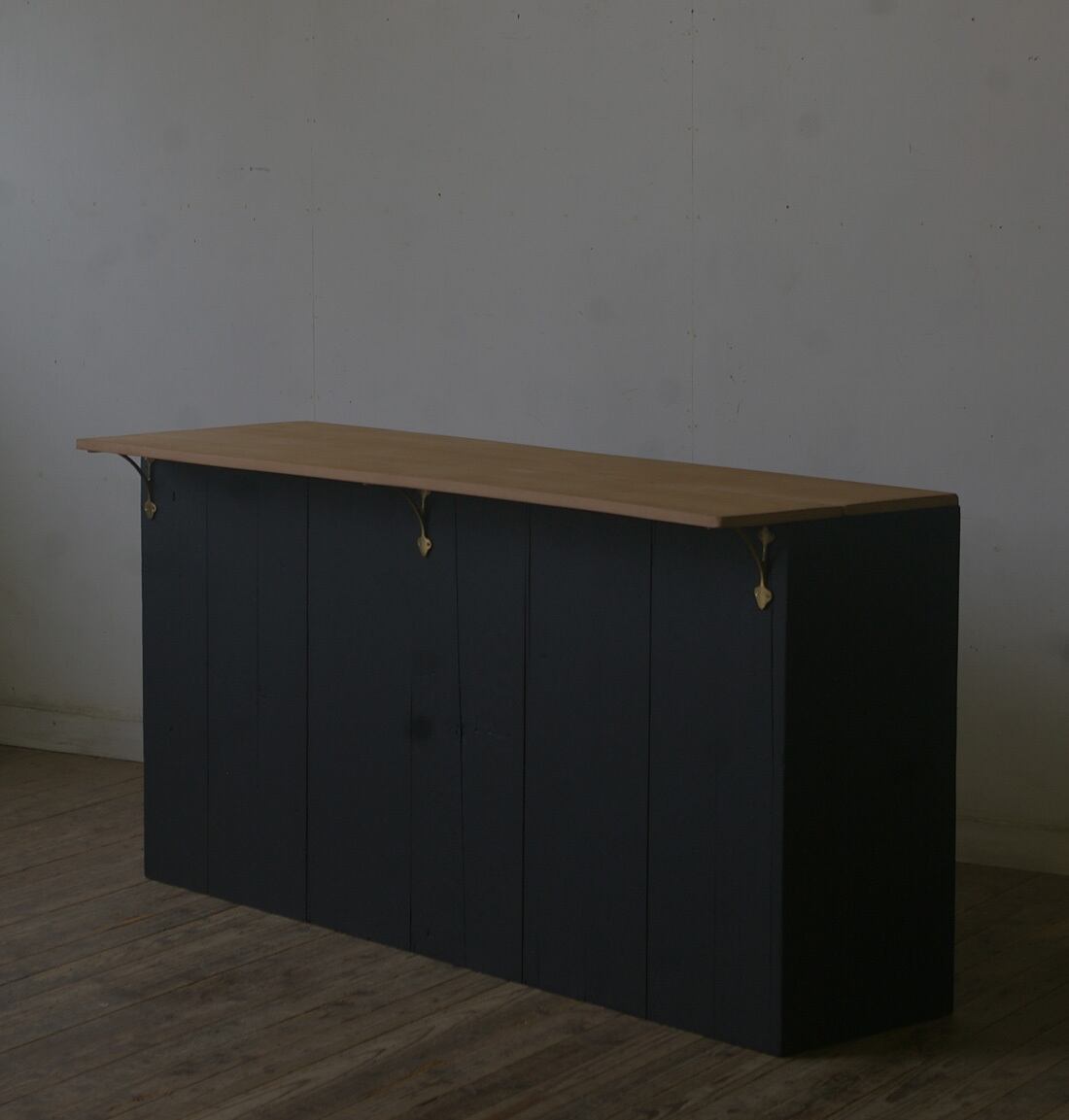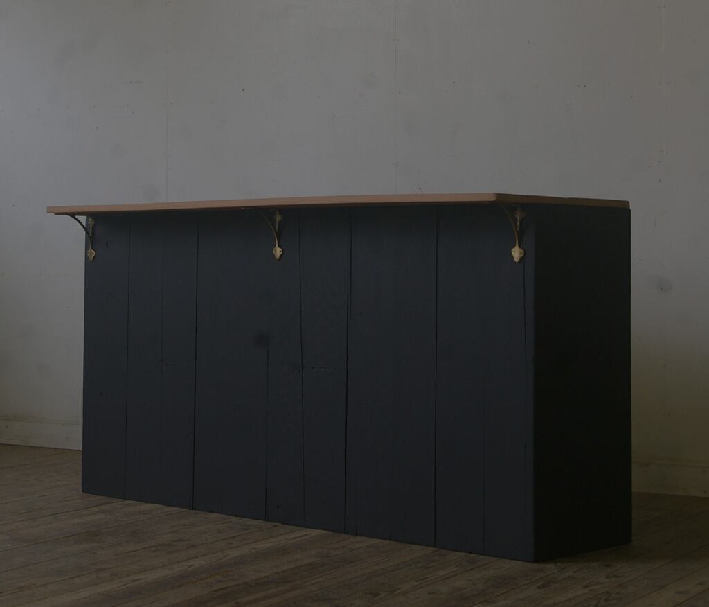 立派な造りで珍しく収納力もあり、とても存在感のあるアンティーク横長カウンターテーブルです。