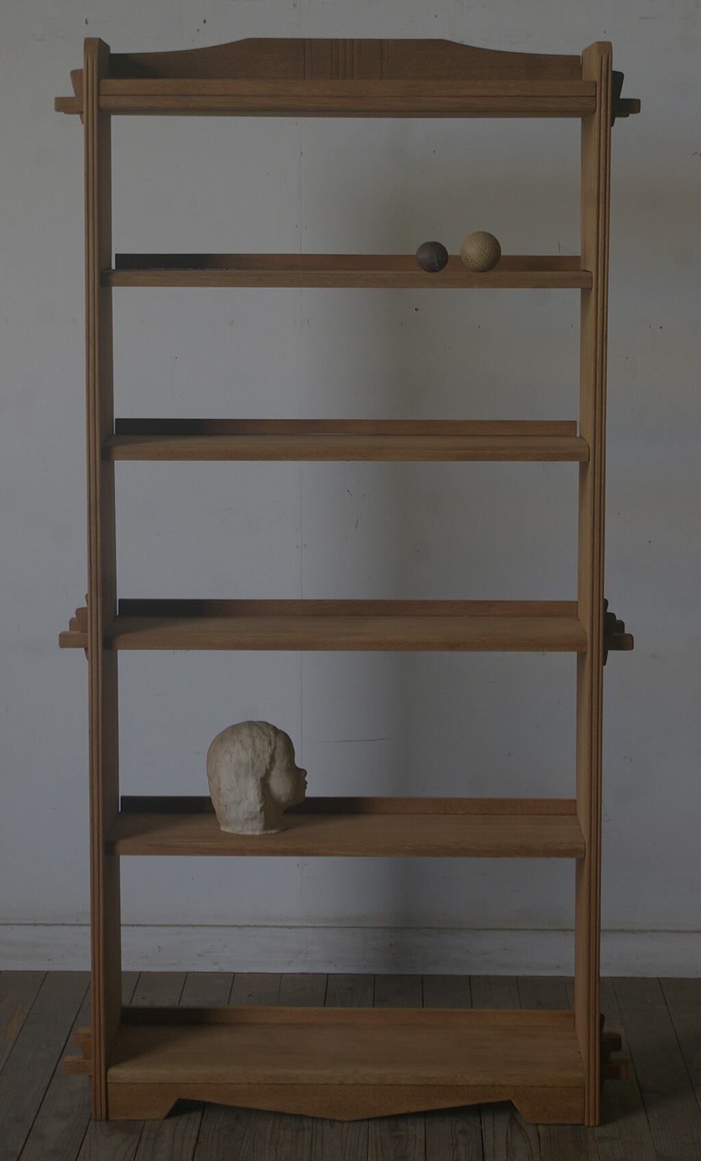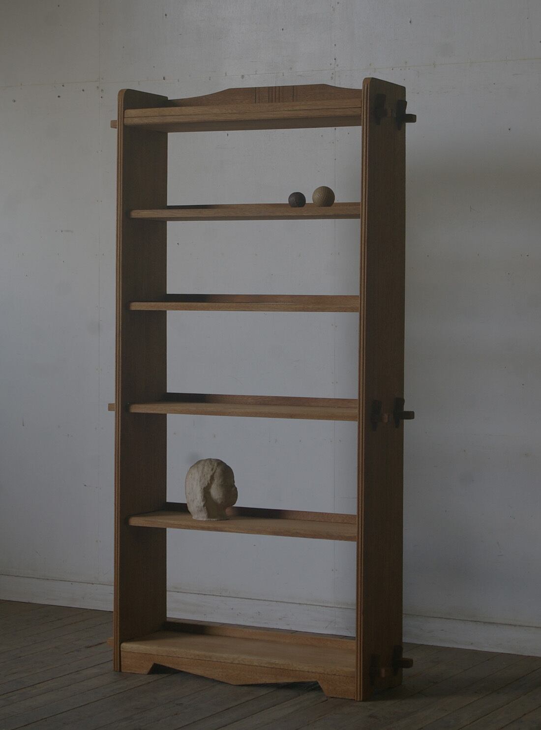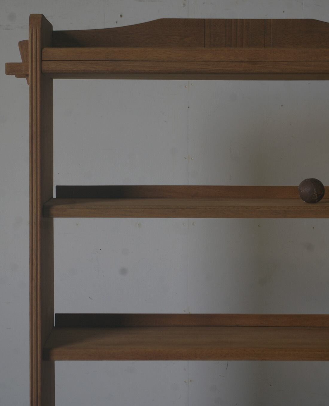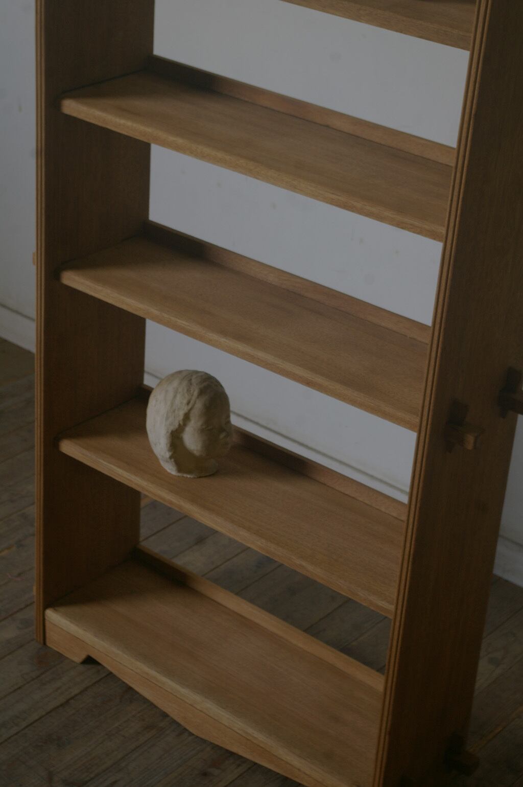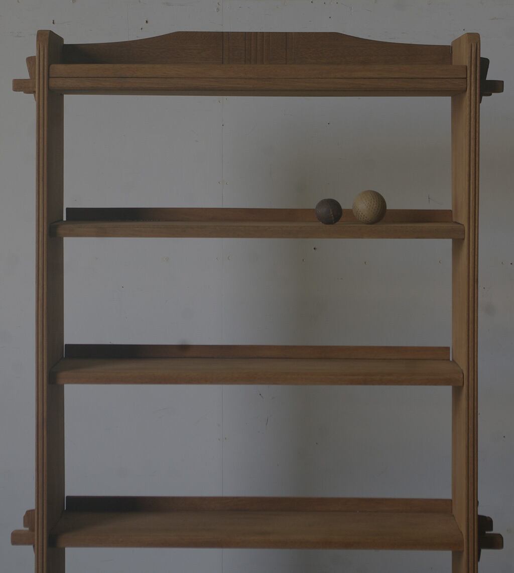 シンプルなデザインで古い無垢材の綺麗な木目がとても雰囲気の良いアンティーク大きな楔の本棚です。