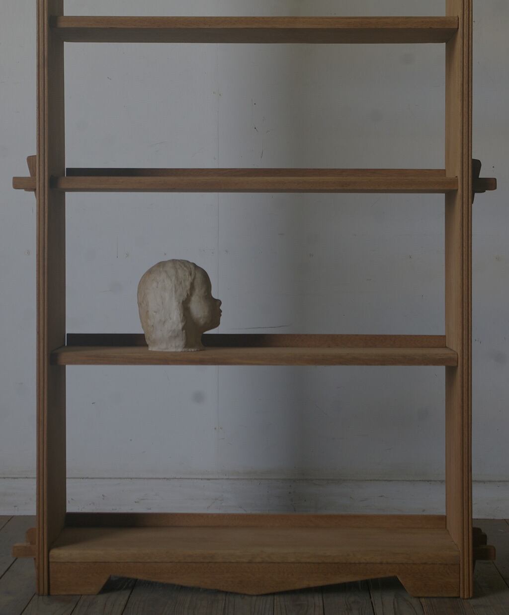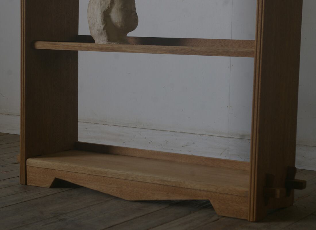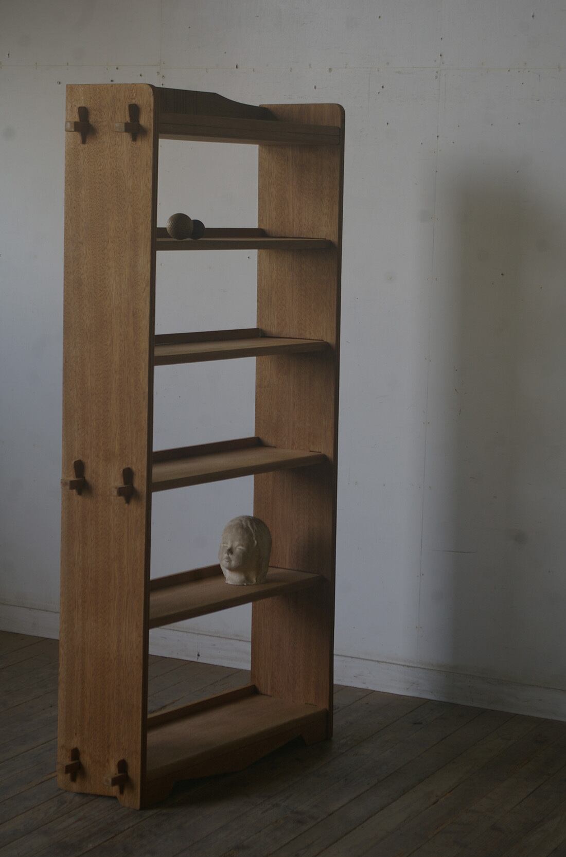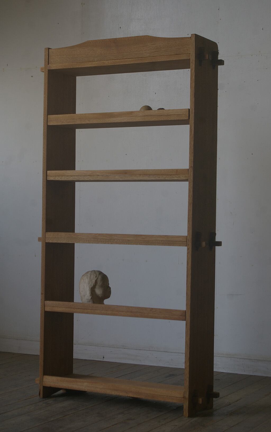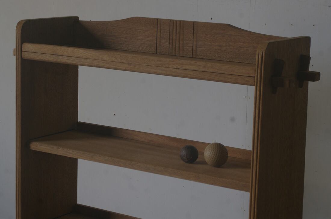 シンプルなデザインで古い無垢材の綺麗な木目がとても雰囲気の良いアンティーク大きな楔の本棚です。