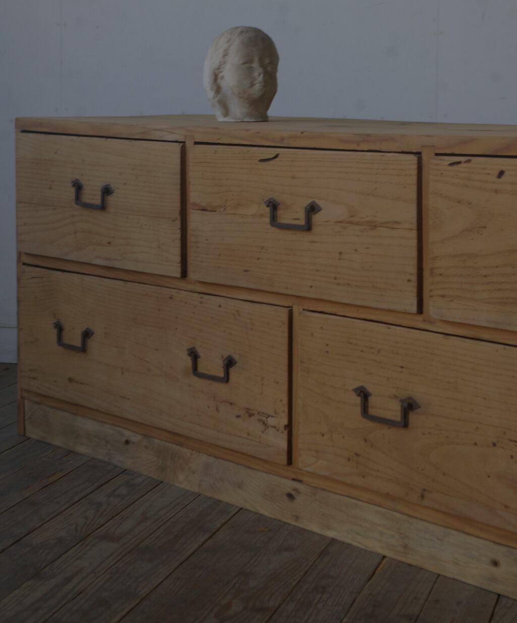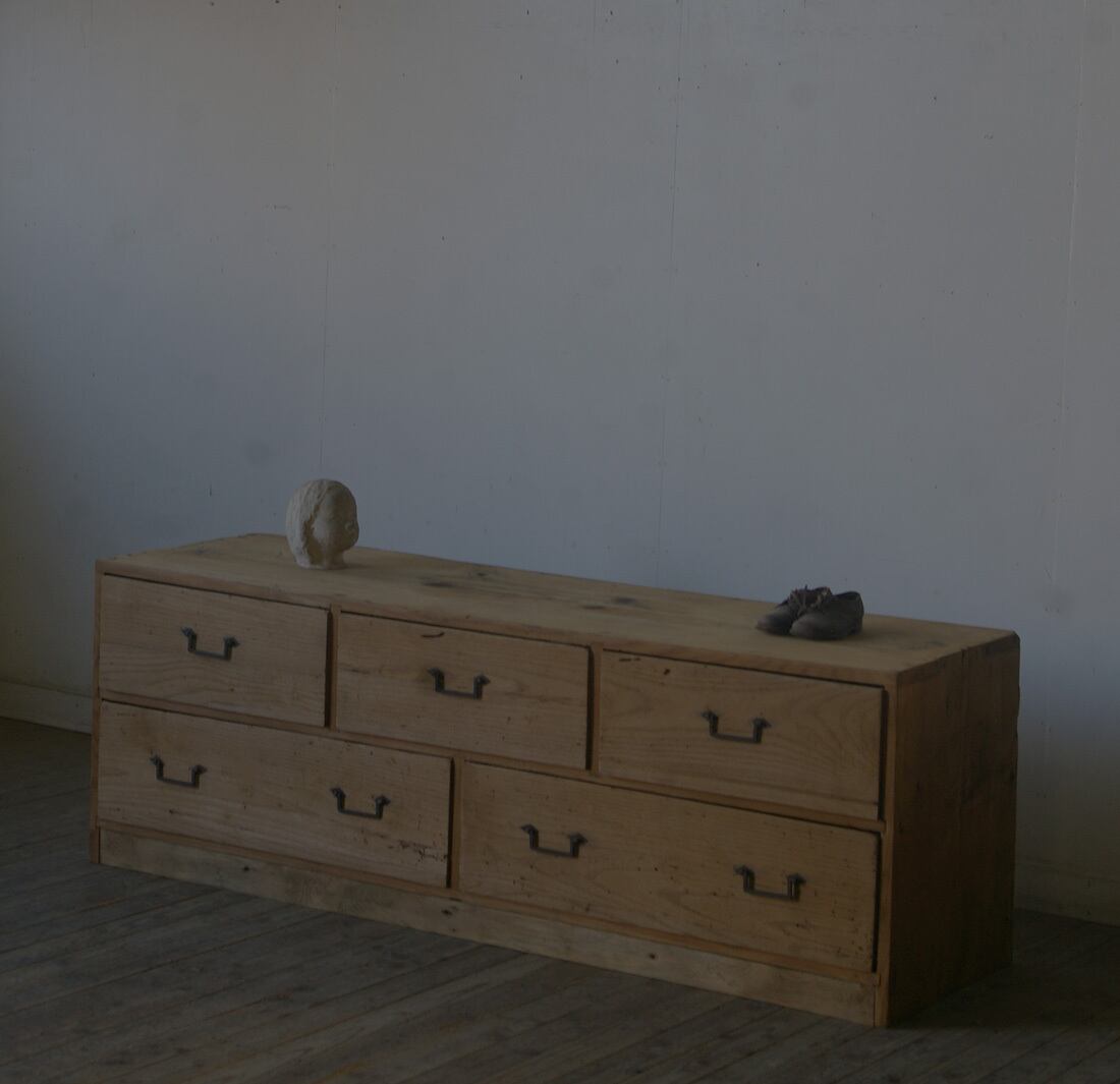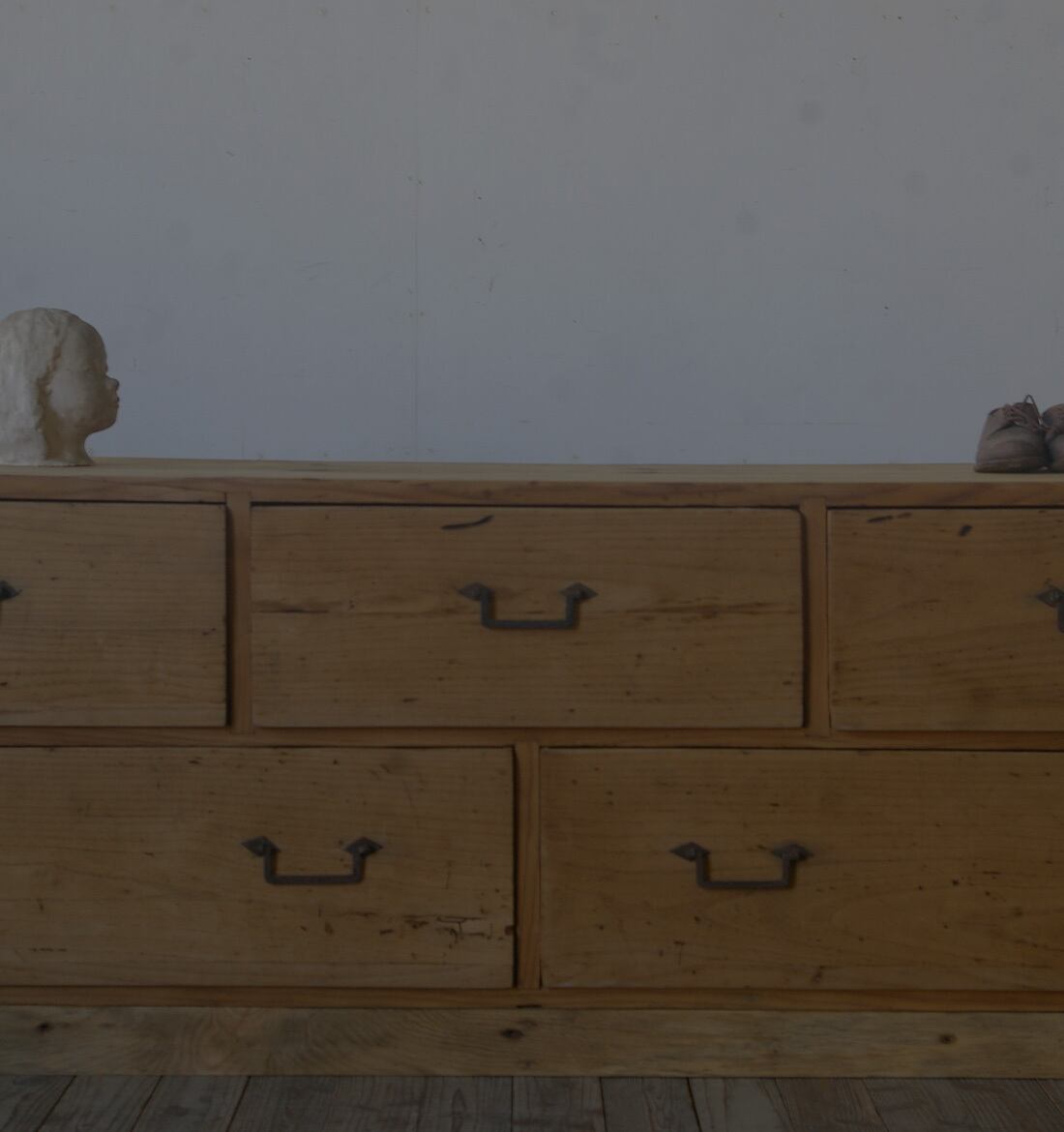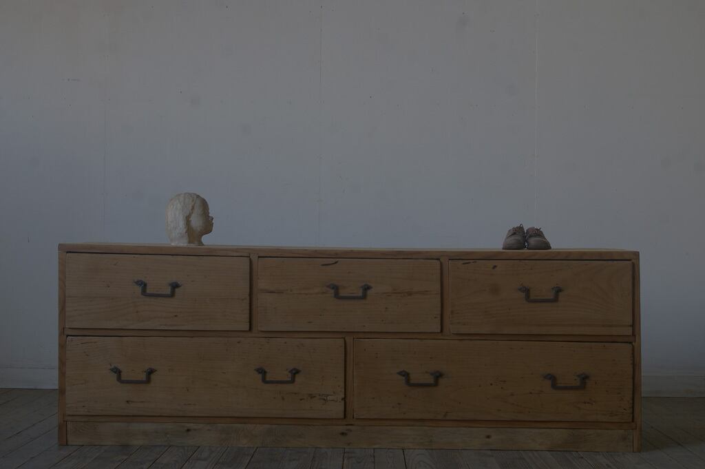 古手◆重厚◆引き出し5杯◆古い大きな横長ローチェスト YZ2087