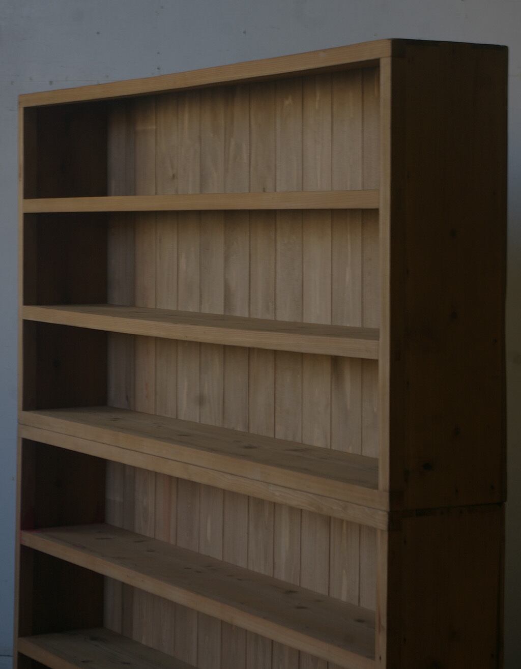 あるようで中々ないシンプルな良いデザインで珍しく、古い無垢材の綺麗な木目がとても雰囲気の良いアンティーク重ね大きな陳列棚です。