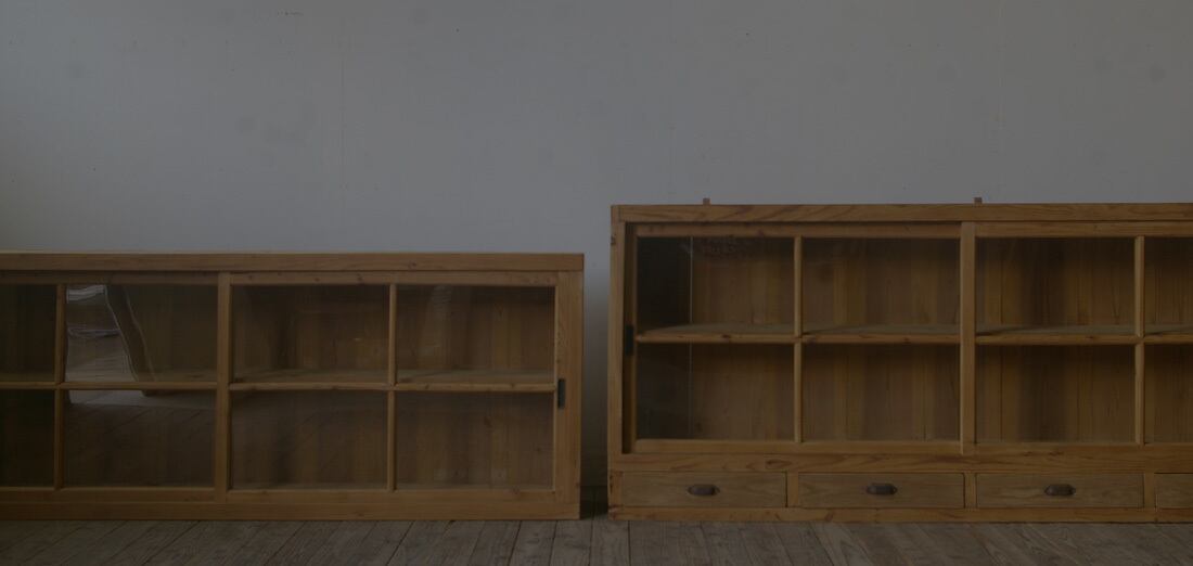 薄型のグッドデザインで存在感があり、店舗やギャラリーでの什器としてやご自宅でのコレクションケースや食器棚、ブックシェルフなどにオススメです!