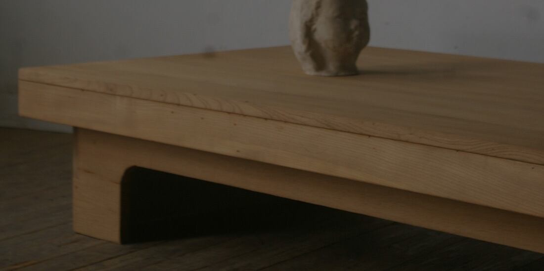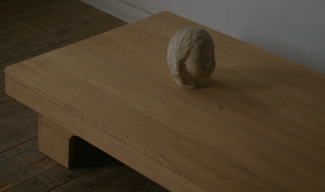 シンプルなデザインで造りも良く、存在感があり、古い無垢材の綺麗な木目がとても雰囲気の良いアンティーク大きな横長ローテーブルですので、店舗での什器としてやご自宅やギャラリーでのセンターテーブルや作品展示台、作業台などに。