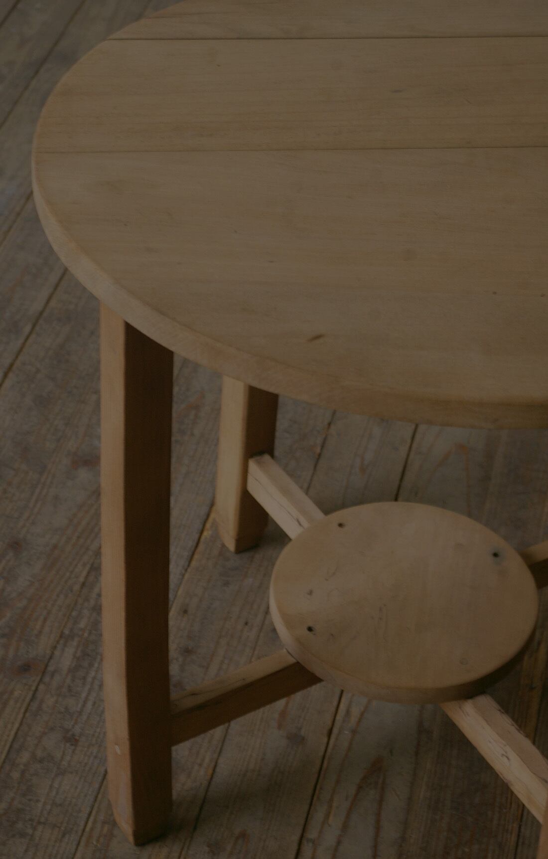 古い無垢材の綺麗な木目がとても雰囲気の良いアンティークサークルテーブルです。