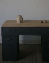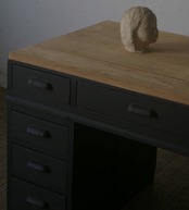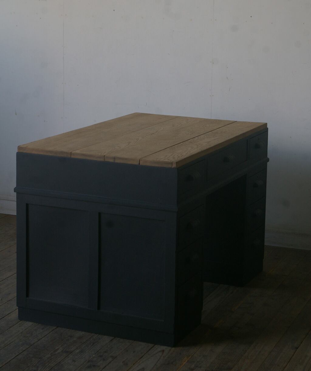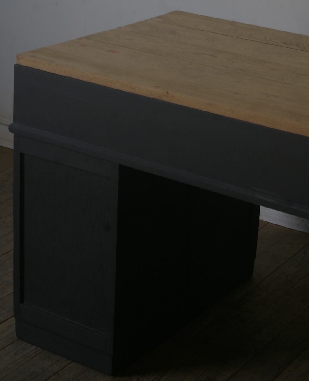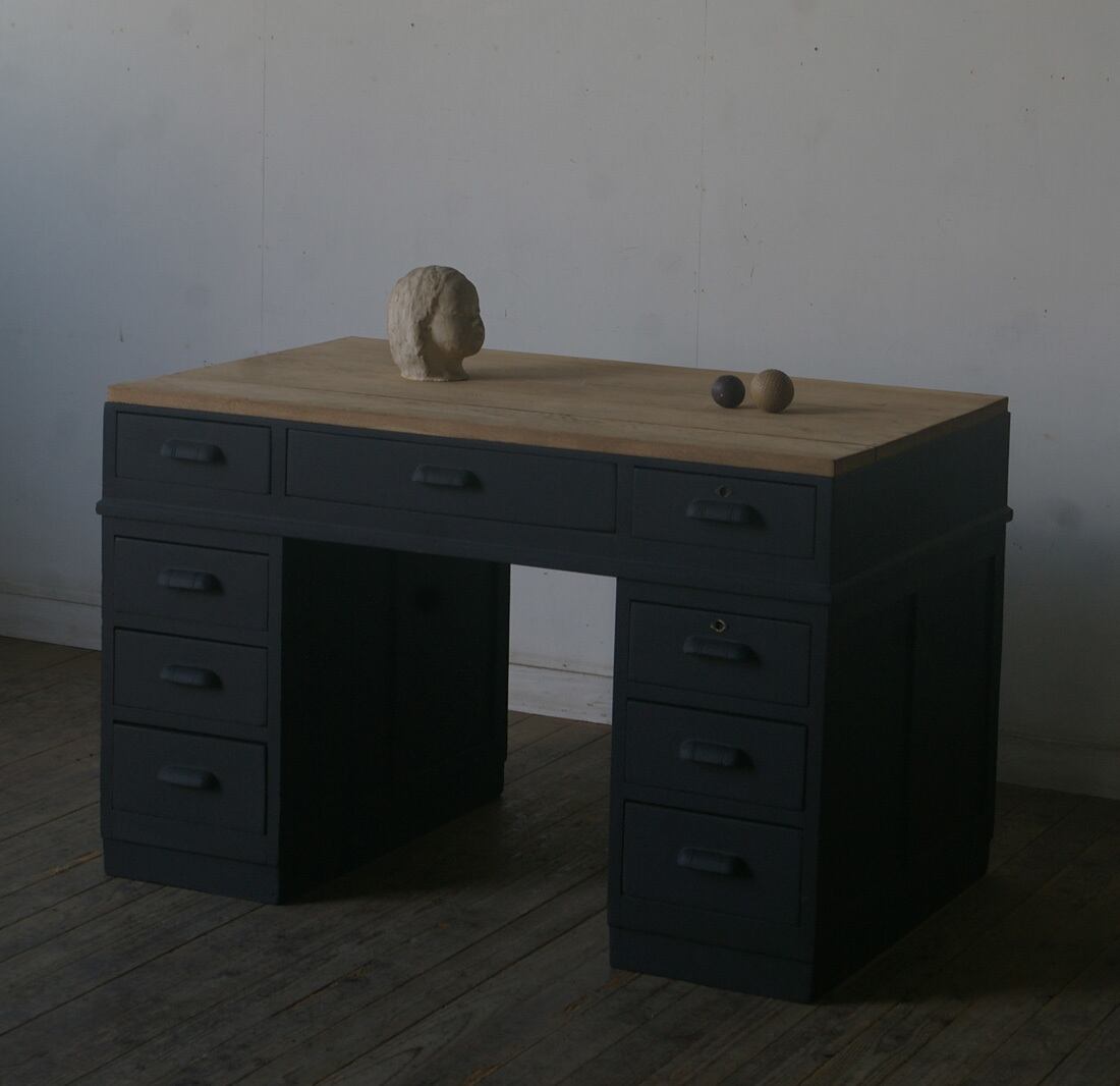 立派な造りで、デザイン、サイズ感も良く、とても存在感のあるアンティーク分解式両袖机です。