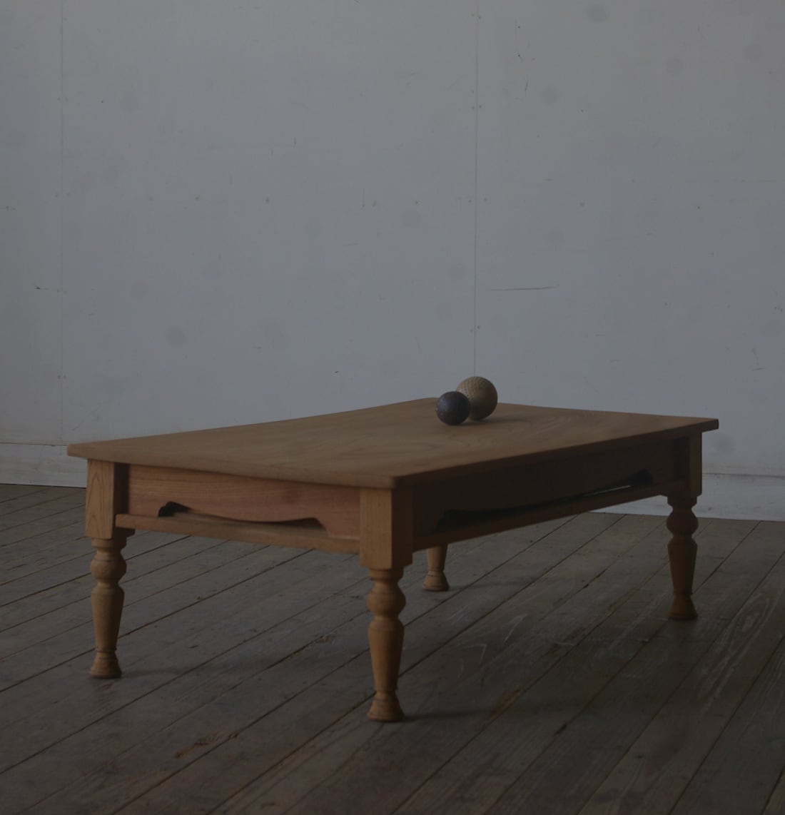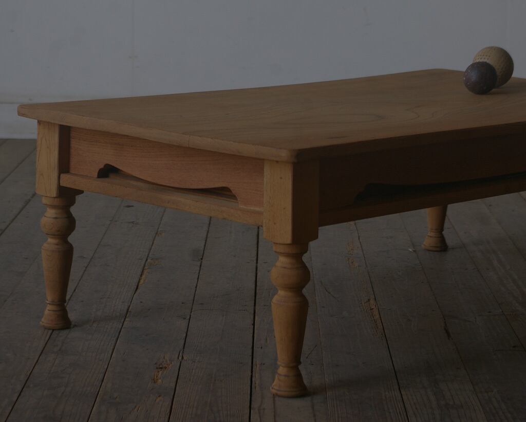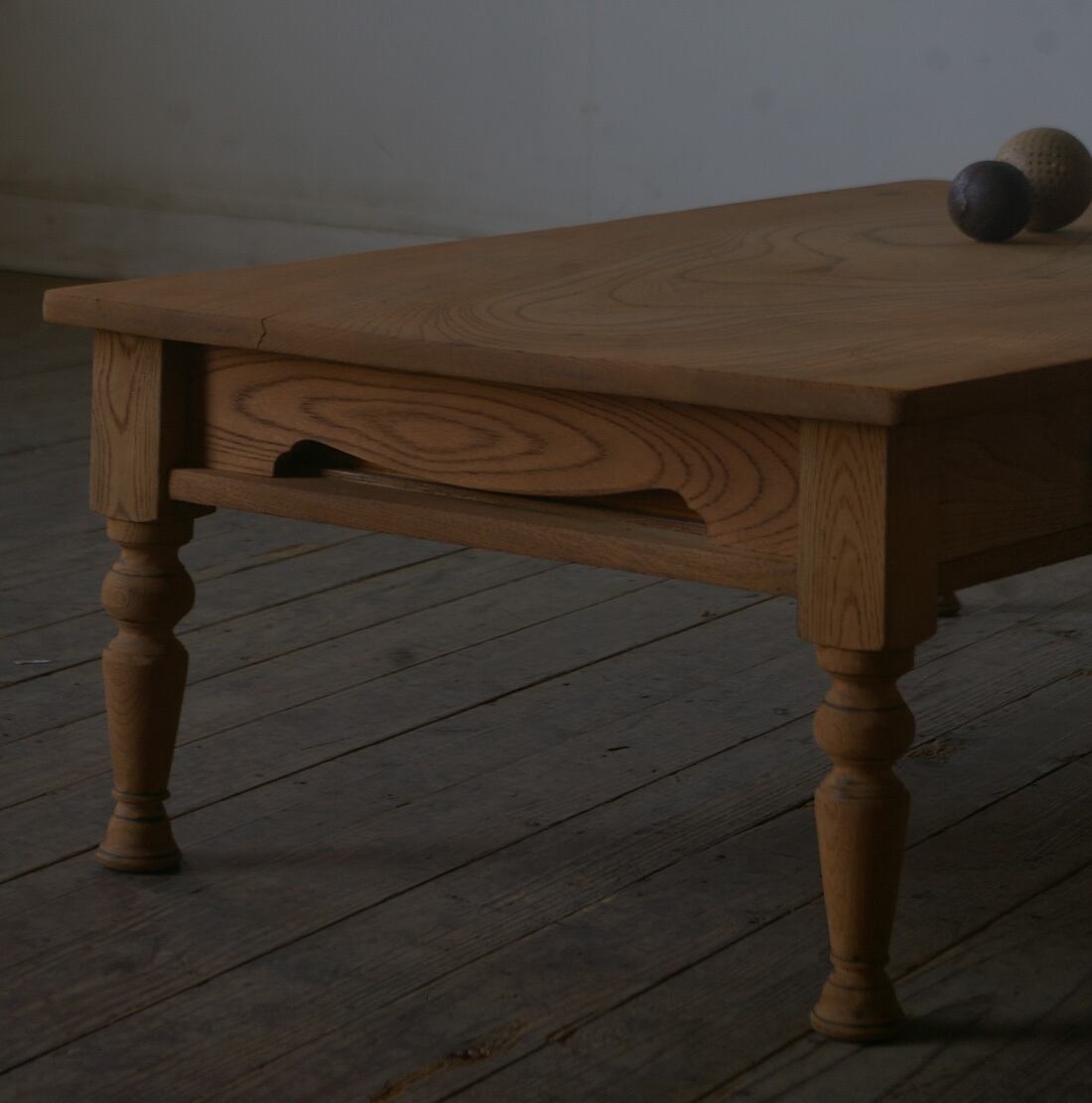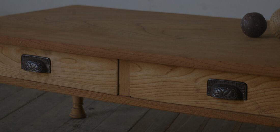 欅材◆造りの良いローテーブル◆引き出し2杯 YZ2138