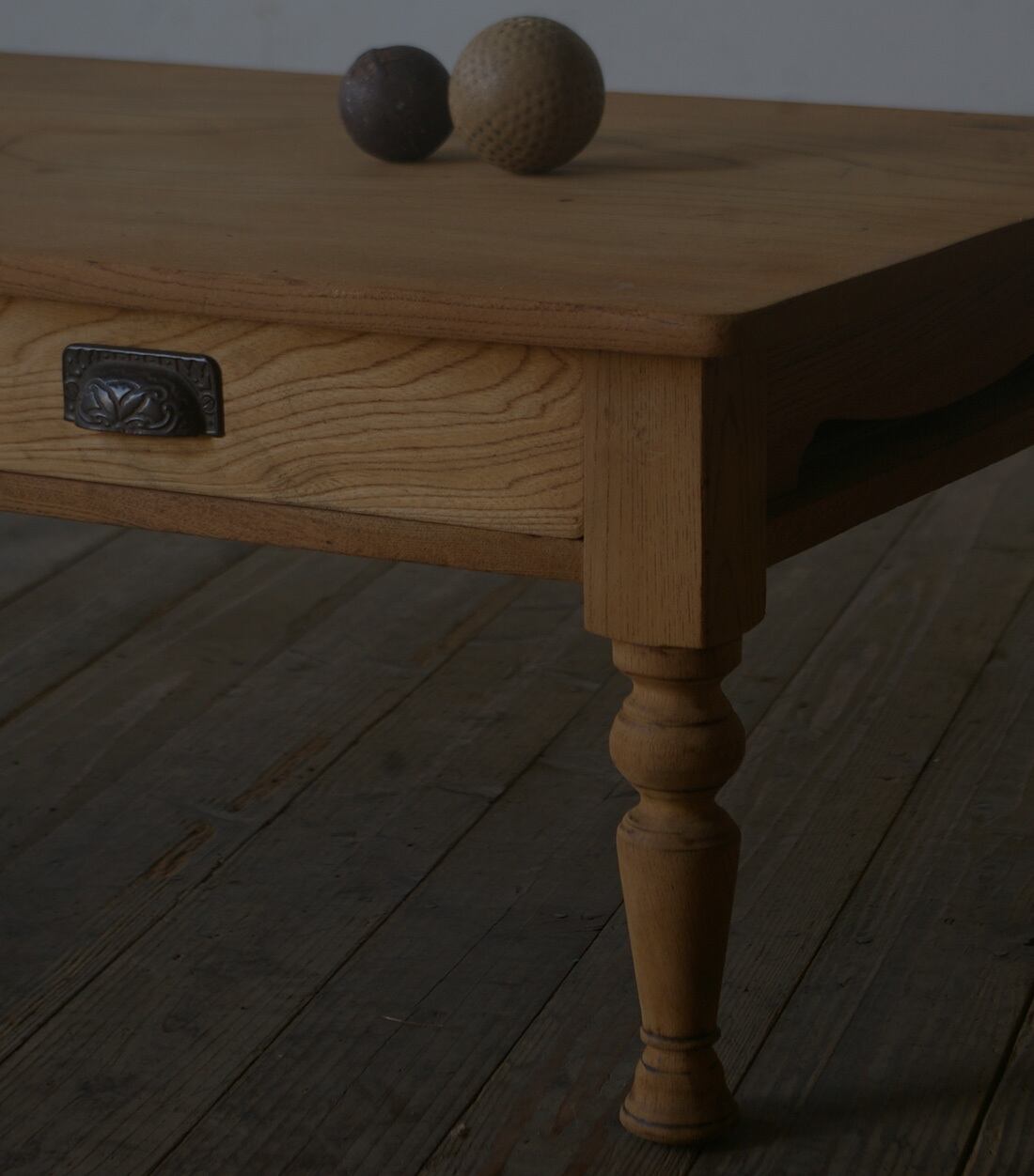立派な造りでデザイン、サイズ感も良く、細部の細かい飾り模様と古い欅材の綺麗な木目がとても雰囲気の良いアンティークローテーブルです。