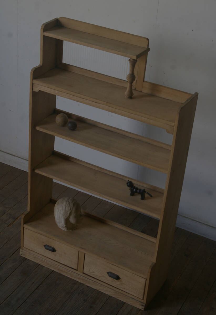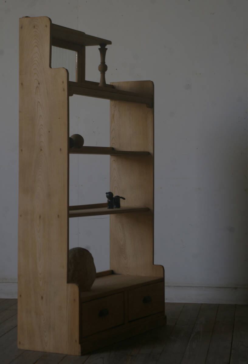 引き出し2杯◆楢材◆造りの良い陳列棚◆本棚 YZ2148