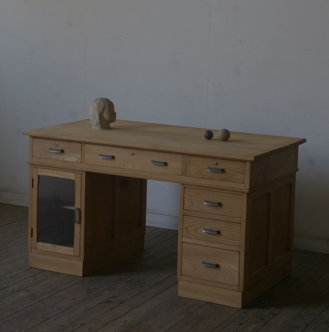 分解式◆楢材◆古い大きな両袖机◆引き出し6杯 YZ2165