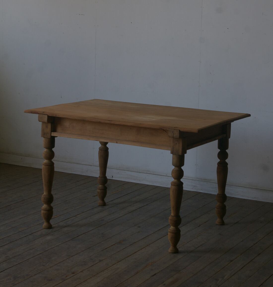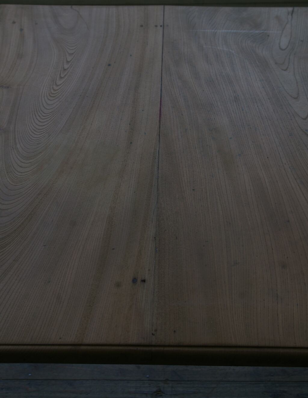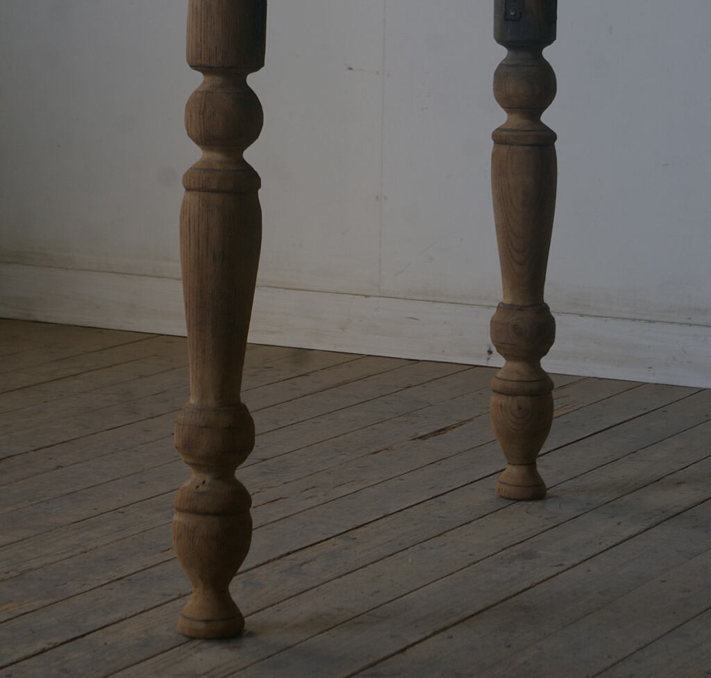 立派な造りでデザイン、サイズ感も良く、大きな天板と長い脚、古い欅材の綺麗な木目がとても雰囲気の良いアンティークテーブルです。