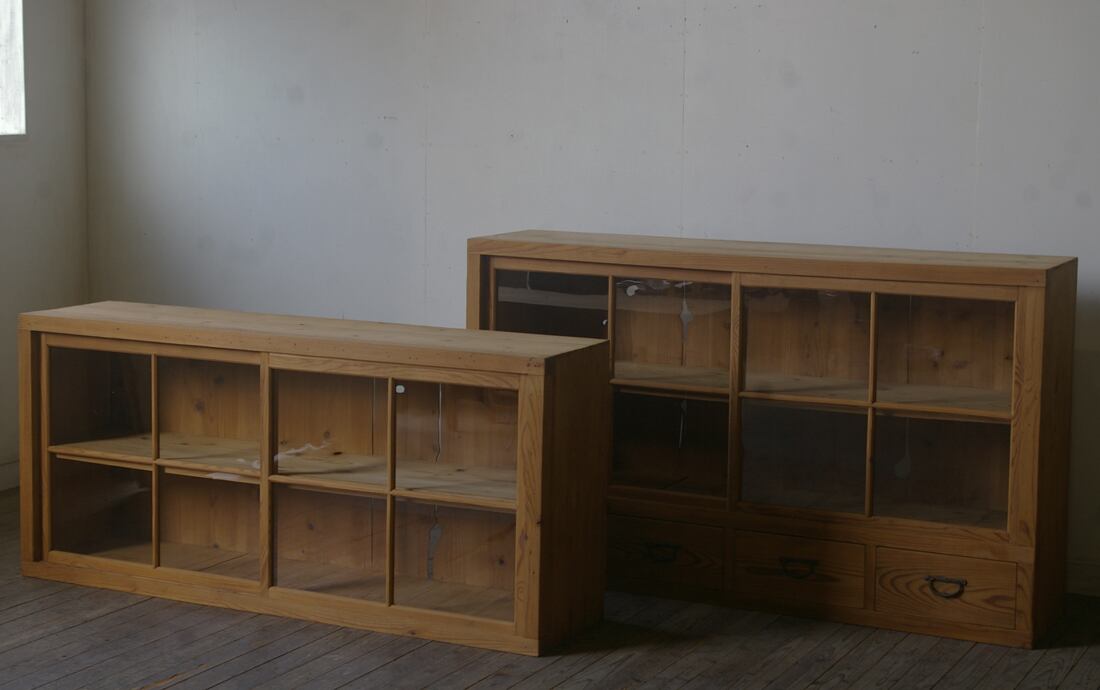 店舗やギャラリーでの什器としてやご自宅でのコレクション展示ケースや食器棚、本棚などに。