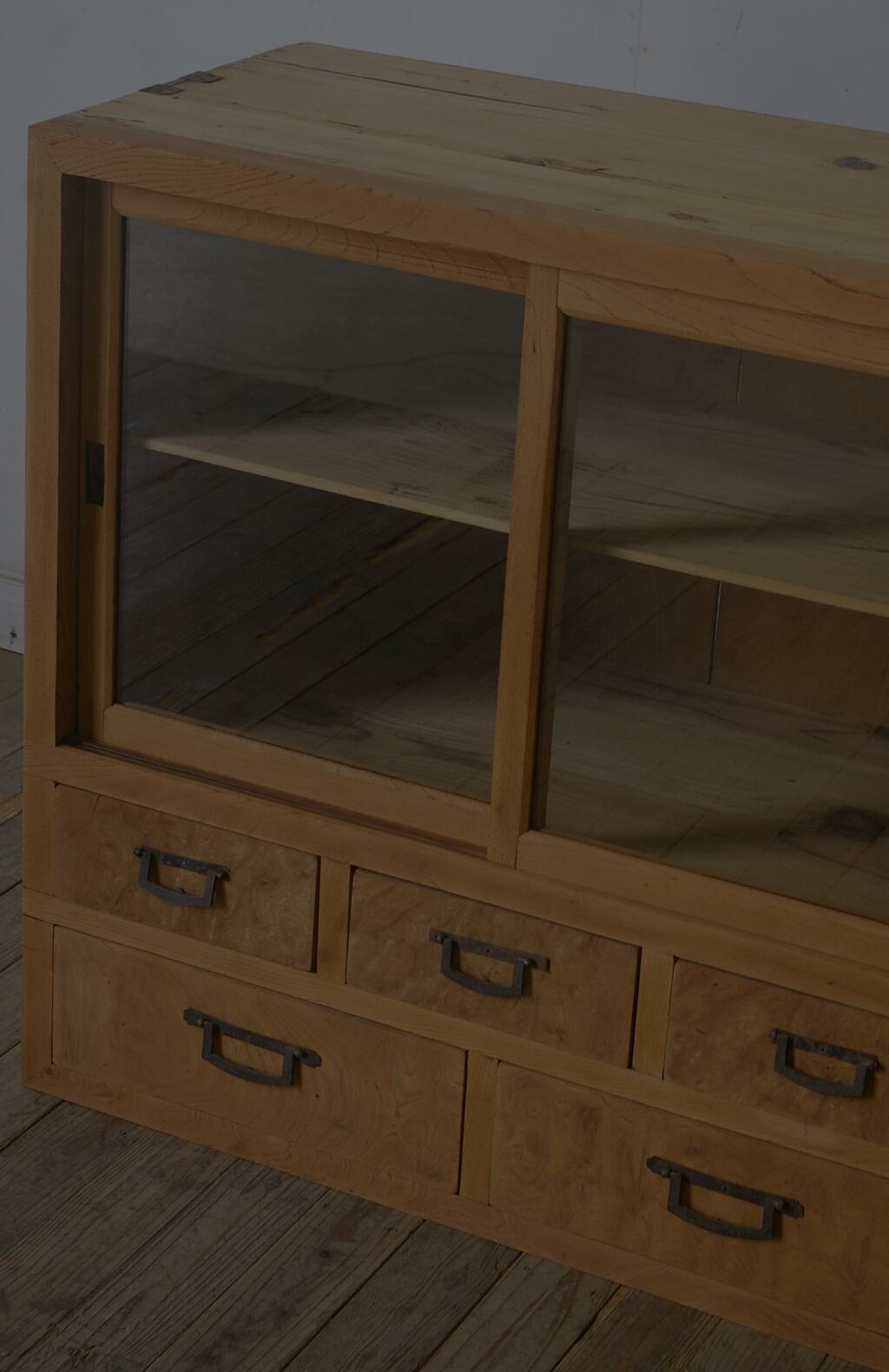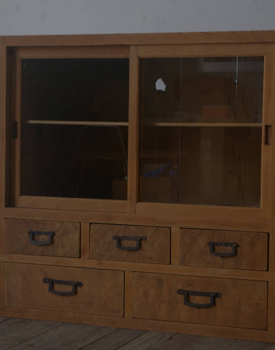 引き出し5杯◆造りの良いガラス戸棚◆道具箪笥 YZ2168