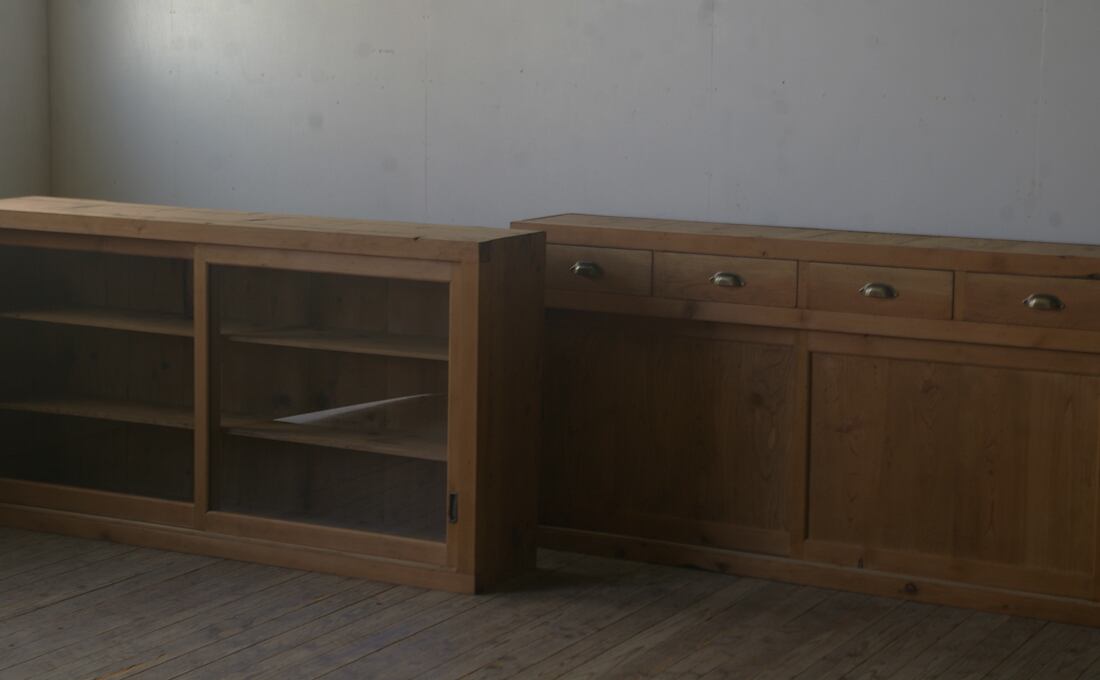 店舗やギャラリーでの什器としてやご自宅でのコレクションケースや食器棚、ブックシェルフなどに。