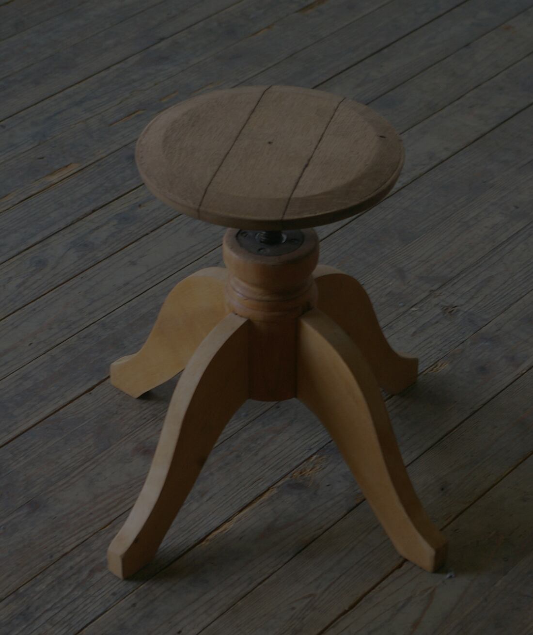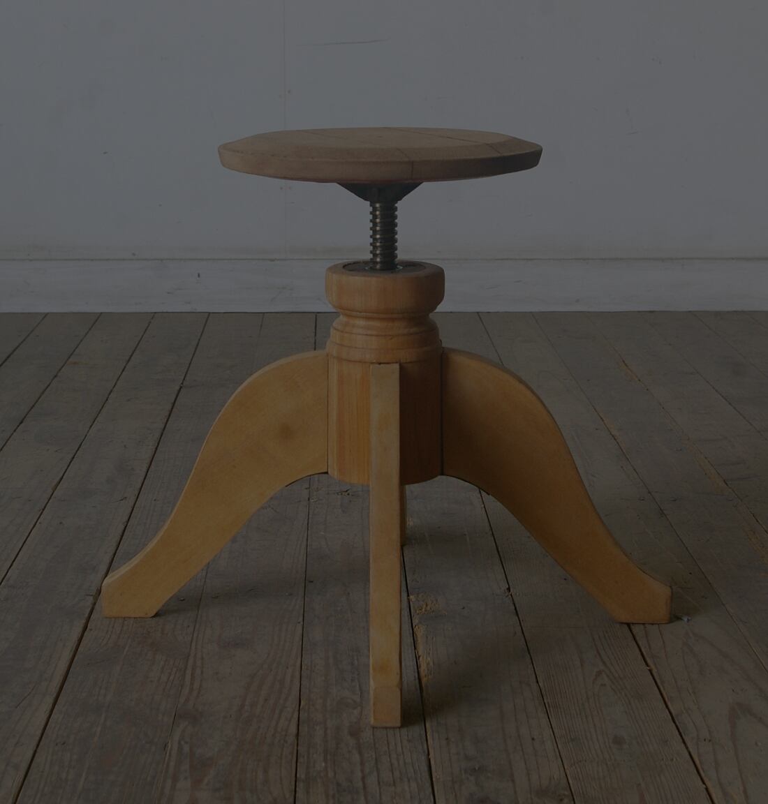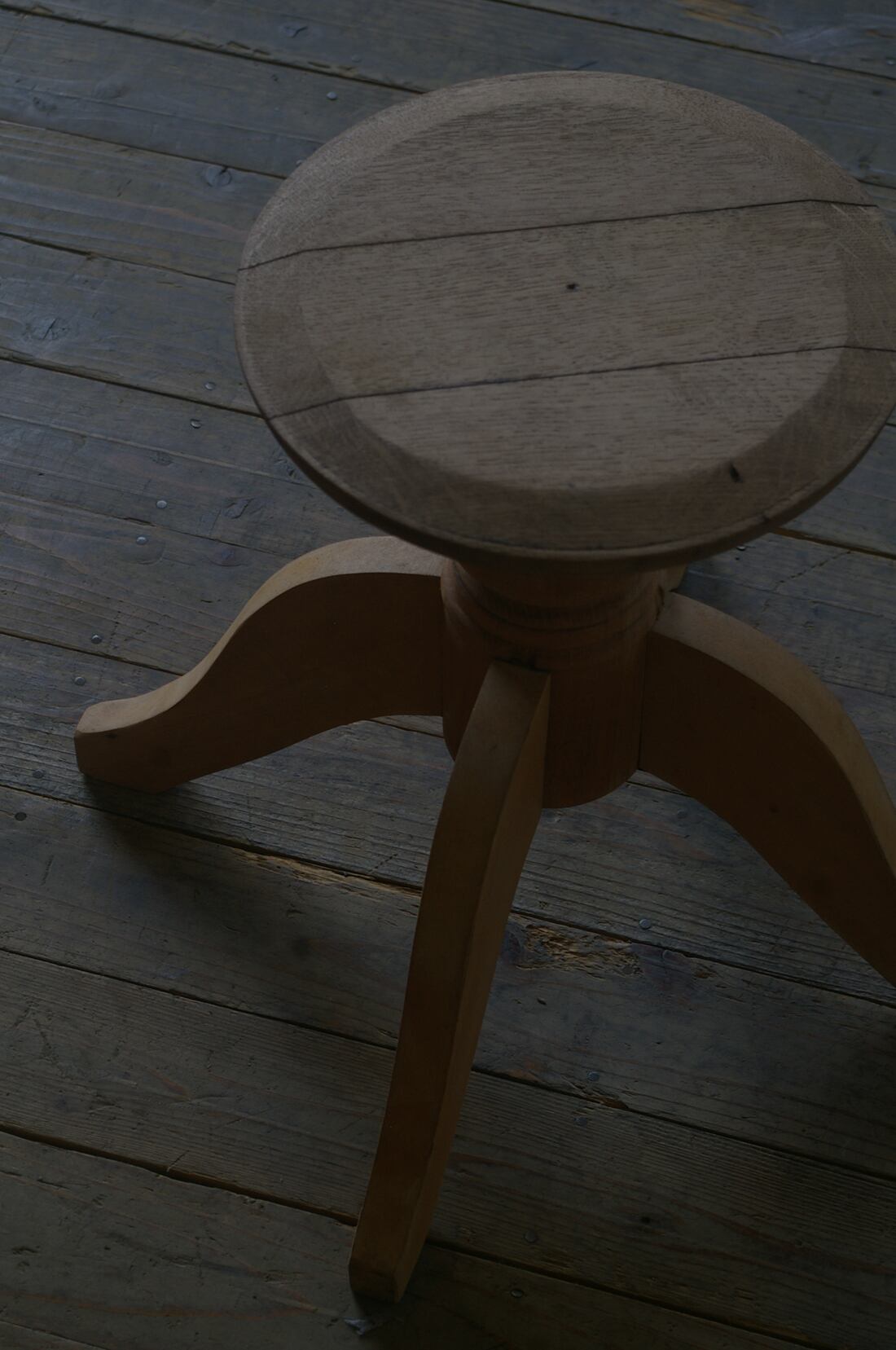 立派な造りでデザインも良く、古い無垢材の綺麗な木目がとても雰囲気の良いアンティーク回転丸スツールです。