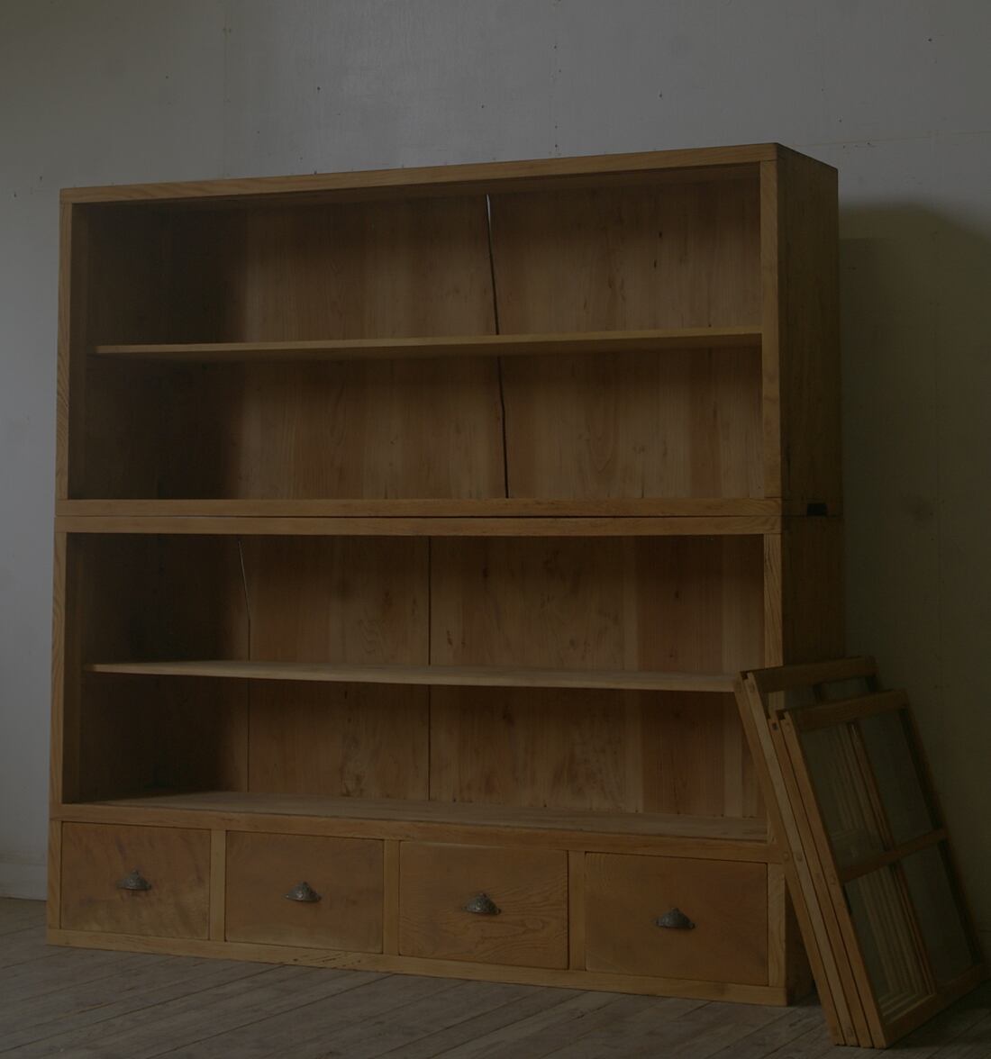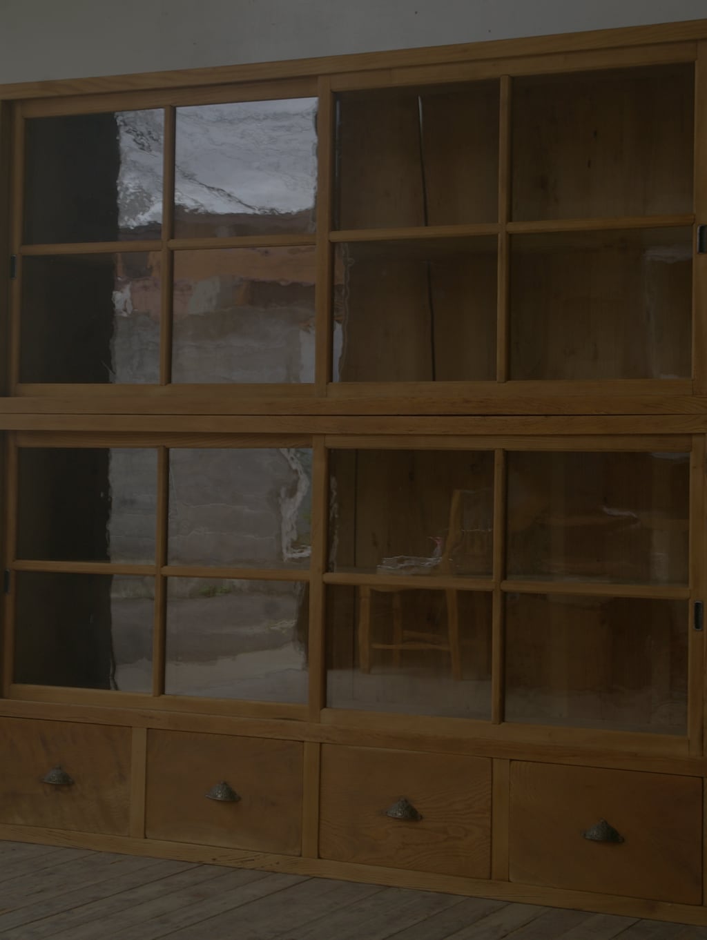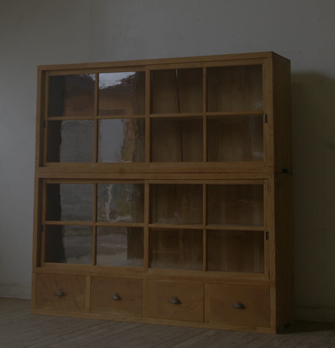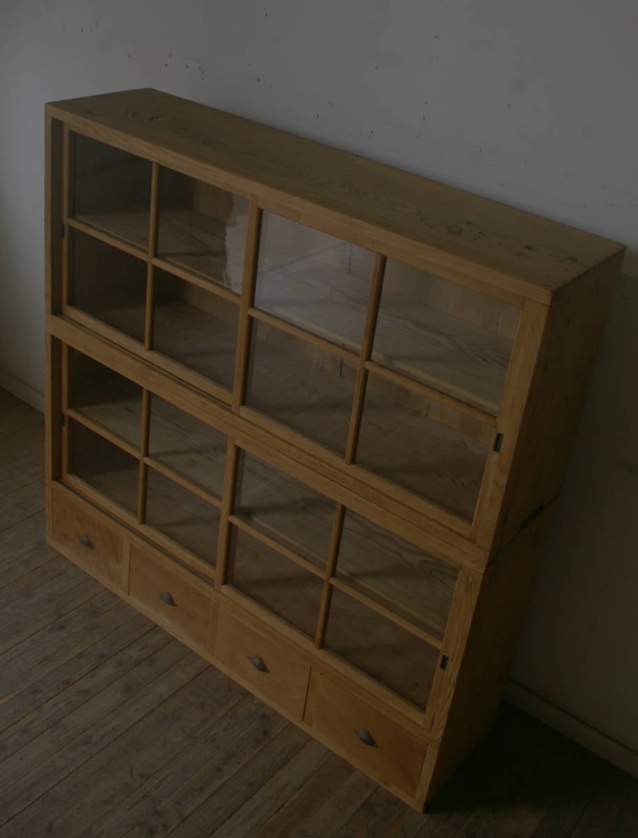古い重ね大きな十字ガラス戸棚 引き出し4杯 YZ2196