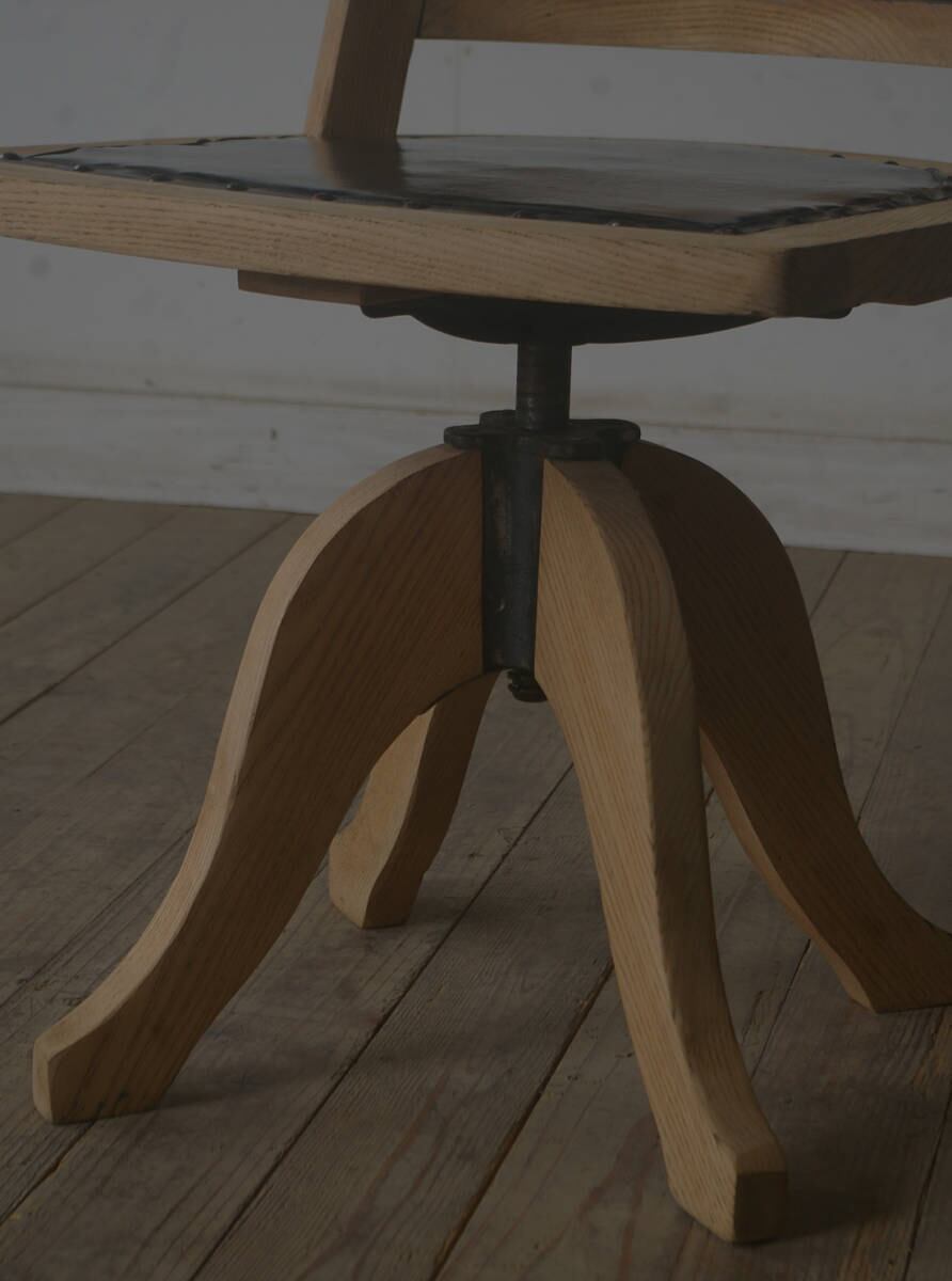 立派な造りでデザインも良く、古い楢材の綺麗な木目がとても雰囲気の良いアンティーク回転チェアですので、店舗やカフェ、ギャラリーでの什器としてやご自宅での椅子としては勿論、オブジェなどに。