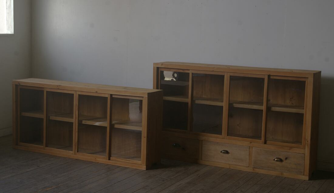 店舗やギャラリーでの什器としてやご自宅でのコレクションケースや食器棚、本棚などに。