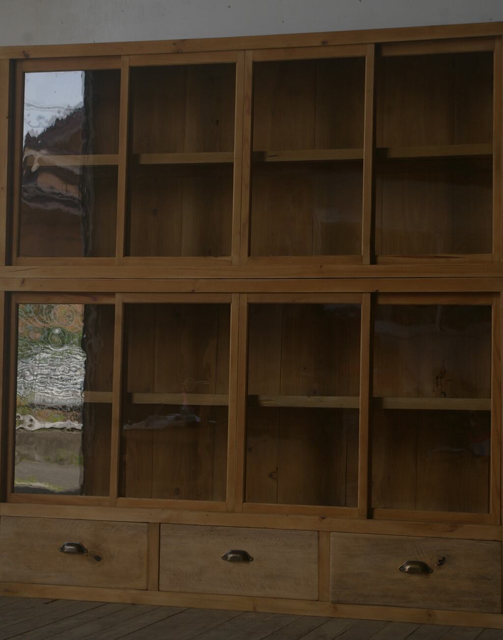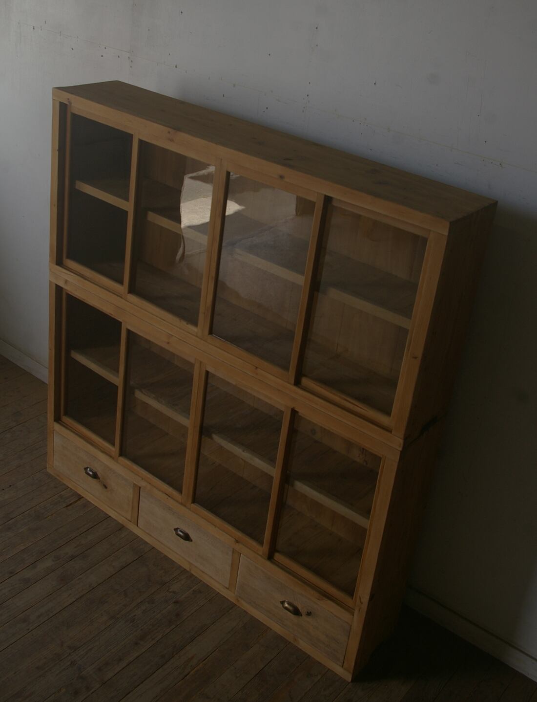 引き出し3杯◆古い重ね8枚ガラス戸棚 YZ2199