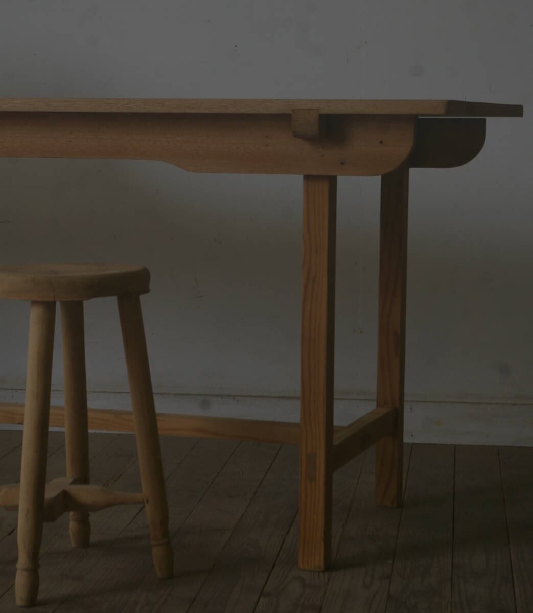シンプルなデザインでサイズ感も良く、古い無垢材の綺麗な木目がとても雰囲気の良いアンティークテーブルです。