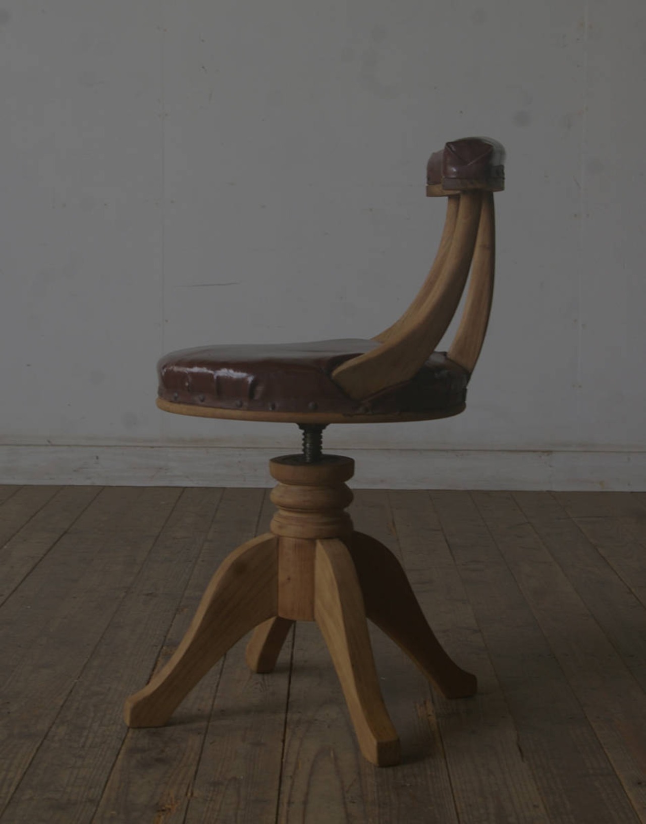 立派な造りでデザインも良く、とても存在感のあるアンティーク回転チェアです。